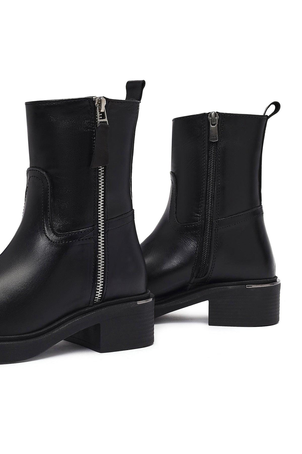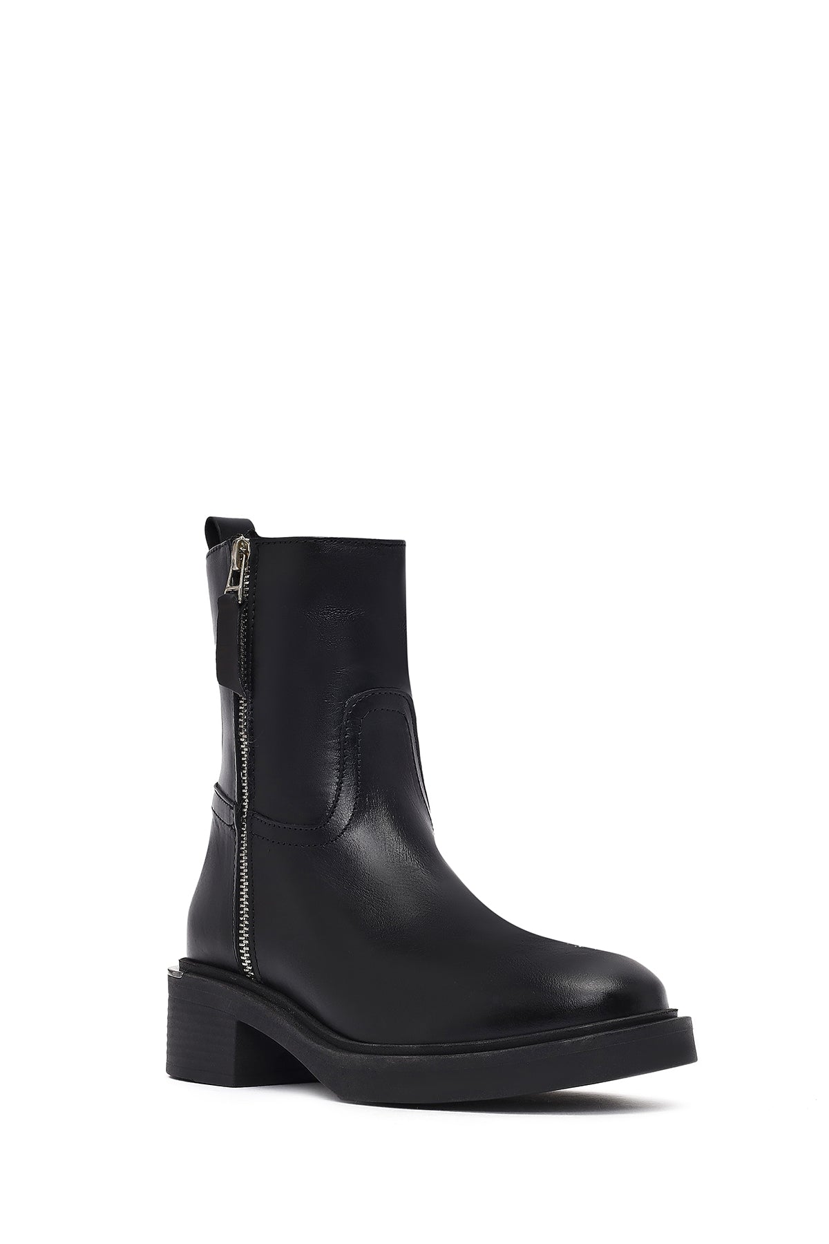 The modern boot model of the winter collection stands out with its black screwed leather upper surface and zippered design. The use of leather lining allows the foot to breathe, while the 2.5 cm high sole is ideal for daily use. Its design, which can be easily put on and taken off thanks to the side zipper and its minimal lines, is suitable for daily use. Especially in autumn and winter months, it provides perfect harmony with both casual and elegant clothing combinations. Usage areas: Ideal for office environment, daily activities, and city tours. Product code: 25WFD185518