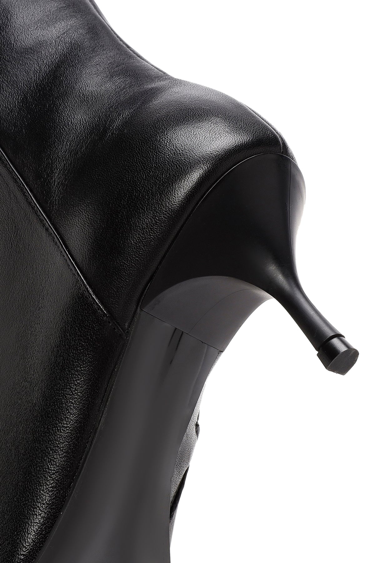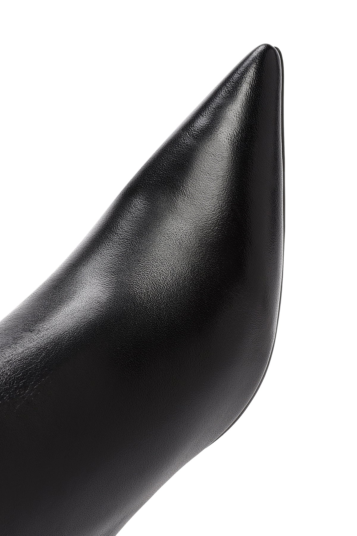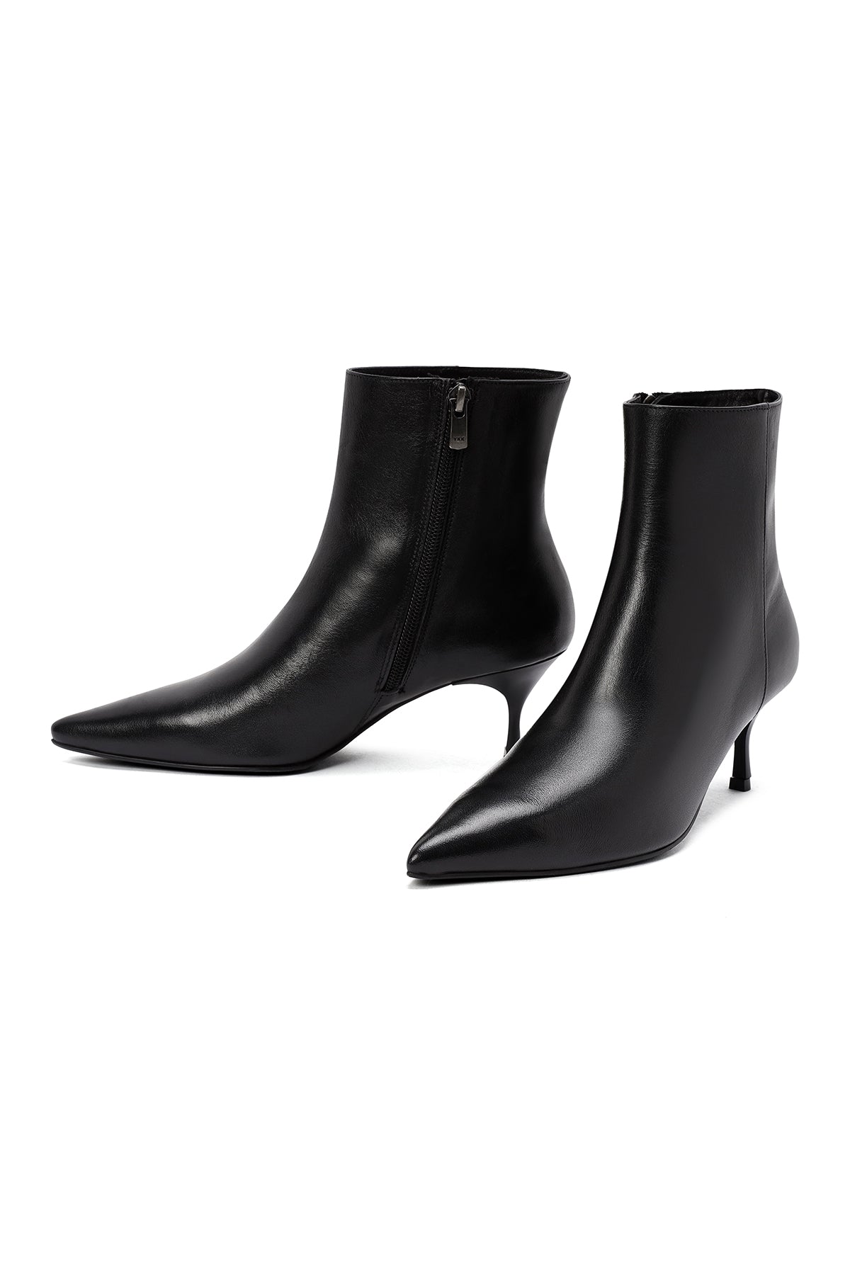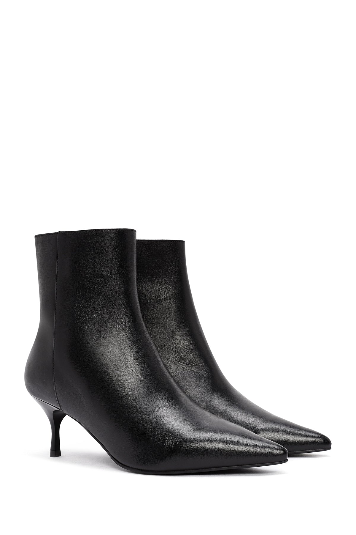 From Derimod's winter collection, the black boot model designed using screwed leather offers a stylish look with its 6 cm high slim heel. The model, which provides easy wear with its side zipper design, promises quality use with its leather inner lining. The boot, which attracts attention with its pointed toe shape and minimalist design, offers a wide range of use from office outfits to invitation dresses, from daily styles to elegant night combinations. It can be preferred in autumn and winter seasons. Product code: 25WFD131318