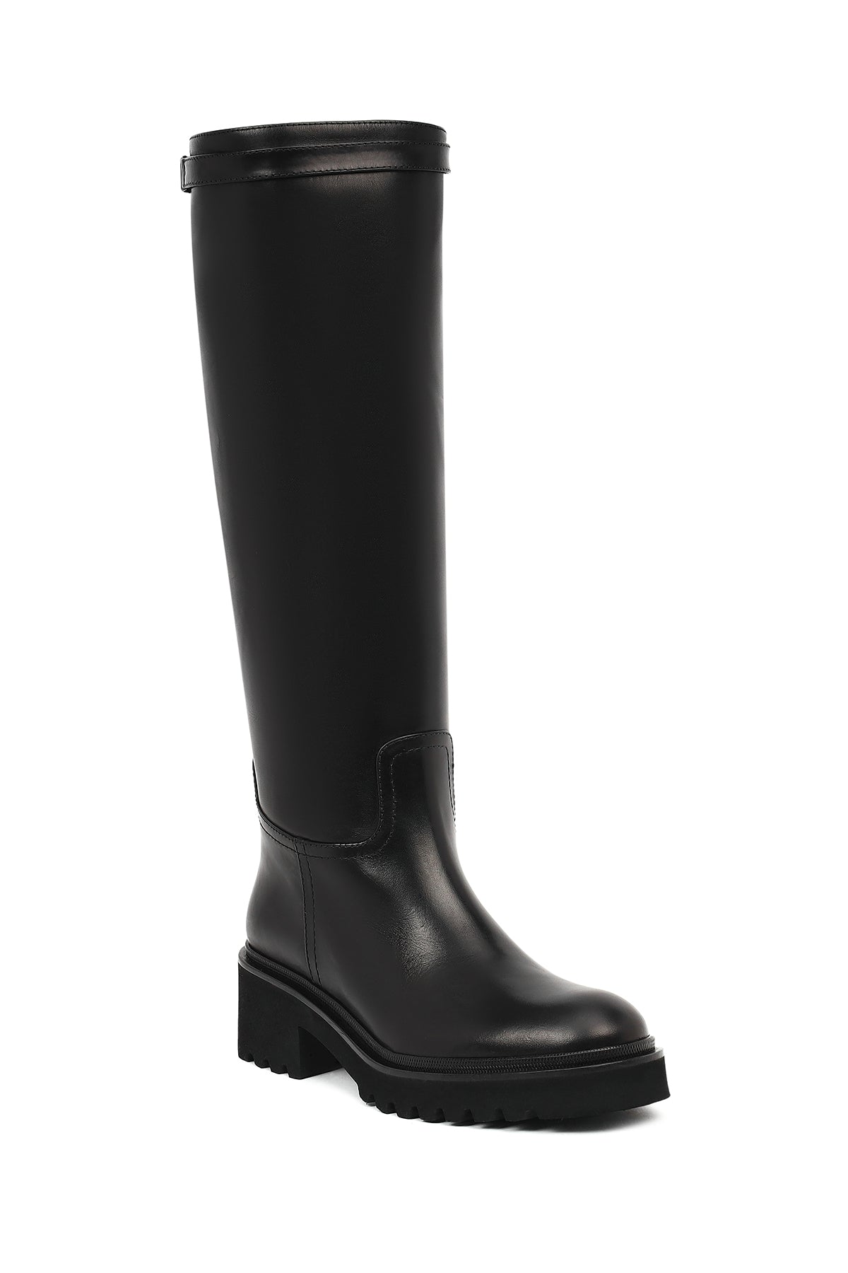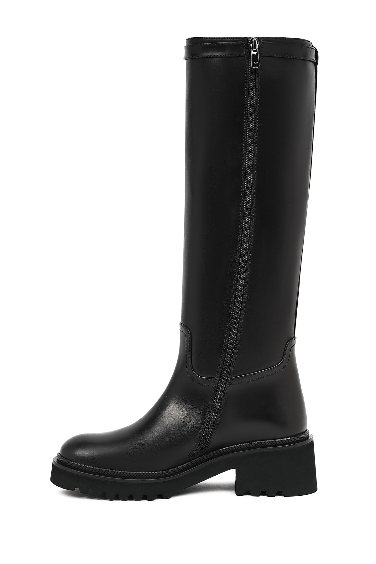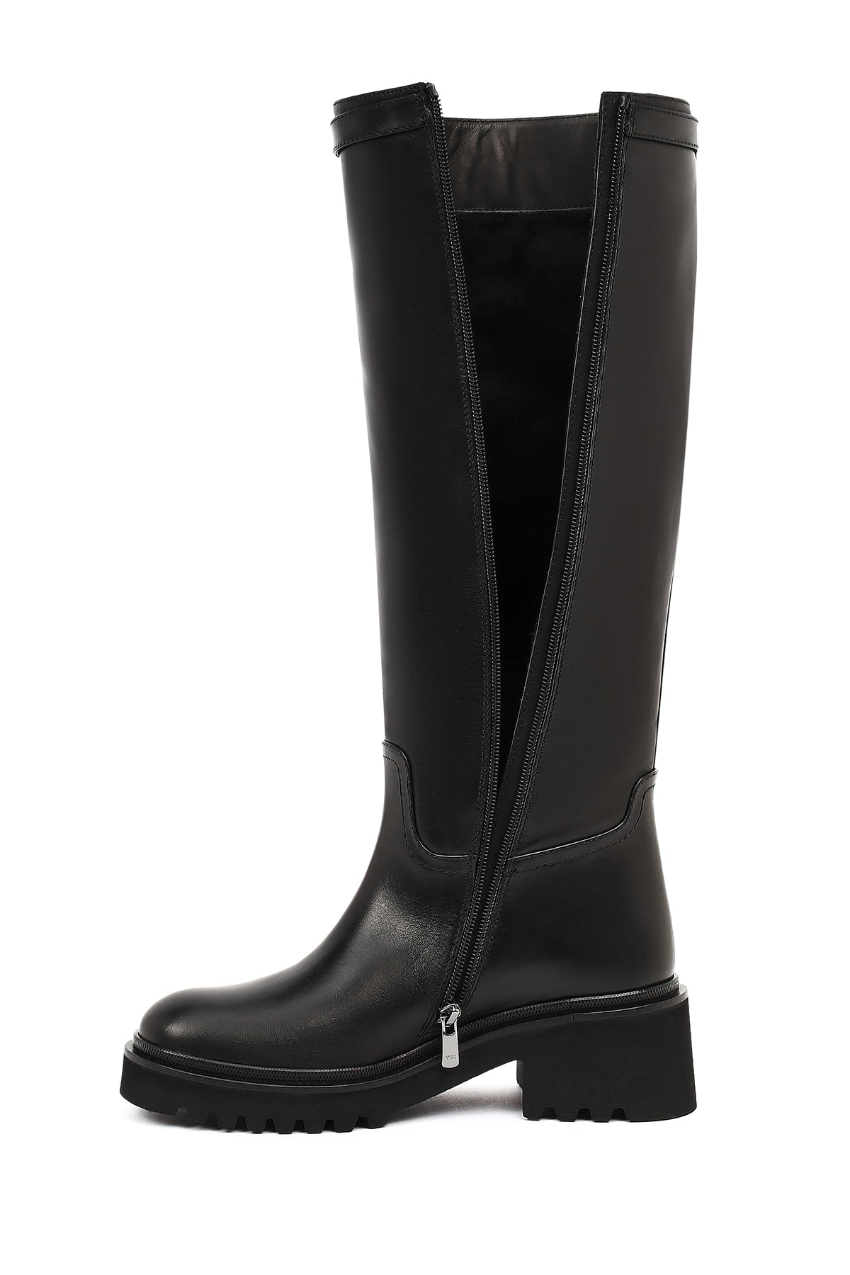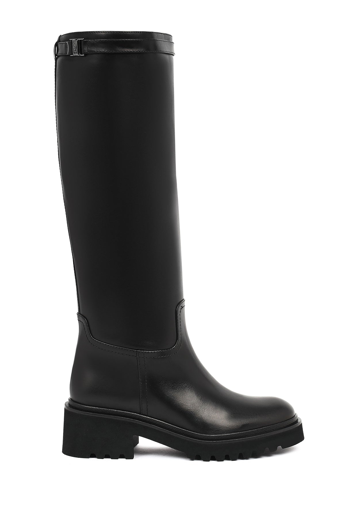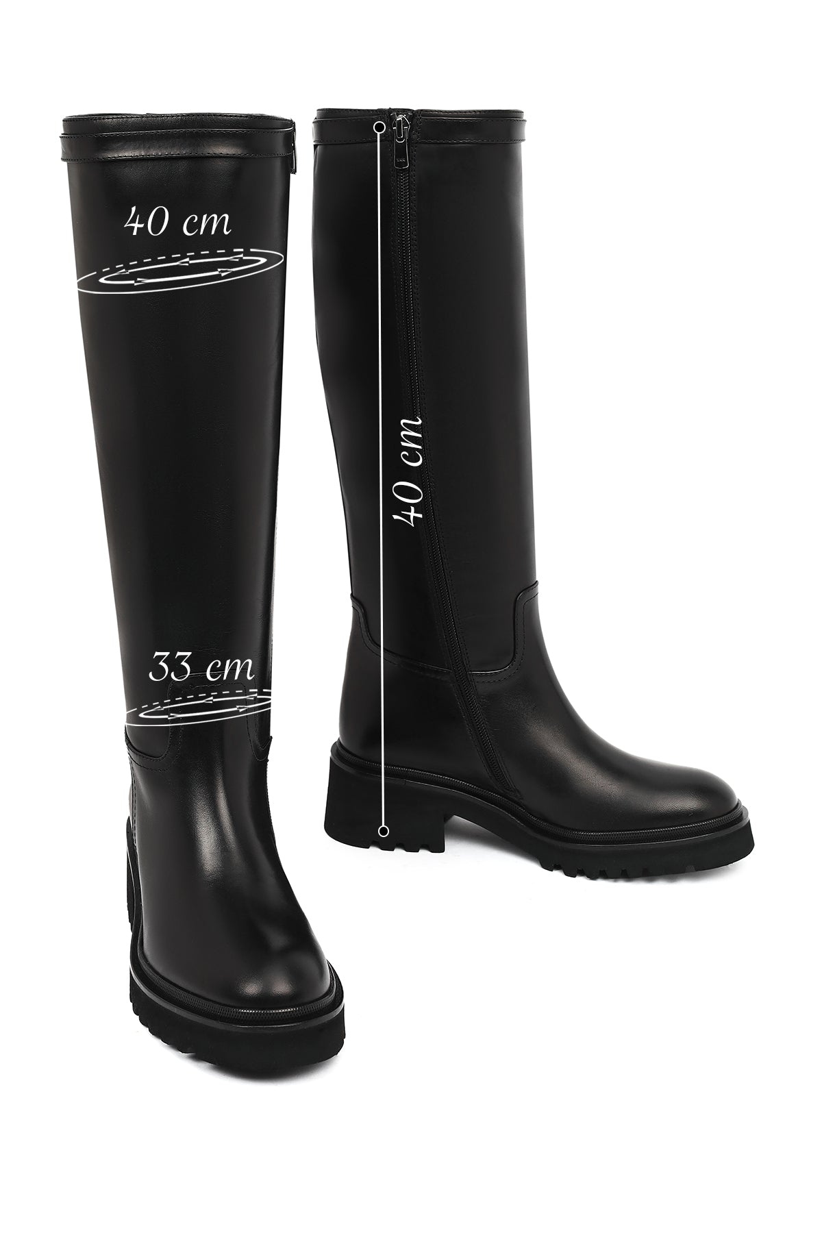 Kadın Siyah Fermuarlı Kalın Tabanlı Deri Çizme