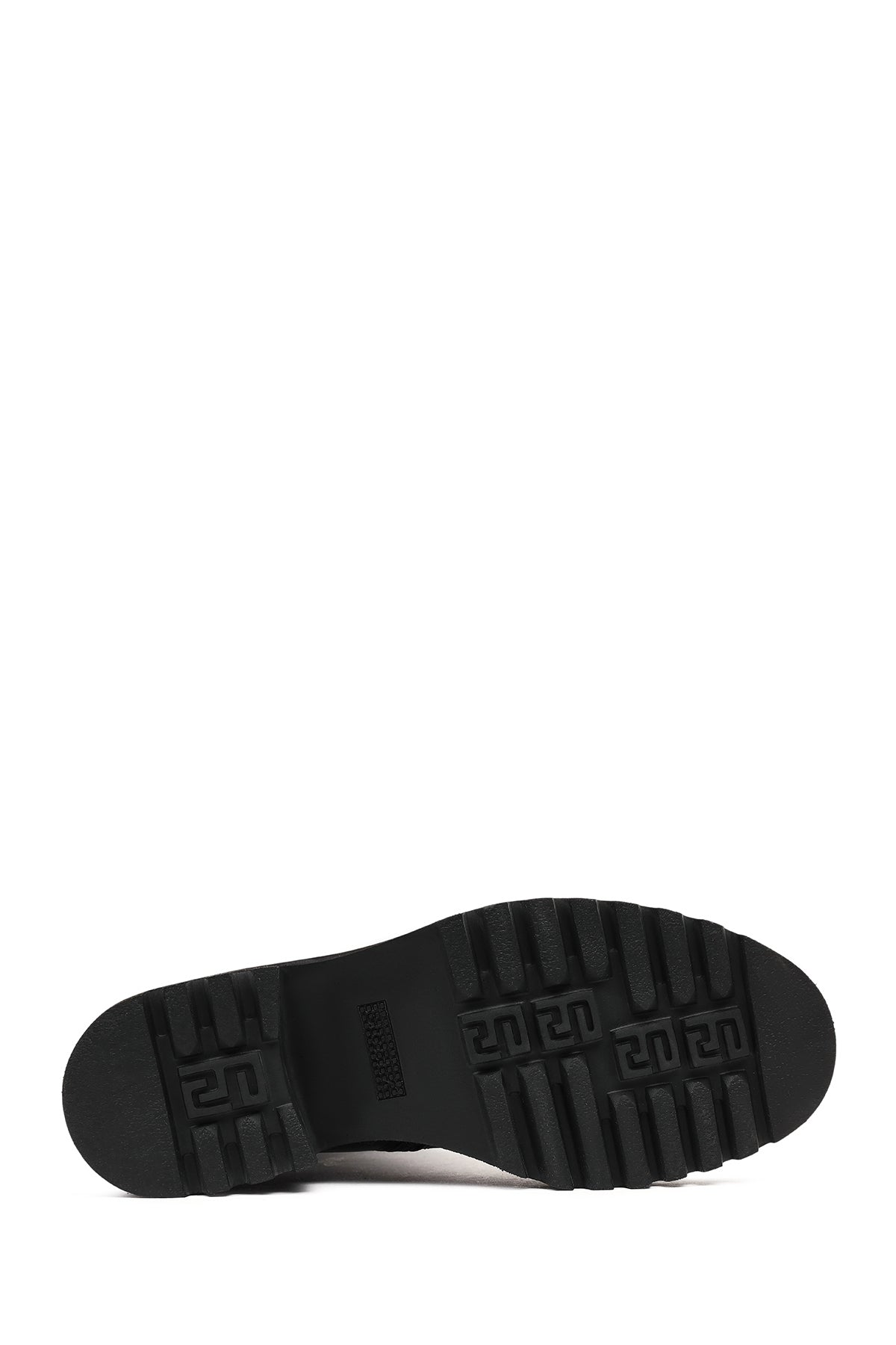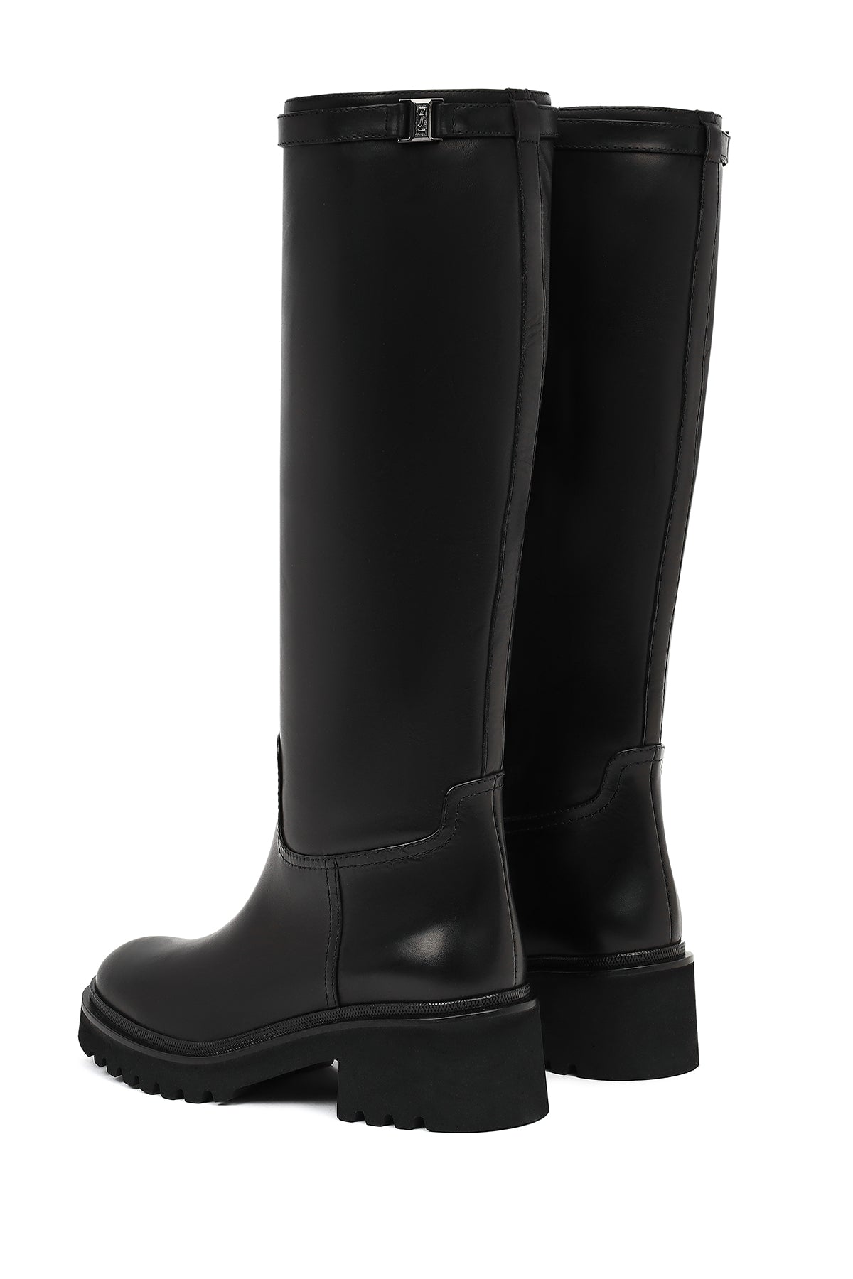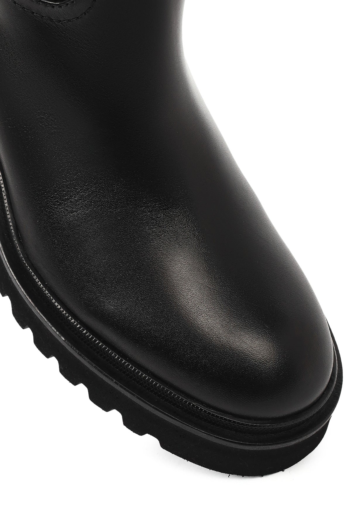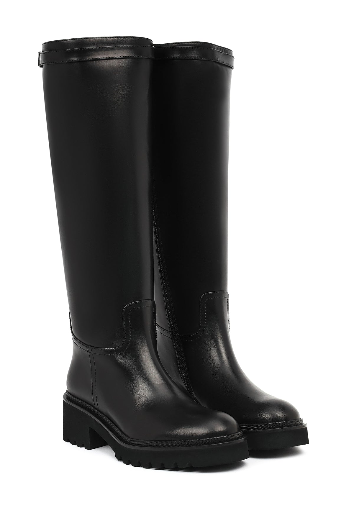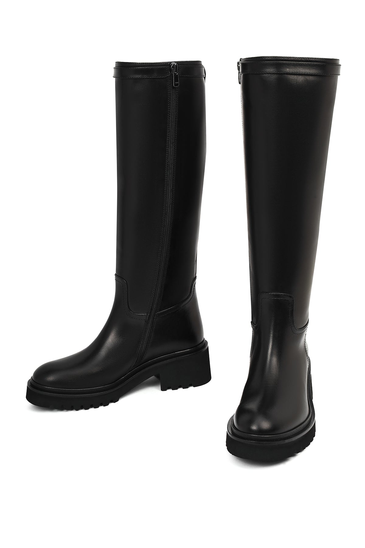 Kadın Siyah Fermuarlı Kalın Tabanlı Deri Çizme
