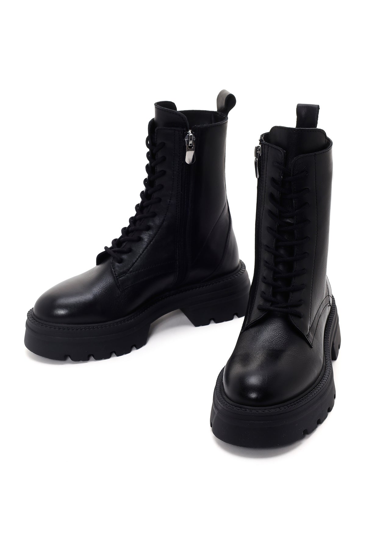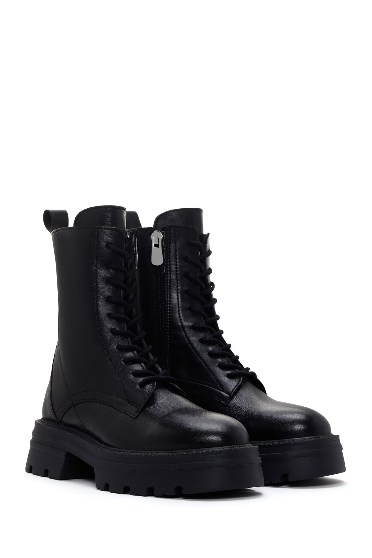 Express your style with the Women's Black Zippered Thick-Soled Leather Combat Boots that combine Derimod's Elegance and Sophistication. Product code: 25WFD550218 11