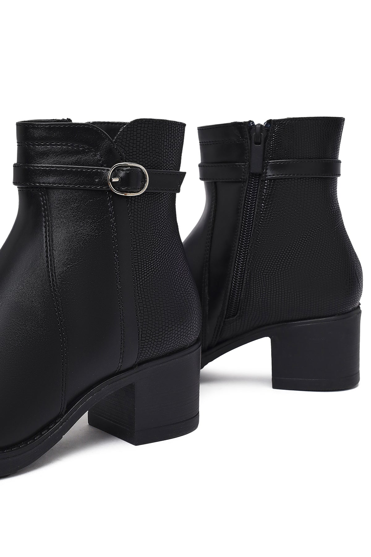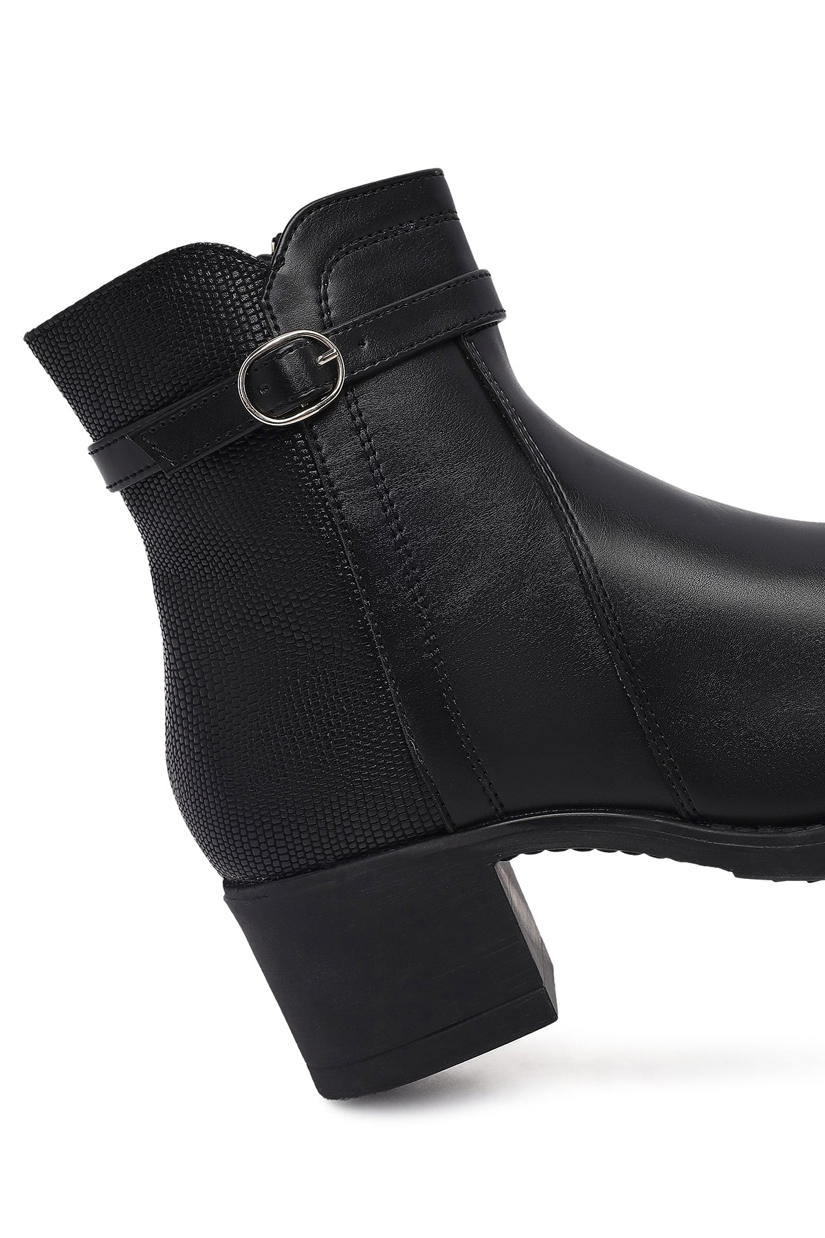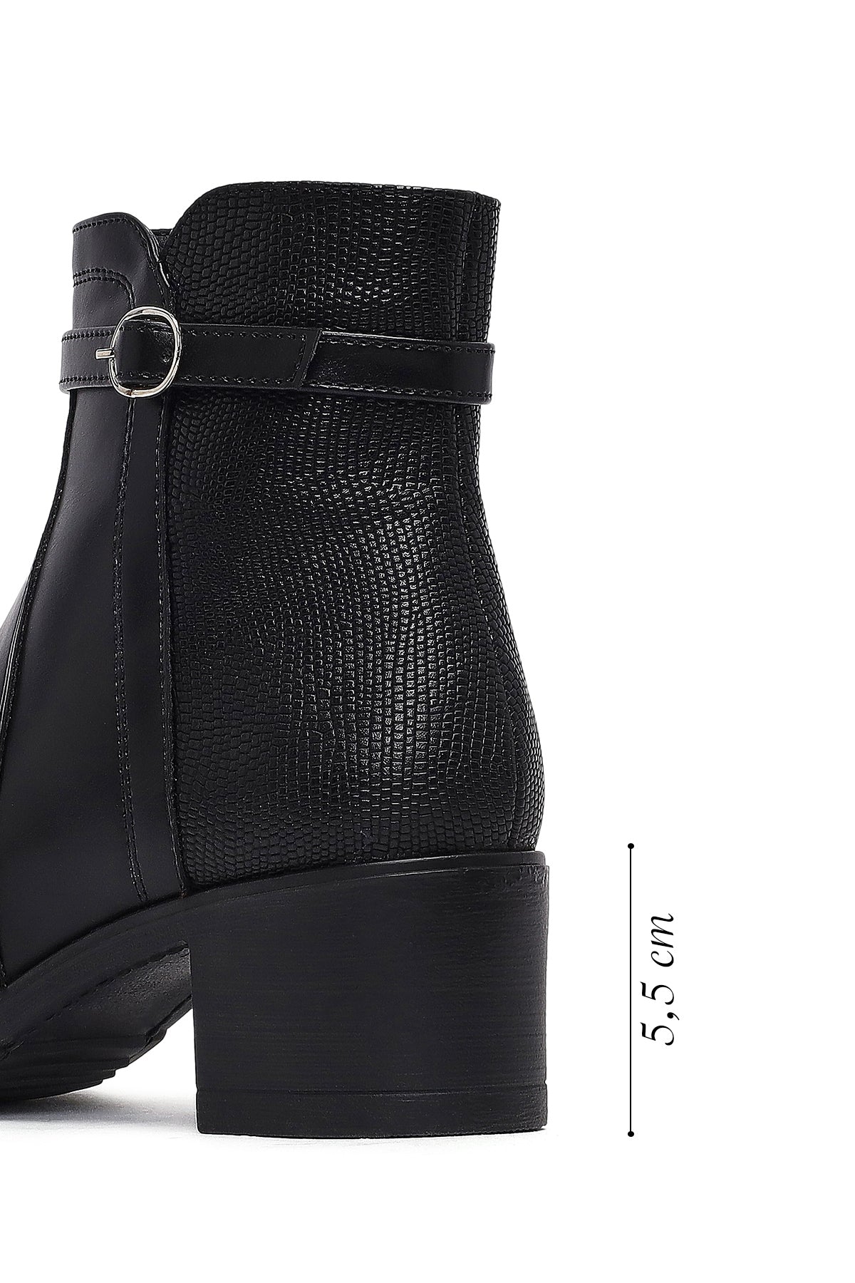 The winter collection's modern design boot model stands out with its black color and side zipper feature. The use of textile lining allows the foot to breathe, while the 5.5 cm high heel offers a stylish look. Suitable for daily use with its modern lines and minimal design. Especially in autumn and winter months, it perfectly matches both casual and elegant outfit combinations. Usage areas: Ideal for office environment, daily activities, and special invitations. Product code: 25WFE400914