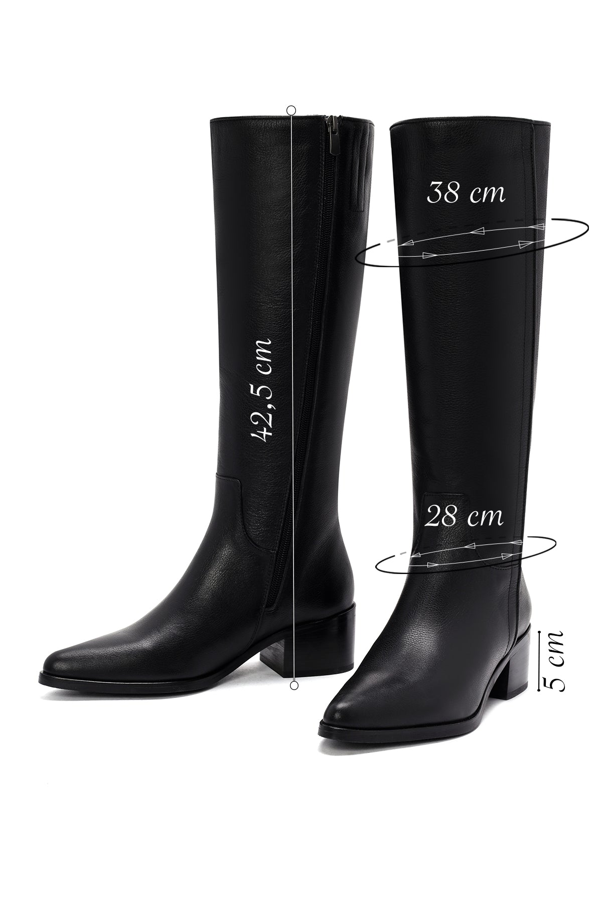 Express your style with the Women's Black Zippered Thick Heel Leather Boot that combines Derimod's Elegance and Chic. Product code: 25WFD152418 11