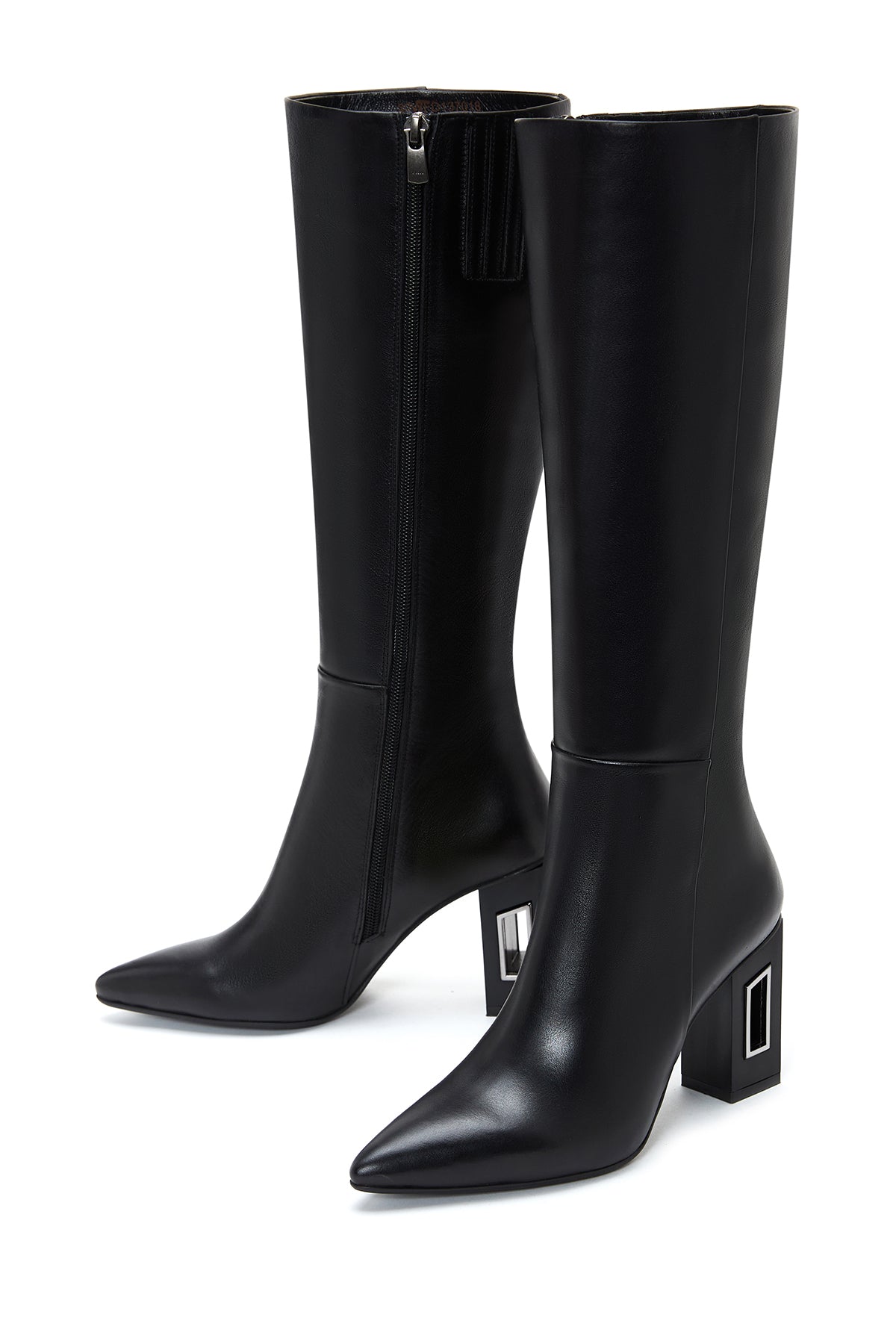 Made of Vidala leather, this boot is one of the elegant and impressive pieces of the winter season. Offering a practical wearing experience thanks to its side zipper, the model creates an eye-catching silhouette with its 8.5 cm heel height. The design, which has a breathable structure with its textile inner lining, provides safe walking with its durable outsole. With its black color and long length, the boot, which adapts to both special invitations and stylish combinations, can be preferred in autumn and winter. Areas of use: Ideal for special invitations, elegant dinners and important organizations. Product code: 24WFD132218