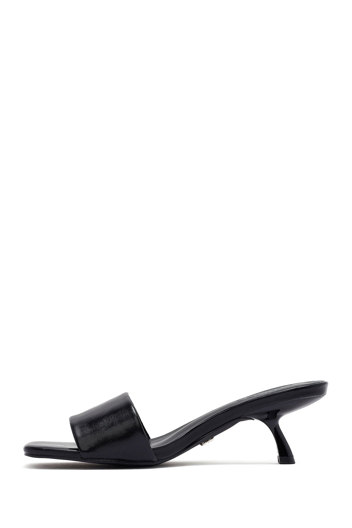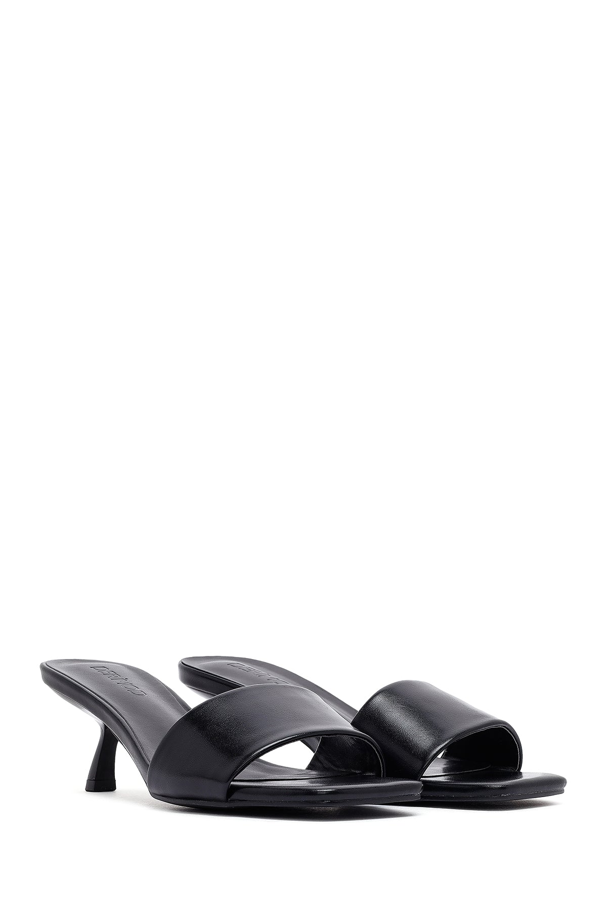 Derimod's elegance and style together Woman Show off your style with these Black Thin Short Heeled Slippers. Product code: 25SFE451318 11