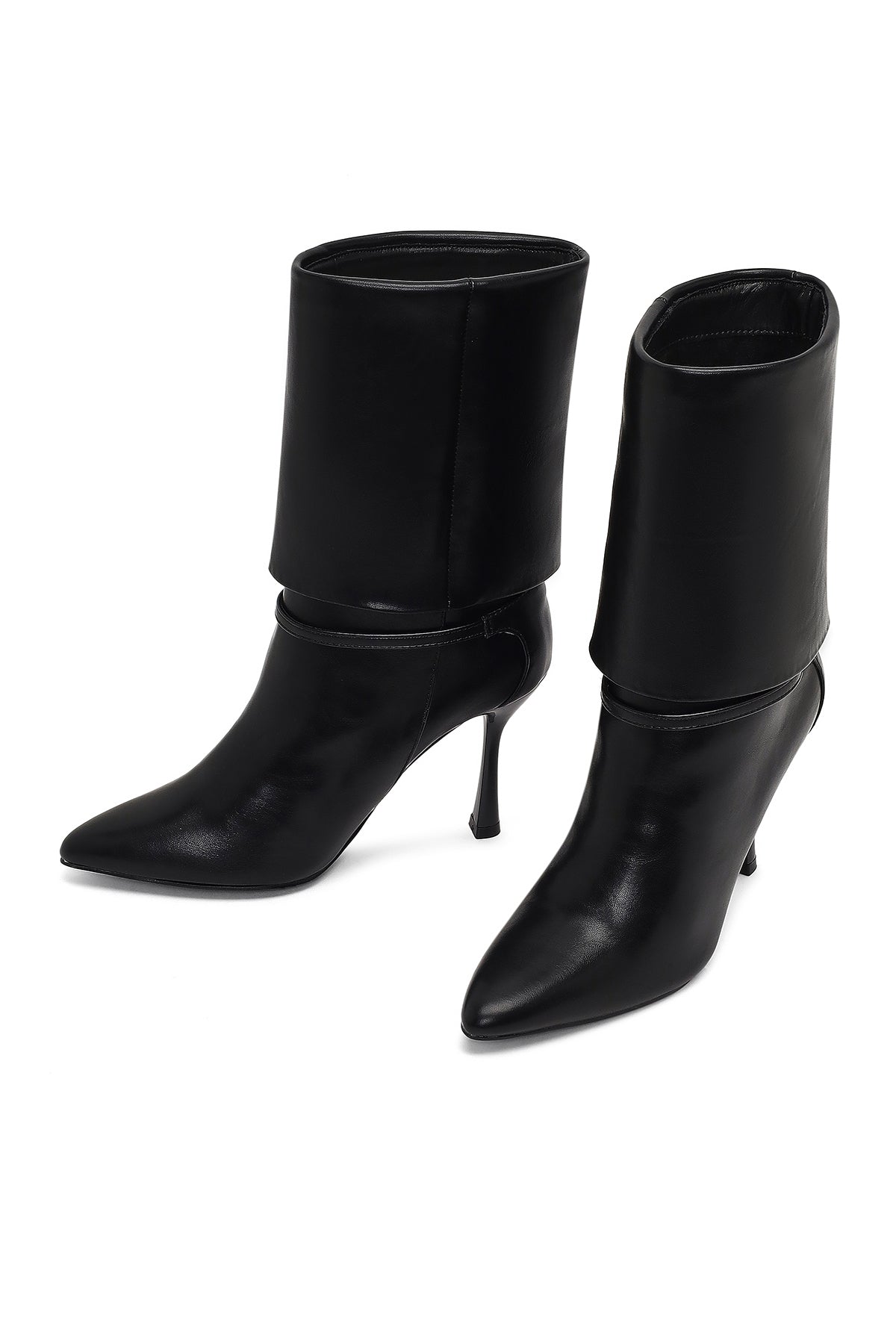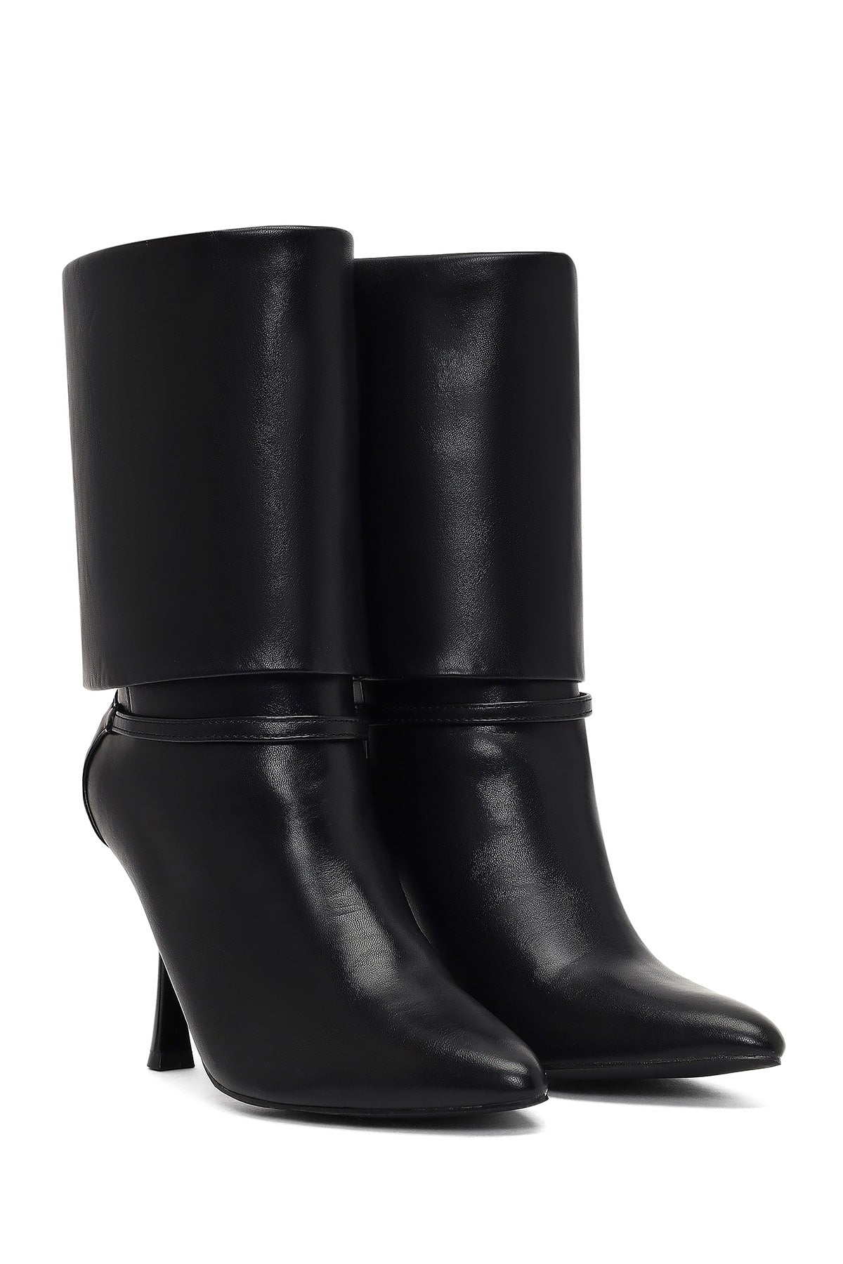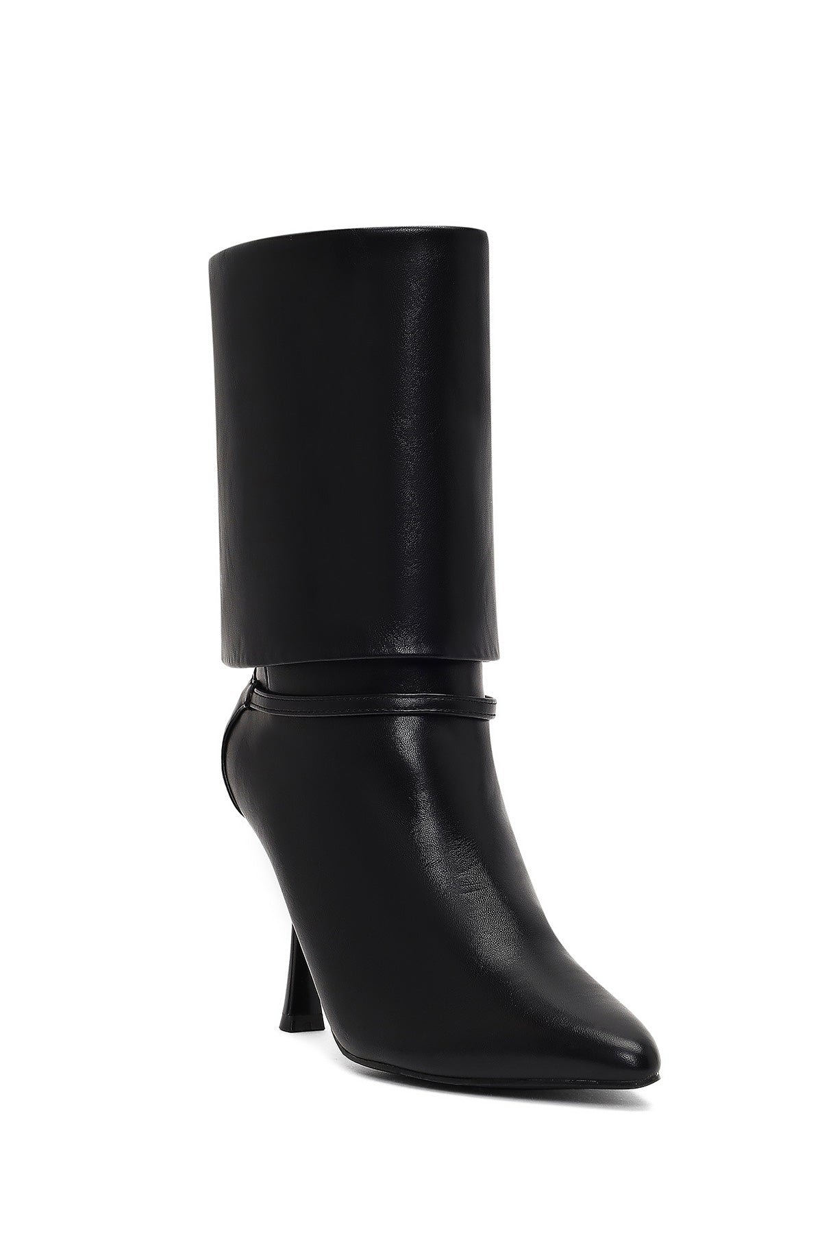 From Derimod's autumn collection, the black boot model with elegant lines offers a stylish look with its 9 cm high slim heel. The model, which stands out with its Vidala leather structure and minimalist design, provides a quality use with its leather inner lining. The boot, creating a feminine silhouette with its pointed toe shape and slim heel detail, offers a wide range of use from dresses to skirts, from trousers to skinny jeans. It can be preferred in every setting from special invitations to office use during autumn and winter seasons. Product code: 25AFE481018
