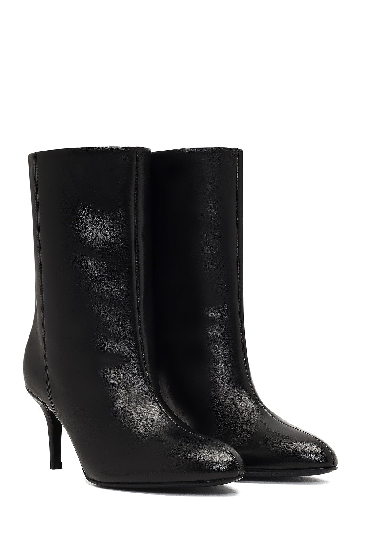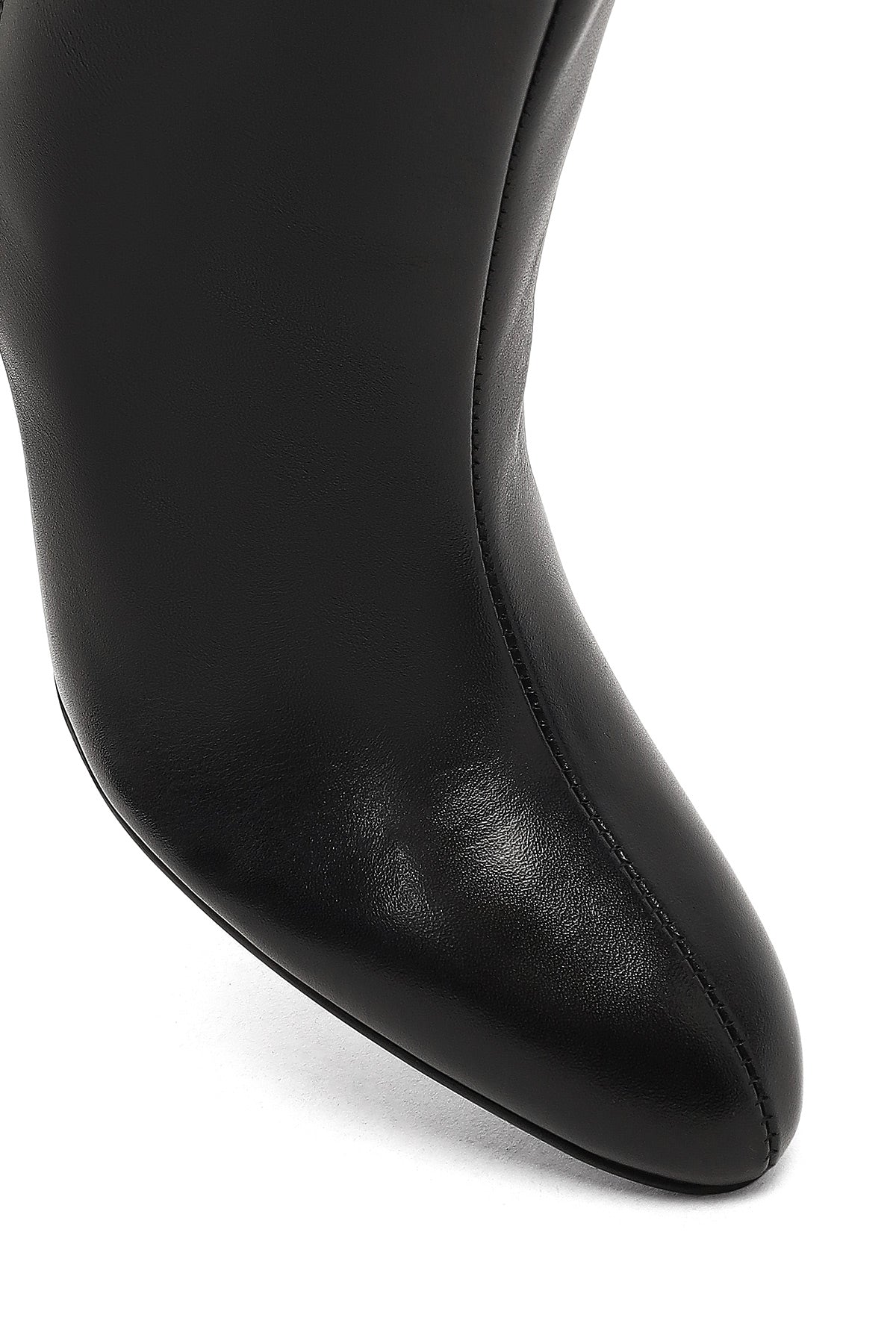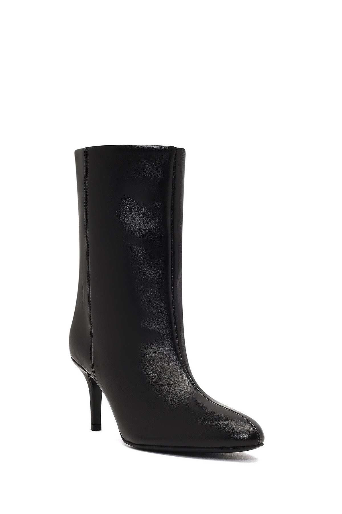The elegant boot model of the winter collection attracts attention with its black screwed leather upper surface and slim heel design. The use of leather lining allows the foot to breathe, while the 7.5 cm high slim heel offers a stylish look. With its minimal lines and timeless design, it is suitable for use on special occasions. Especially in winter months, it perfectly matches stylish clothing combinations. Usage areas: Ideal for special invitations, business meetings, and dinners. Product code: 25WFD141516