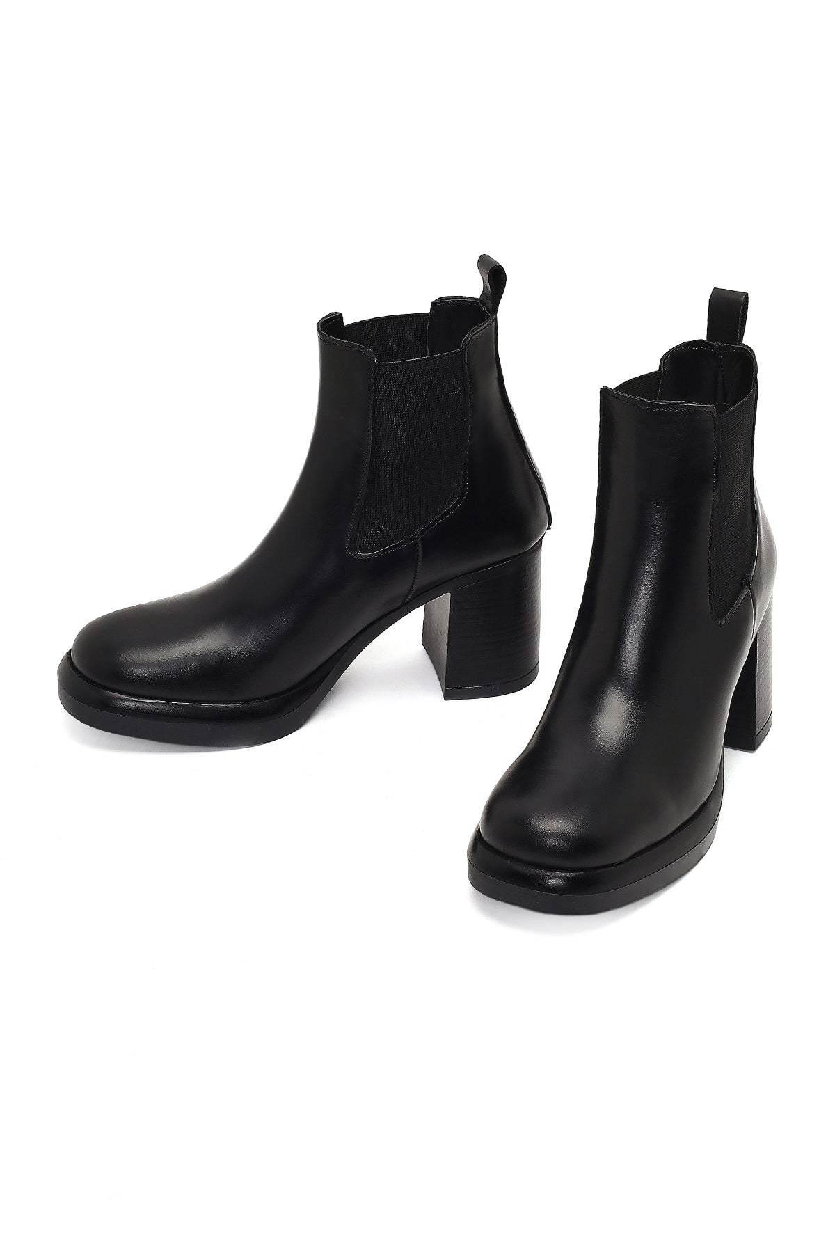 Express your style with the Women's Black Thick Heel Leather Chelsea Boot that combines Derimod's elegance and sophistication. Product code: 25WFD184518 11