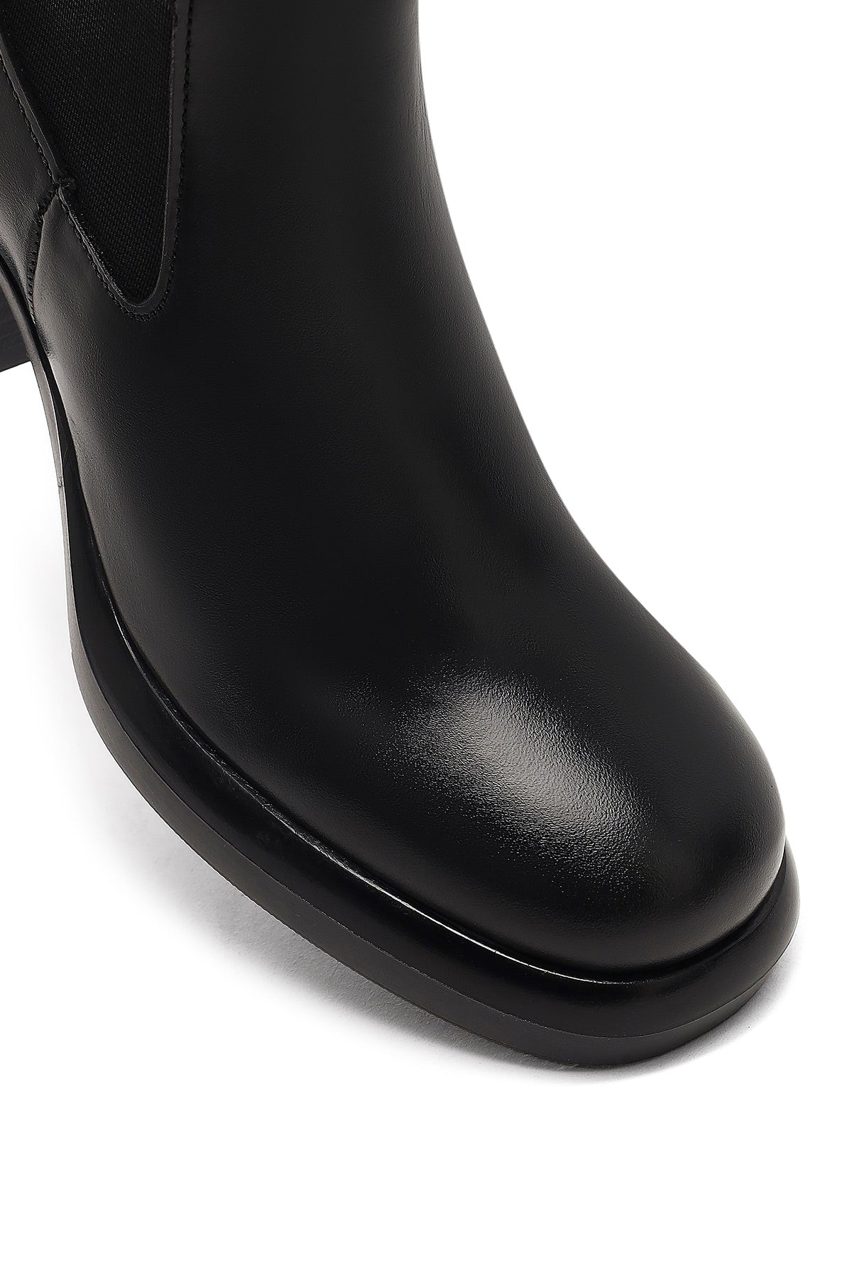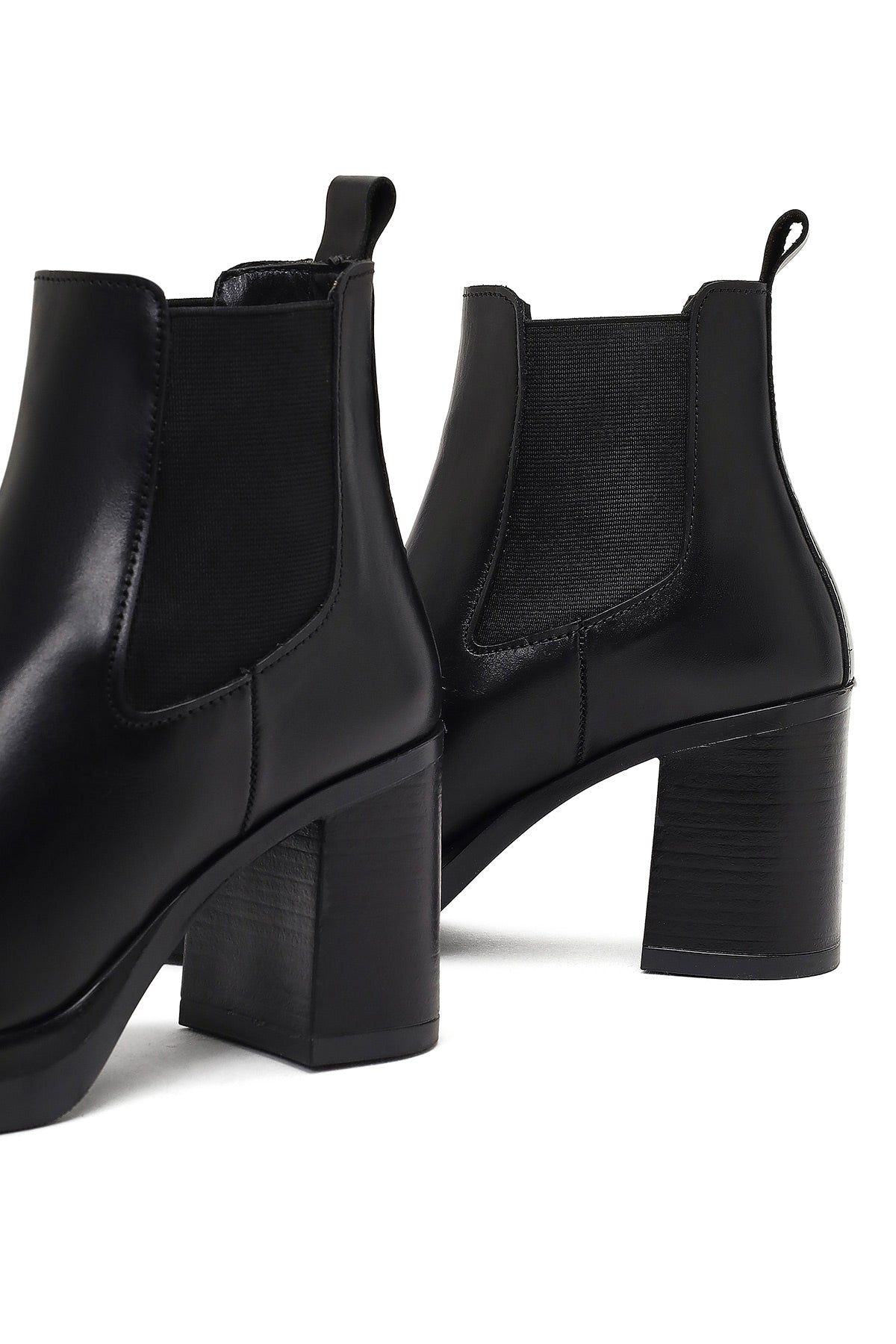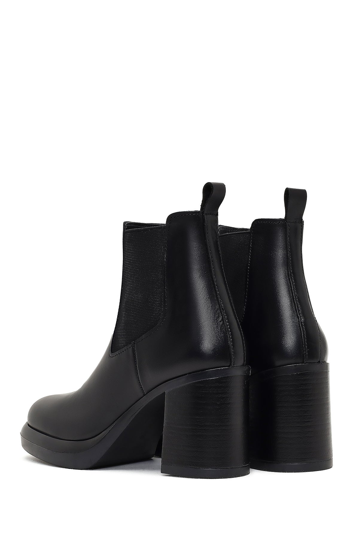 **Turkish Description:** Women's Black Thick Heel Leather Chelsea Boot is a timeless design that combines the style and functionality needed by the modern woman in city life. Made with Vidala leather feature, the boot offers superior quality and durability, while its black color perfectly matches every wardrobe. The 8 cm thick heel design adds elegance while providing stability and balance for daily use. The Chelsea boot silhouette offers easy wear with classic elastic side panels and pull tabs at the back. The leather inner lining allows the foot to breathe and creates comfort during long-term use. The thick sole structure protects foot health and increases walking comfort at all hours of the day. A standout piece of the winter collection, the boot performs excellently in cold weather conditions. It has a wide range of uses from office environments to dinners, daily shopping to meeting friends. It can also be comfortably preferred in spring and autumn months. Thanks to Vidala leather craftsmanship, it maintains its shape for many years and shows no signs of aging. Designed for the active lifestyle of the modern woman, the boot becomes an indispensable part of the wardrobe with both aesthetic and functional features. Product code: 25WFD188318
