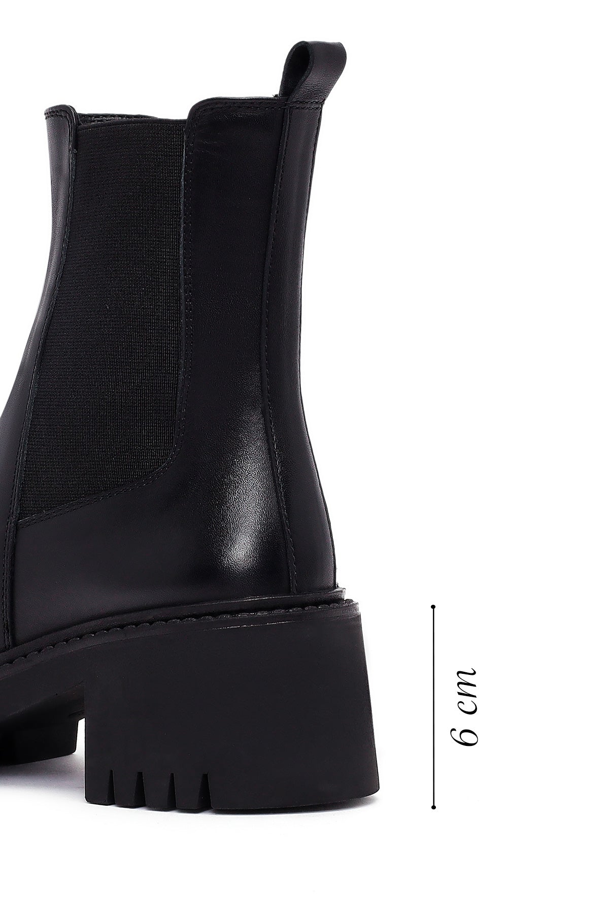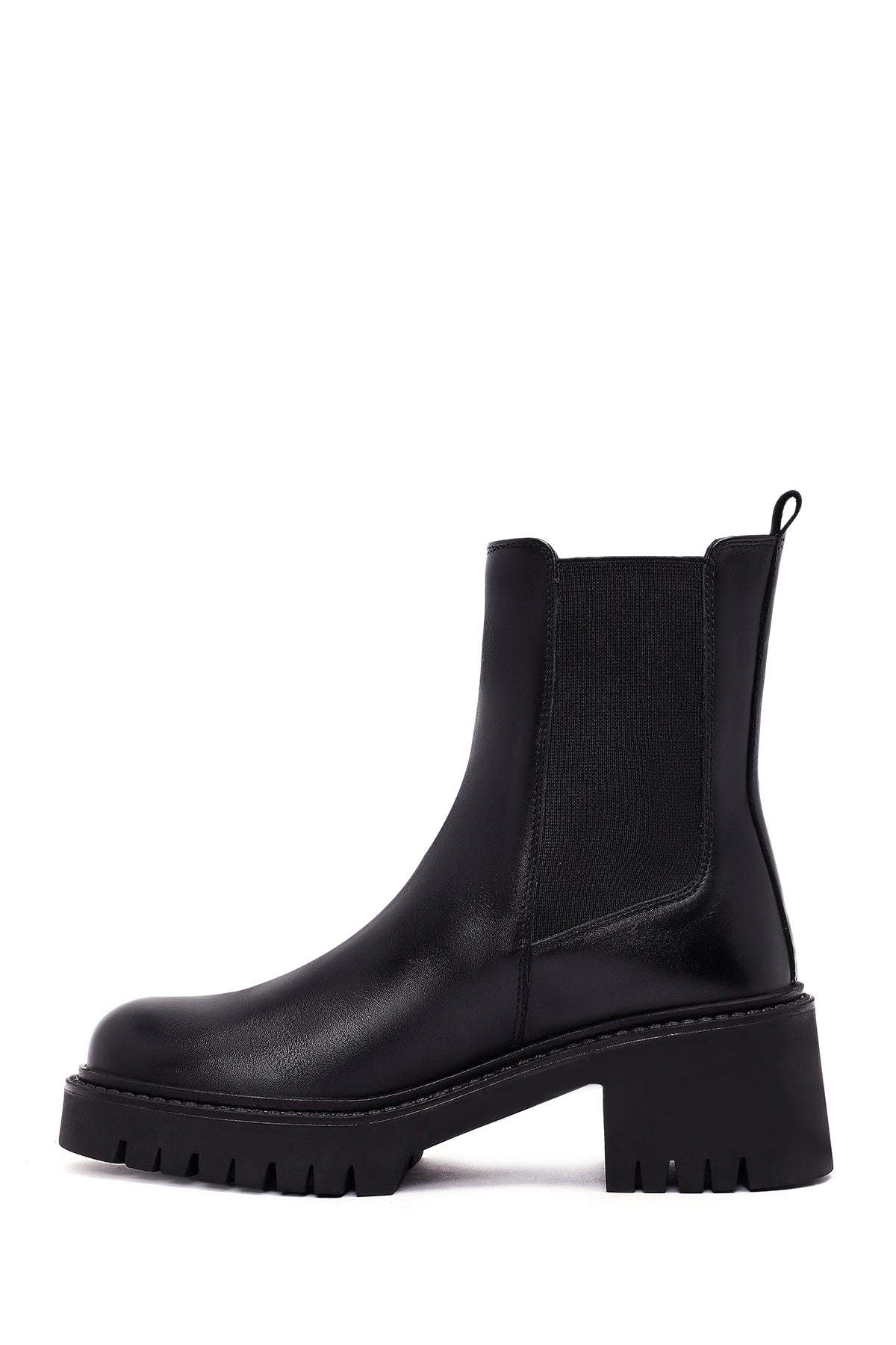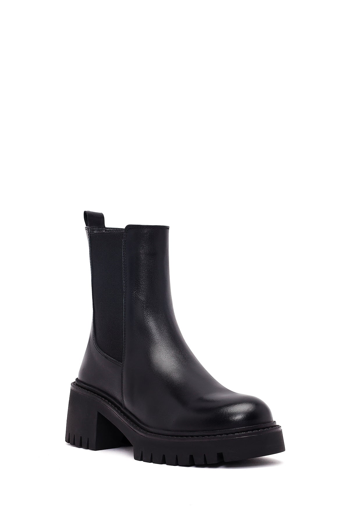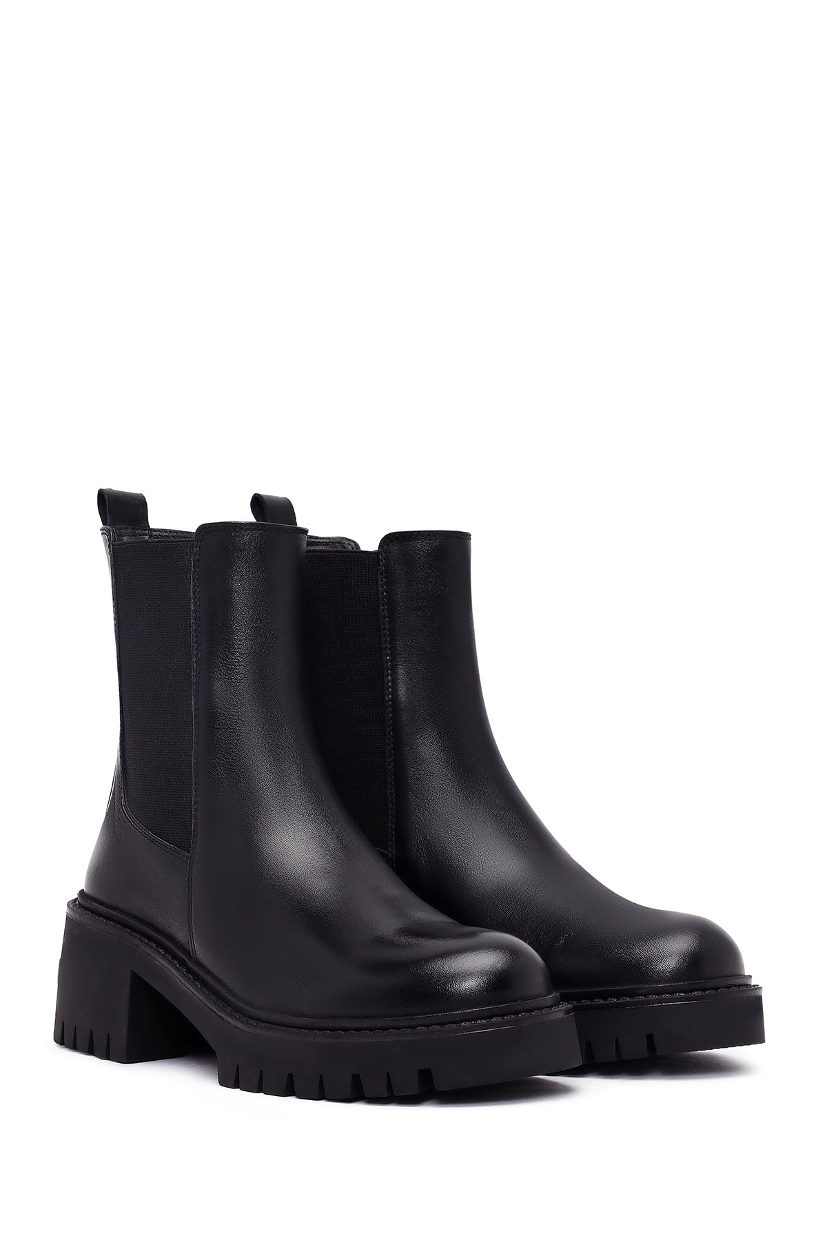 **Turkish Description:** One of the standout pieces of Derimod's winter collection, the Women's Black Thick Heel Leather Chelsea Boot offers a perfect answer to the modern woman's search for both stylish and practical footwear. Made with Vidala leather feature, the boot has durability that can be used for many years thanks to its superior quality genuine leather material. The model, which offers timeless elegance with its black color, provides both visual appeal and comfort in daily use with a heel height of 6 cm. The side elastic panels, characteristic of the Chelsea boot style, make it easy to put on and take off the shoe. The leather inner lining allows the foot to breathe, offering comfort throughout the day. Thanks to its thick heel design, the boot provides balance and stability while walking and has a wide range of use from office environments to daily activities. While keeping your feet warm on cold winter days, the model, which does not require you to compromise your stylish appearance, matches many outfits from jeans to skirts and dresses. With its sturdy structure and classic design, the Chelsea boot, which will be an indispensable part of your wardrobe, offers a versatile option that can be comfortably preferred in every season. Product code: 25WFD511318