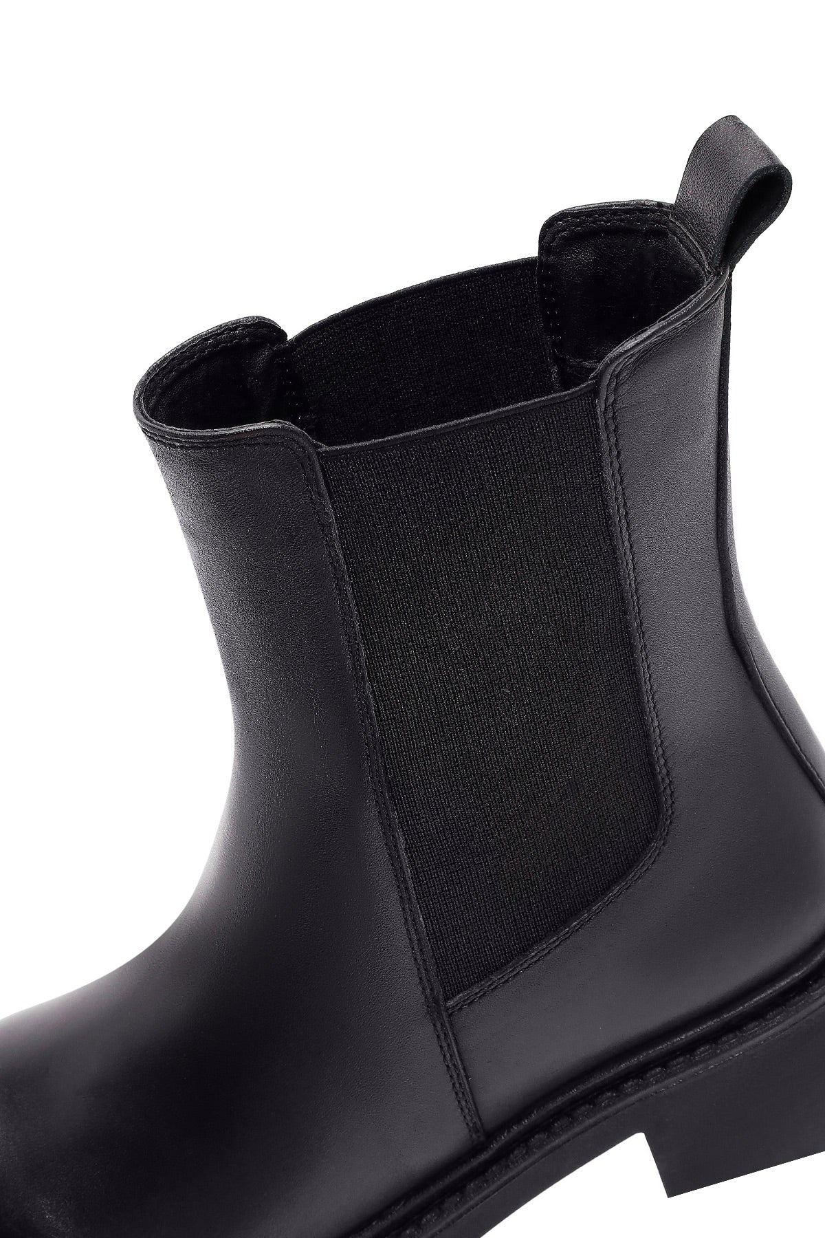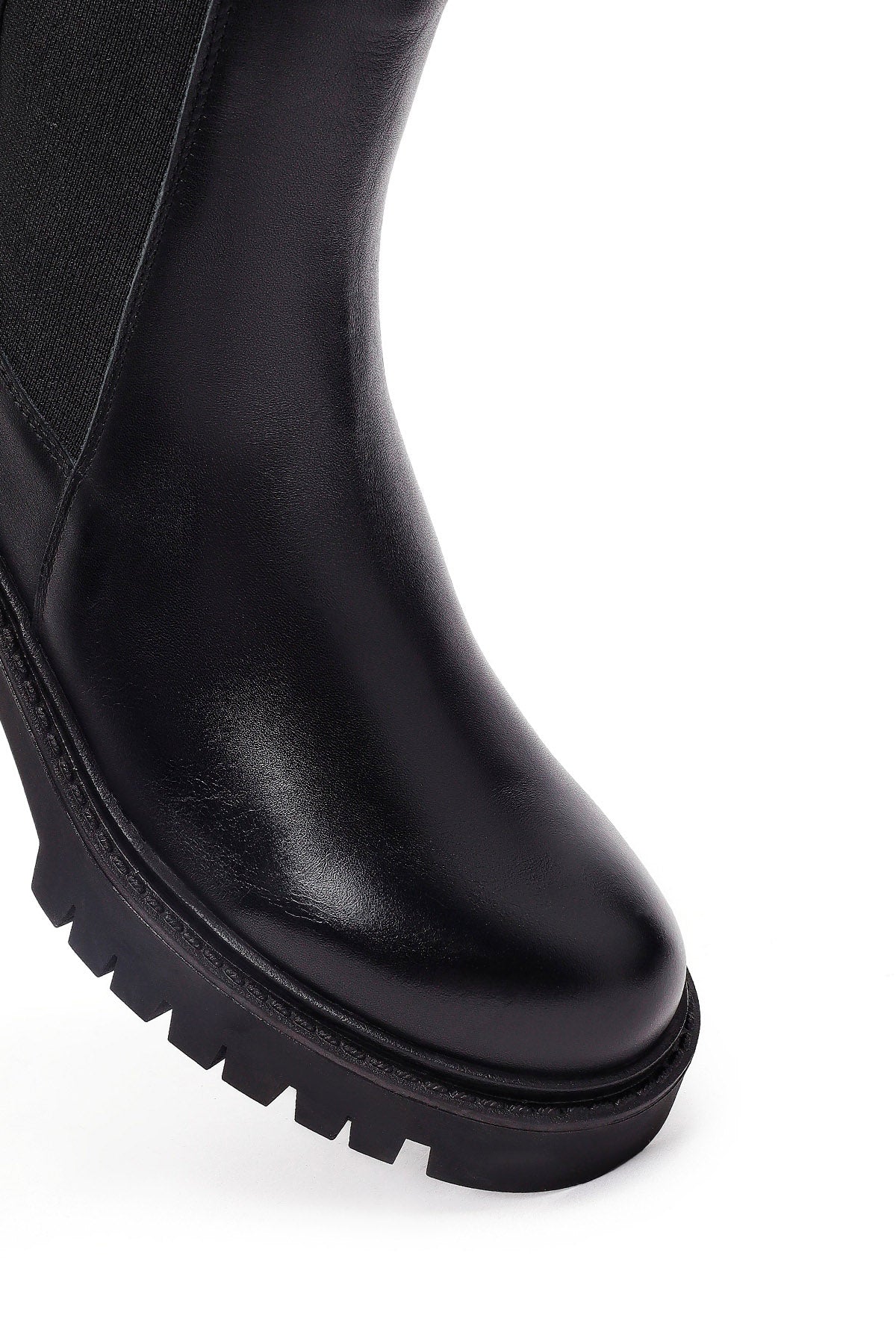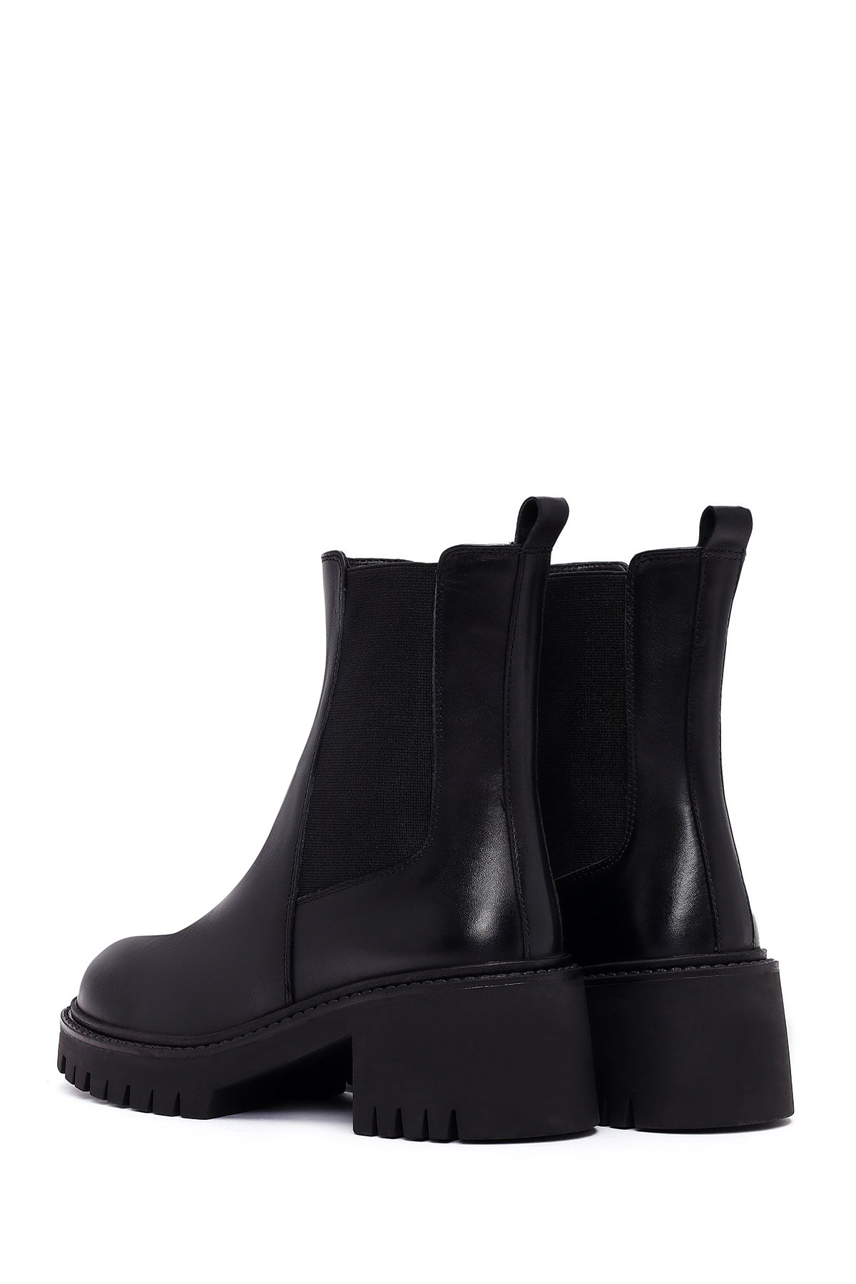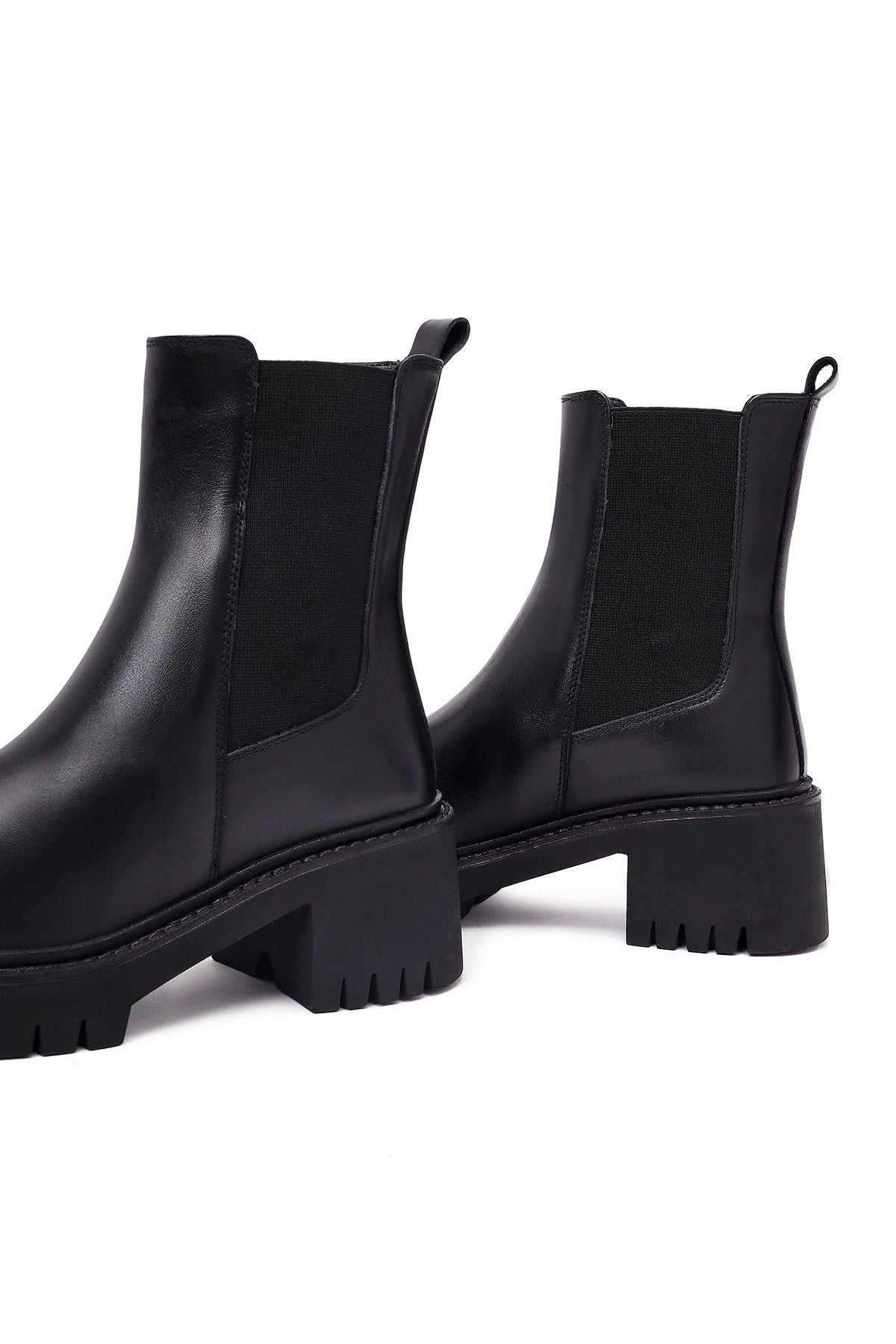 **Turkish Description:** One of the standout pieces of Derimod's winter collection, the Women's Black Thick Heel Leather Chelsea Boot offers a perfect answer to the modern woman's search for both stylish and practical footwear. Made with Vidala leather feature, the boot has durability that can be used for many years thanks to its superior quality genuine leather material. The model, which offers timeless elegance with its black color, provides both visual appeal and comfort in daily use with a heel height of 6 cm. The side elastic panels, characteristic of the Chelsea boot style, make it easy to put on and take off the shoe. The leather inner lining allows the foot to breathe, offering comfort throughout the day. Thanks to its thick heel design, the boot provides balance and stability while walking and has a wide range of use from office environments to daily activities. While keeping your feet warm on cold winter days, the model, which does not require you to compromise your stylish appearance, matches many outfits from jeans to skirts and dresses. With its sturdy structure and classic design, the Chelsea boot, which will be an indispensable part of your wardrobe, offers a versatile option that can be comfortably preferred in every season. Product code: 25WFD511318