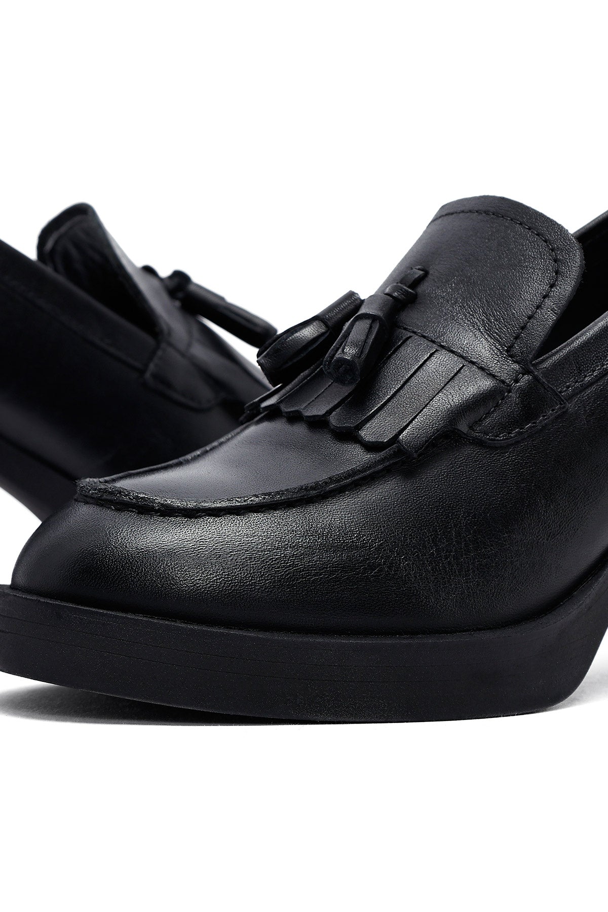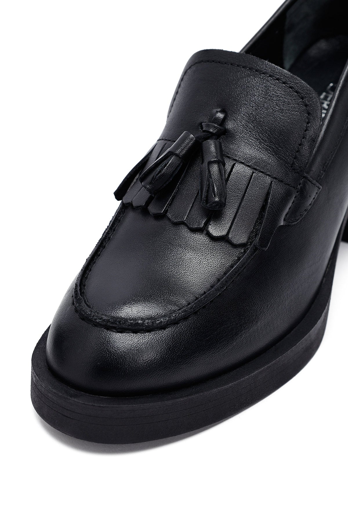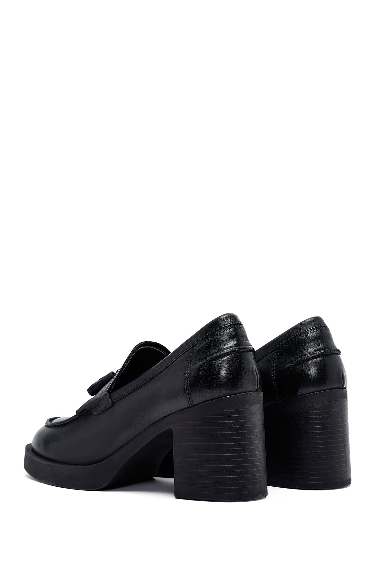 The modern masculine loafer model of the autumn collection draws attention with its black screwed leather upper surface and tassel details. The use of leather lining allows the foot to breathe, while the 7.5 cm high heel offers a stylish look. Suitable for daily use with its masculine lines and thick-heeled design. Especially in autumn months, it perfectly matches both casual and elegant clothing combinations. Usage areas: Ideal for office environment, special invitations, and city tours. Product code: 25AFD510618