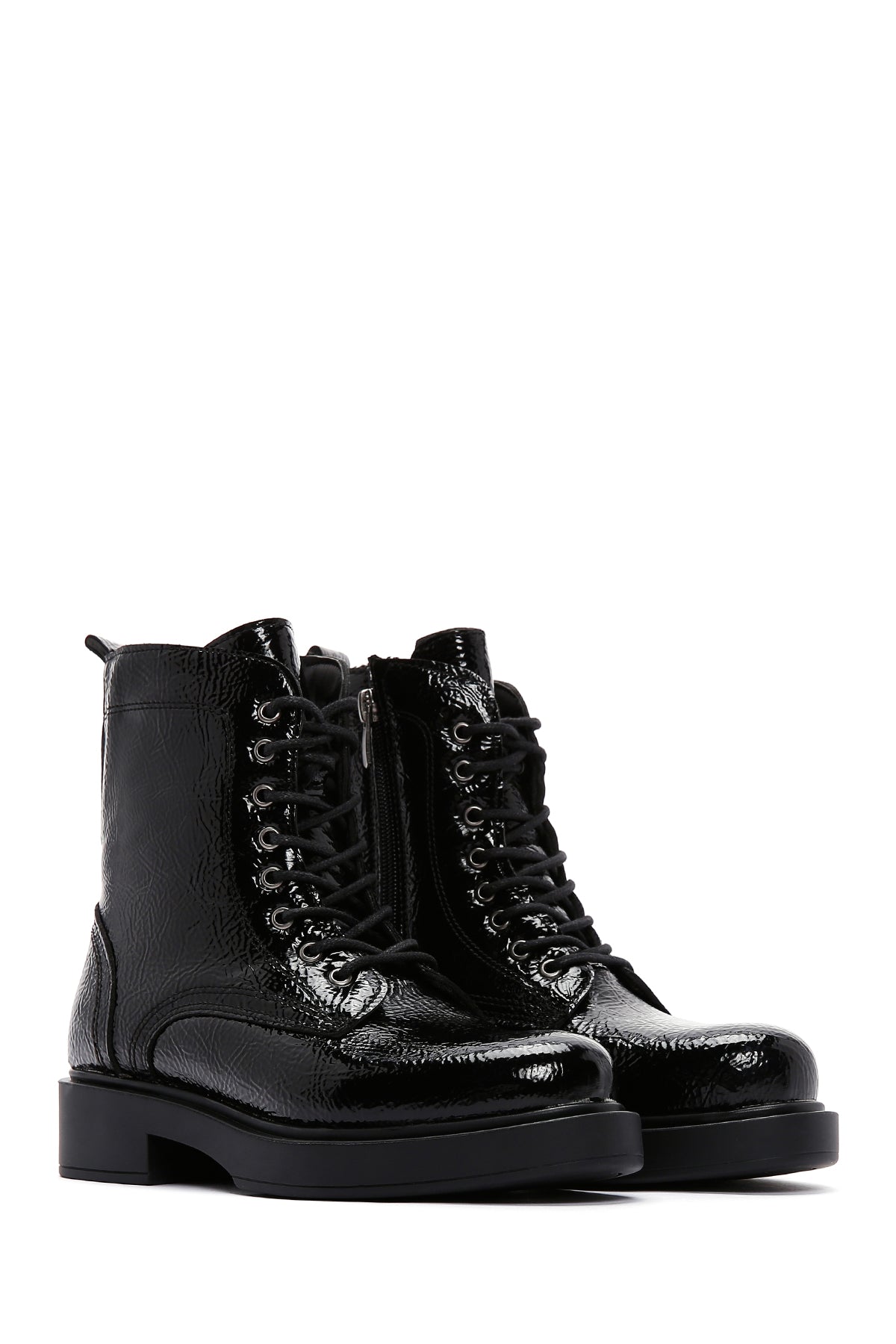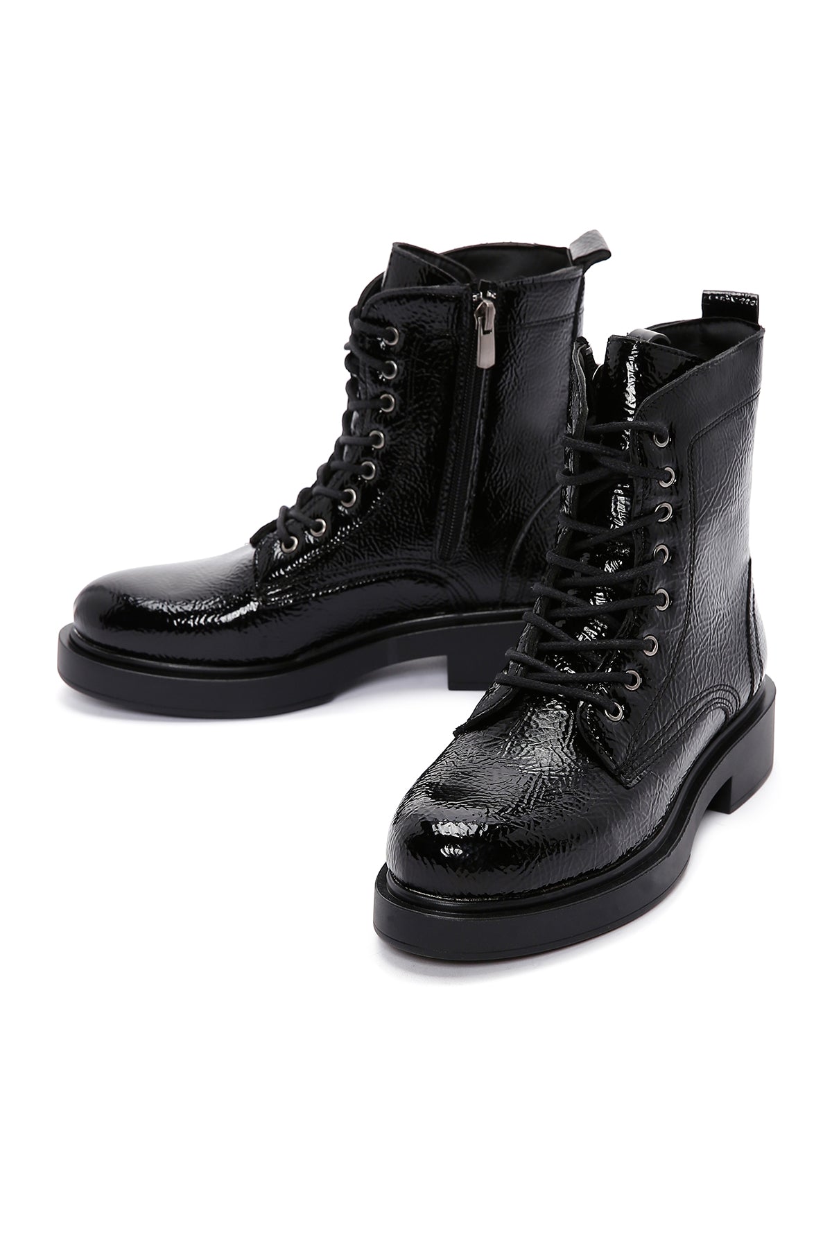 Show off your style with Derimod's Women's Black Wrinkled Patent Leather Zippered Flat Boots, which offer style and elegance together. Product code: 23WFE200816 11