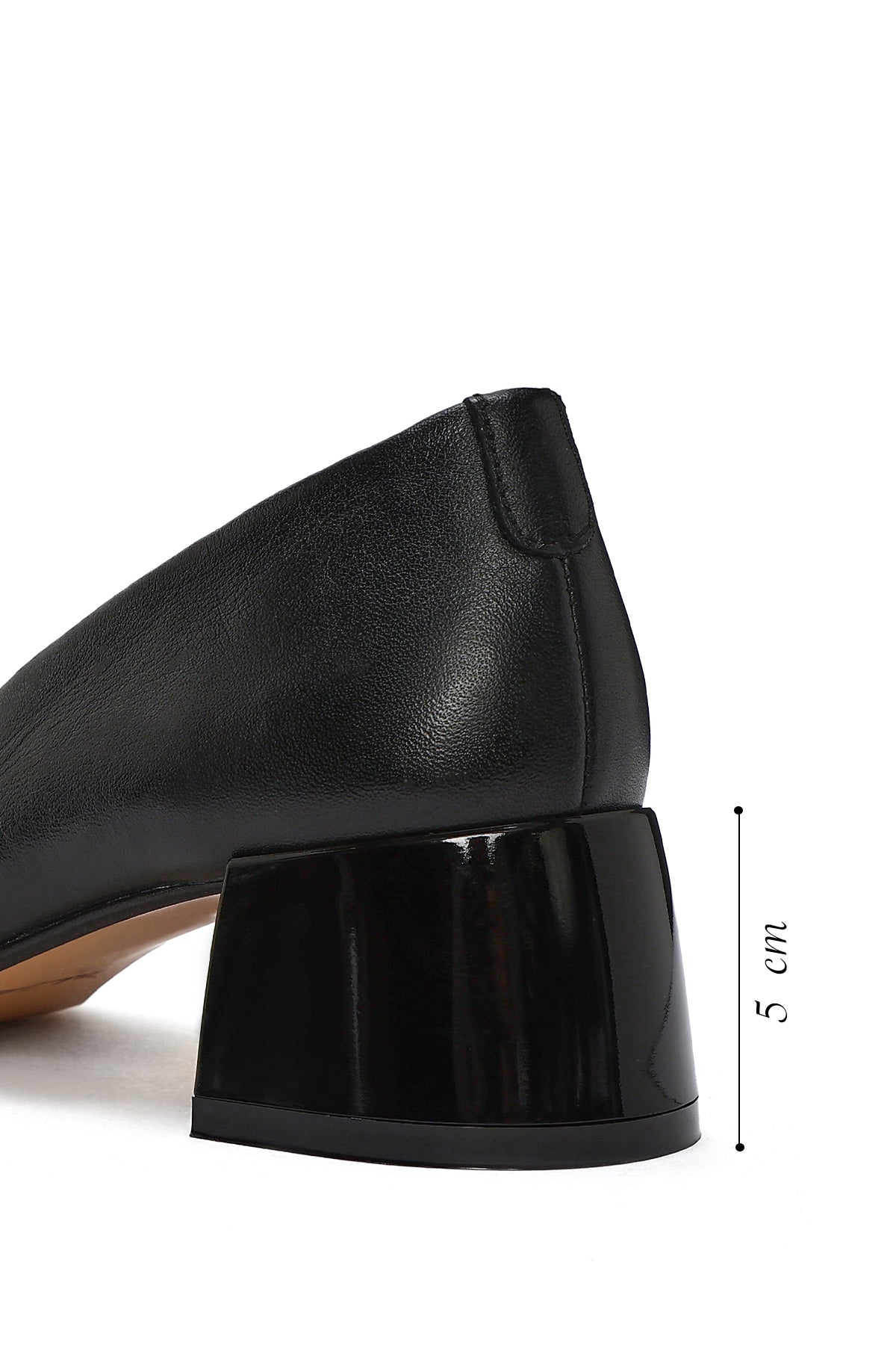 Kadın Siyah Kısa Kalın Topuklu Deri Ayakkabı