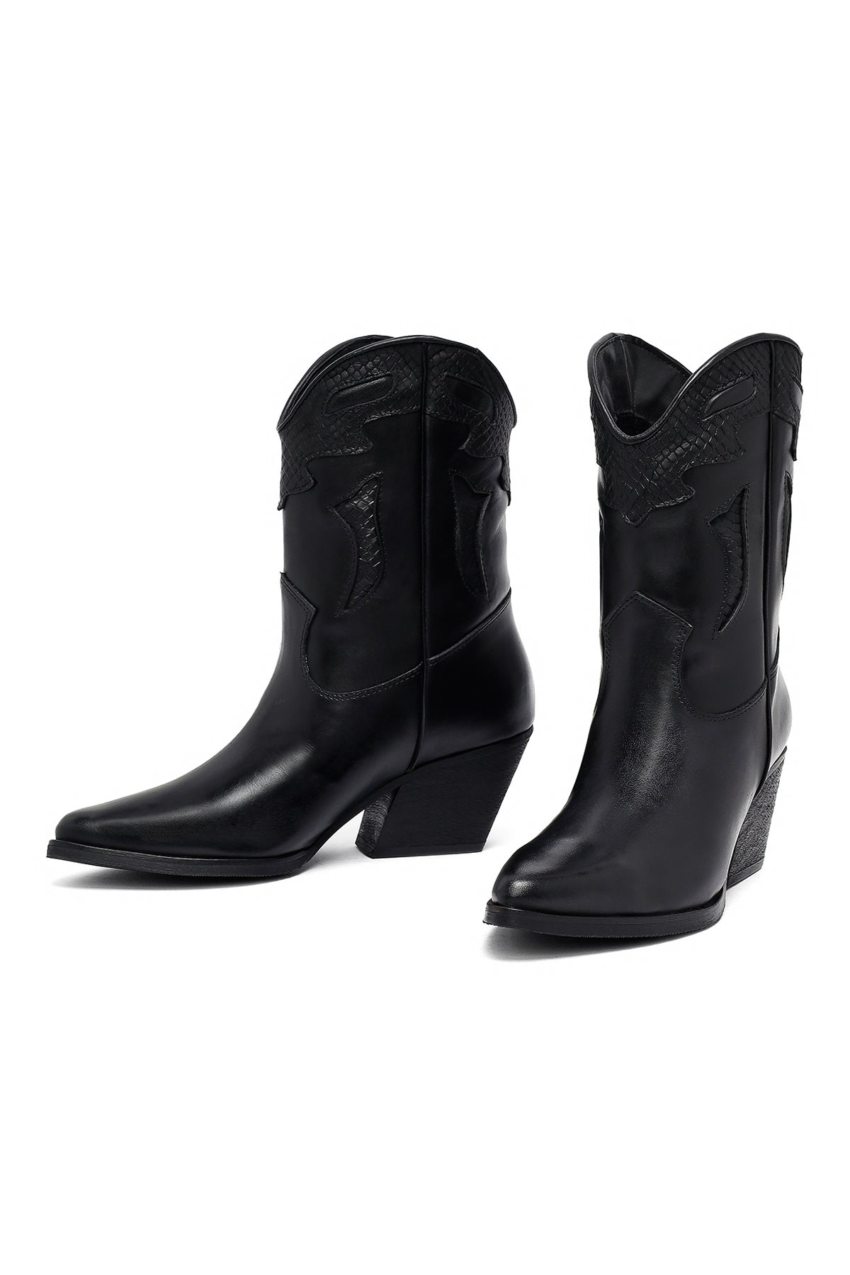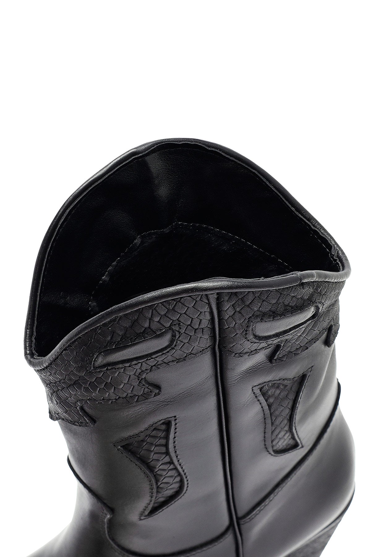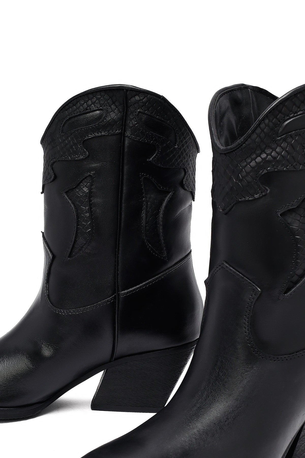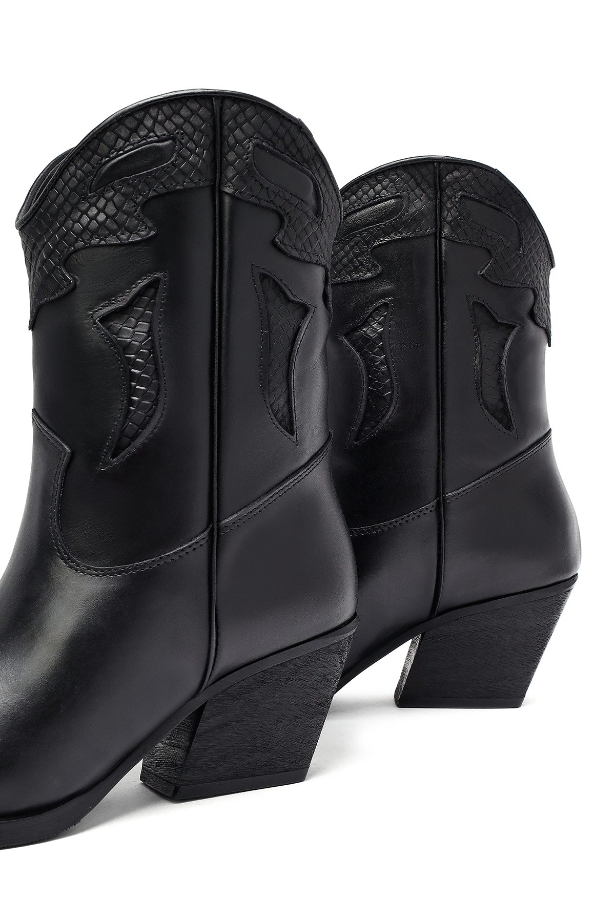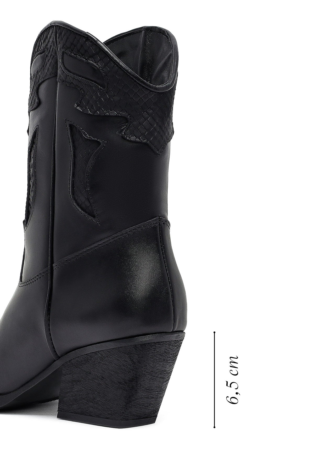 The modern cowboy boot of the winter collection stands out with its black screwed leather upper surface and characteristic western design. The use of fabric lining and the 6.5 cm high heel offer a stylish look. Adapted to today's fashion with classic western stitching and contemporary lines. Especially in autumn and winter months, it perfectly matches both casual and elegant clothing combinations. Usage areas: Ideal for daily activities, city tours, and special invitations. Product code: 25WFD182518