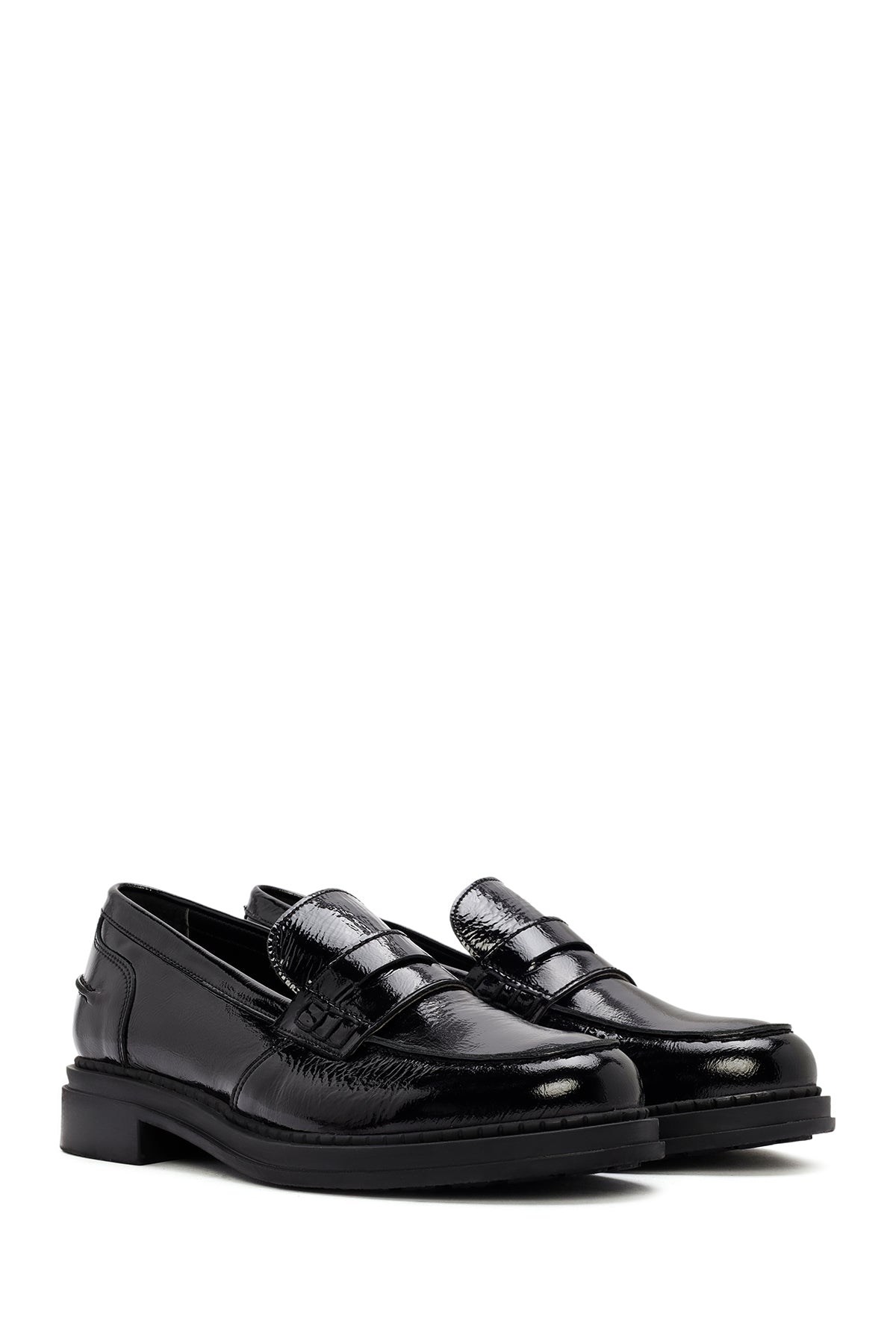 This masculine loafer, made of patent leather, is one of the stylish and elegant pieces of the winter season. The model, which provides a balanced stance with its 2.5 cm heel height, protects foot health thanks to its leather inner lining. The loafer, which adapts to both formal and daily combinations with its black patent leather and minimalist design, offers long-lasting use with its thick and durable outsole. Areas of use: Ideal for office, business meetings, daily life and stylish invitations. Product code: 24WFD413416
