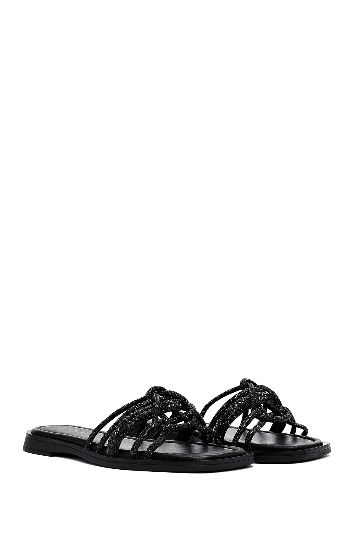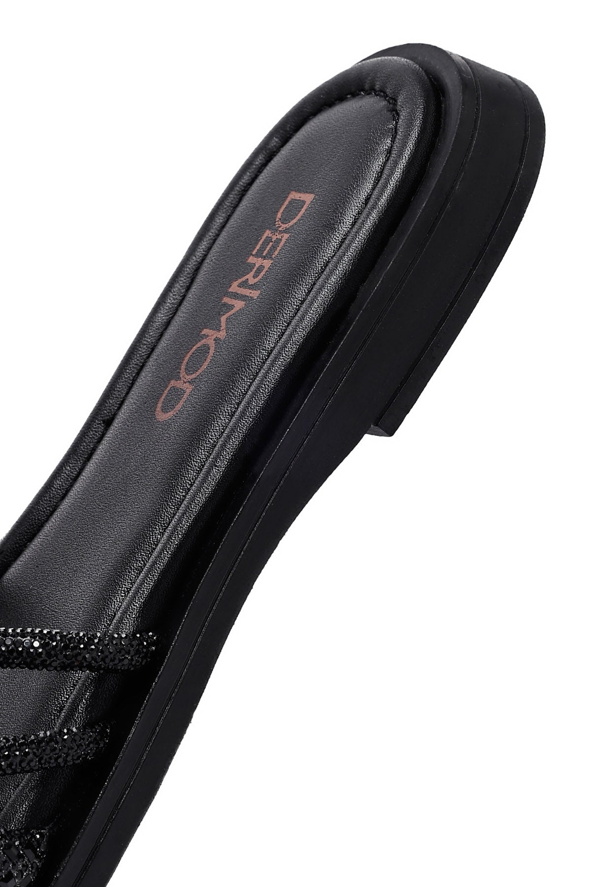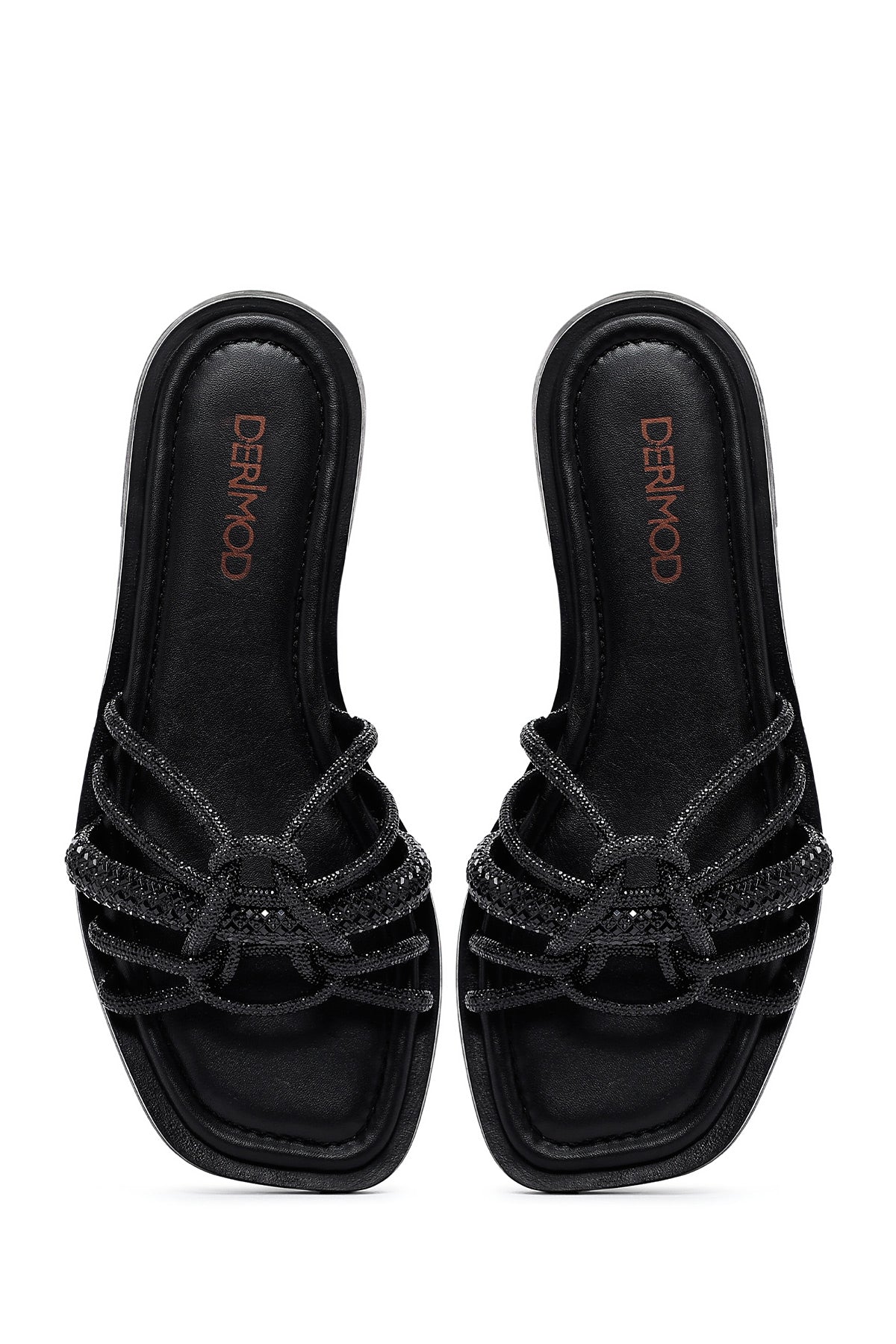 Derimod's elegance and style together Woman Black Stone Leather Show off your style with slippers. Product code: 25SFD1829TS 11