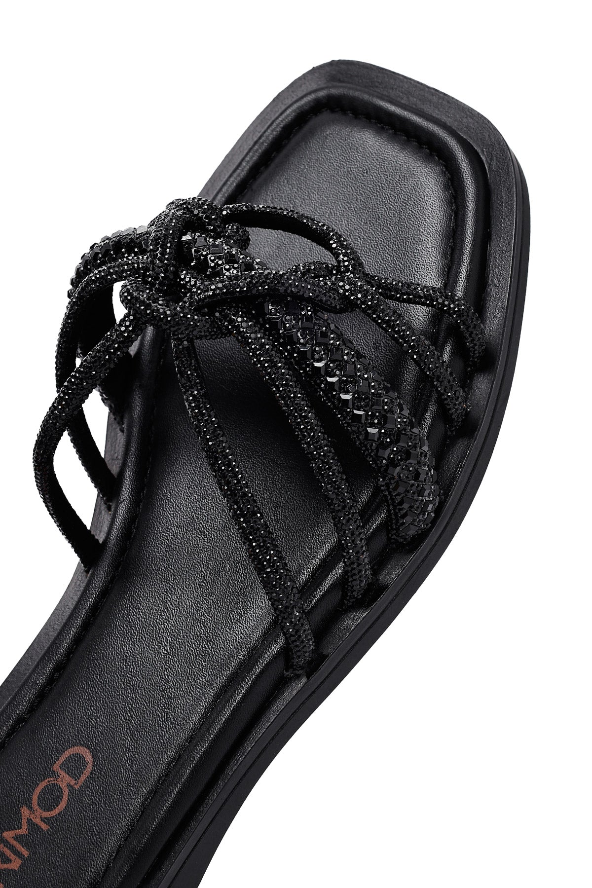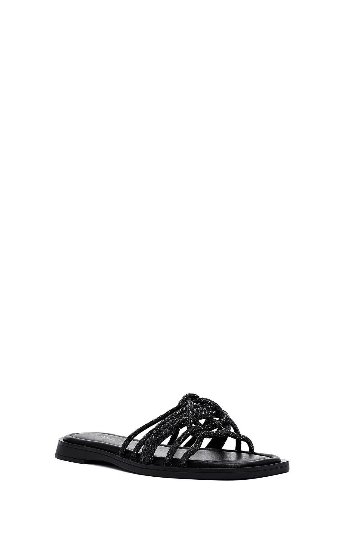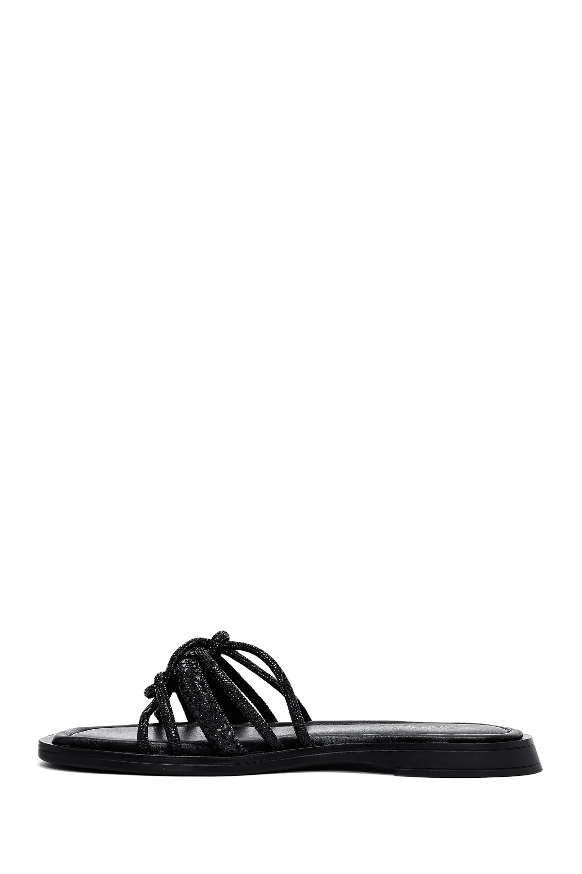 Derimod's elegance and style together Woman Black Stone Leather Show off your style with slippers. Product code: 25SFD1829TS 11