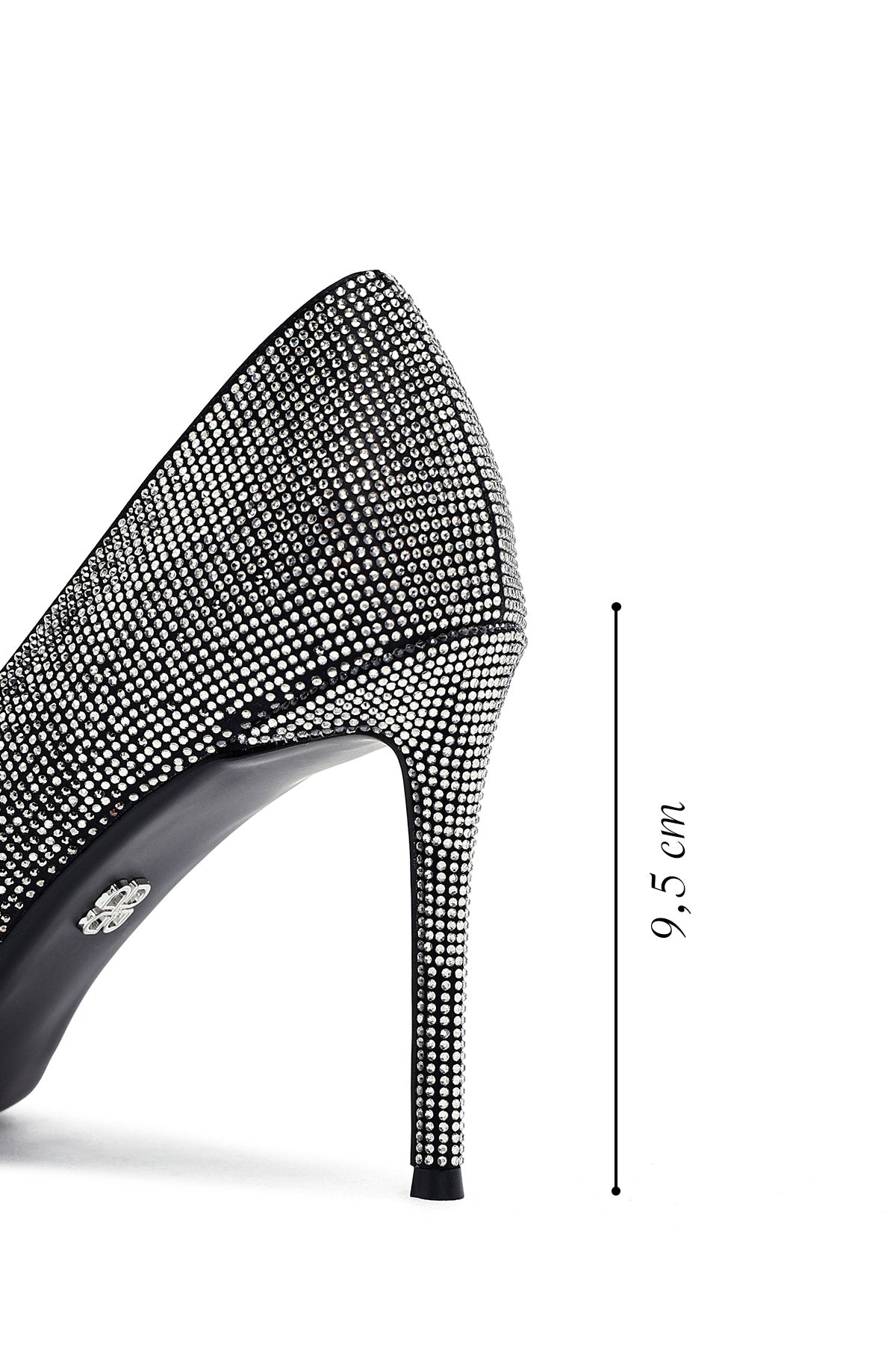 Express your style with the Women's Black Stone Thin Heel Leather Stiletto that combines Derimod's Elegance and Sophistication. Product code: 25WFD4910TS 11