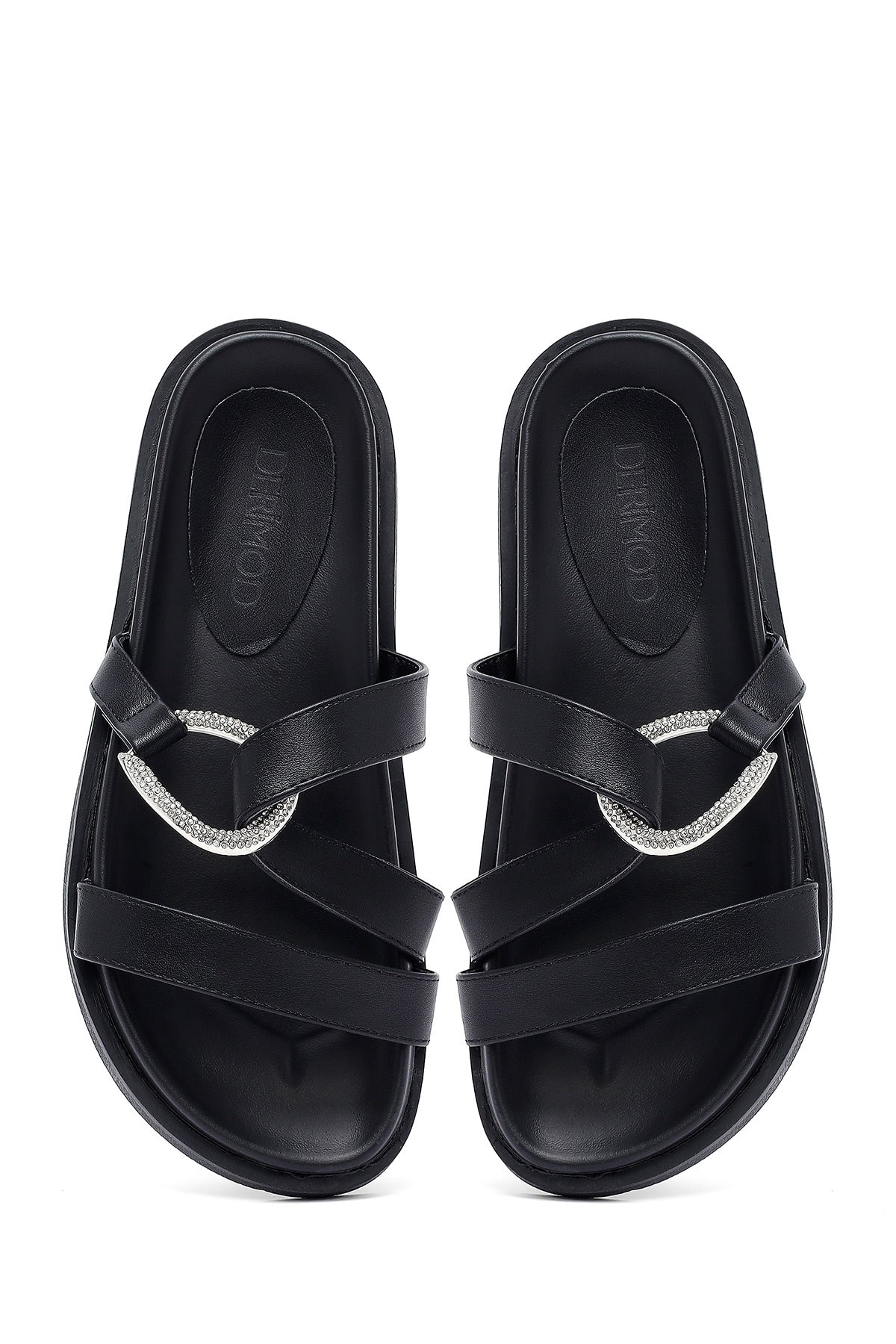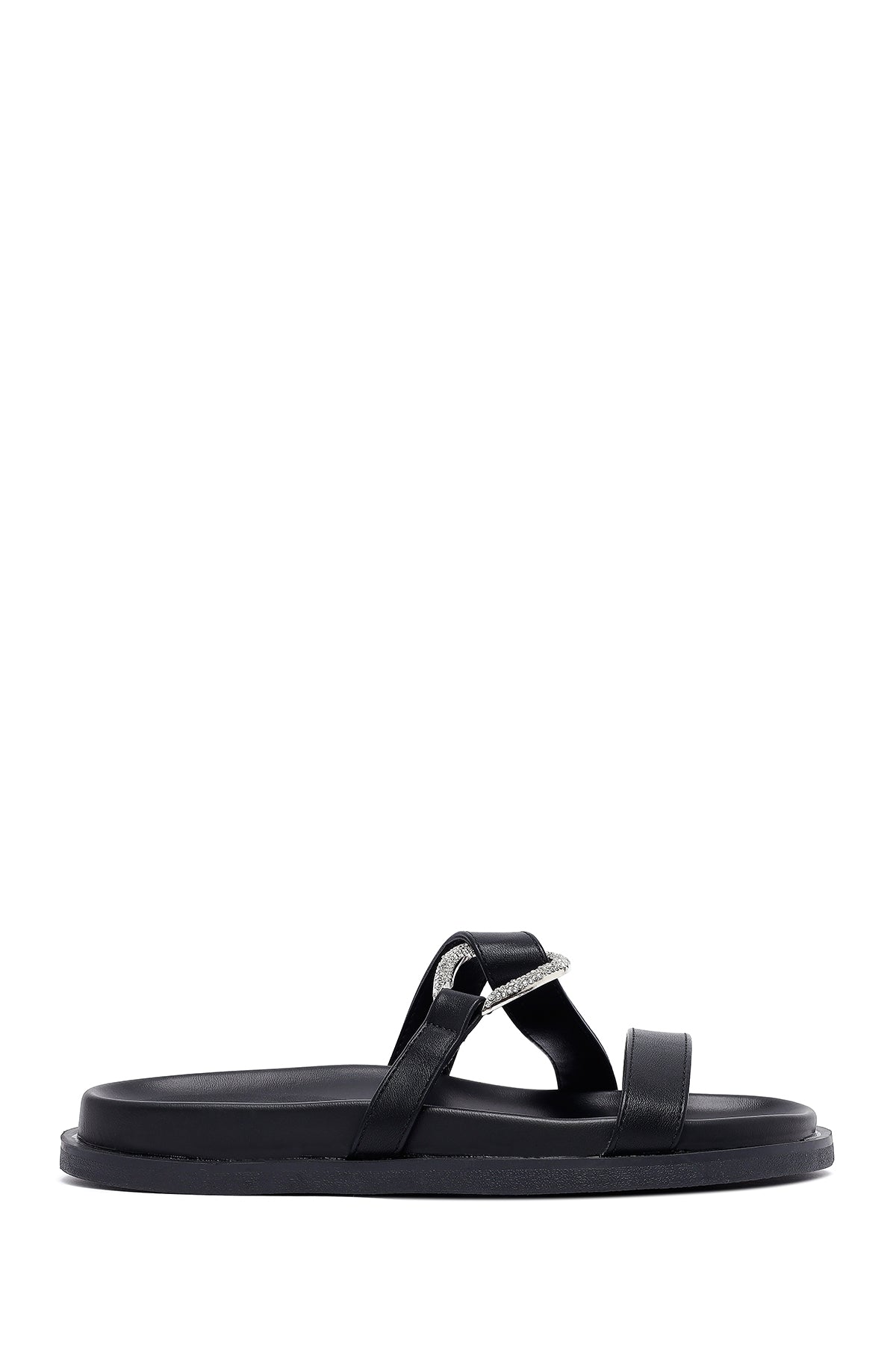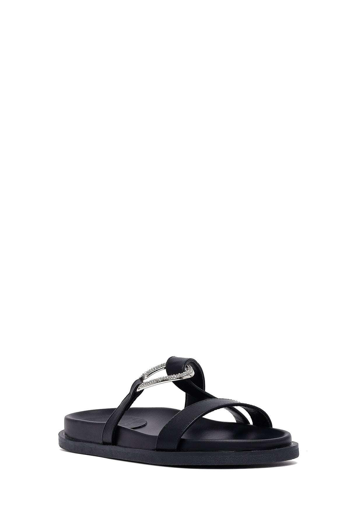 Express your style with the Women's Black Stone Slippers that combine Derimod's Elegance and Chic. Product code: 25SFE451218 11