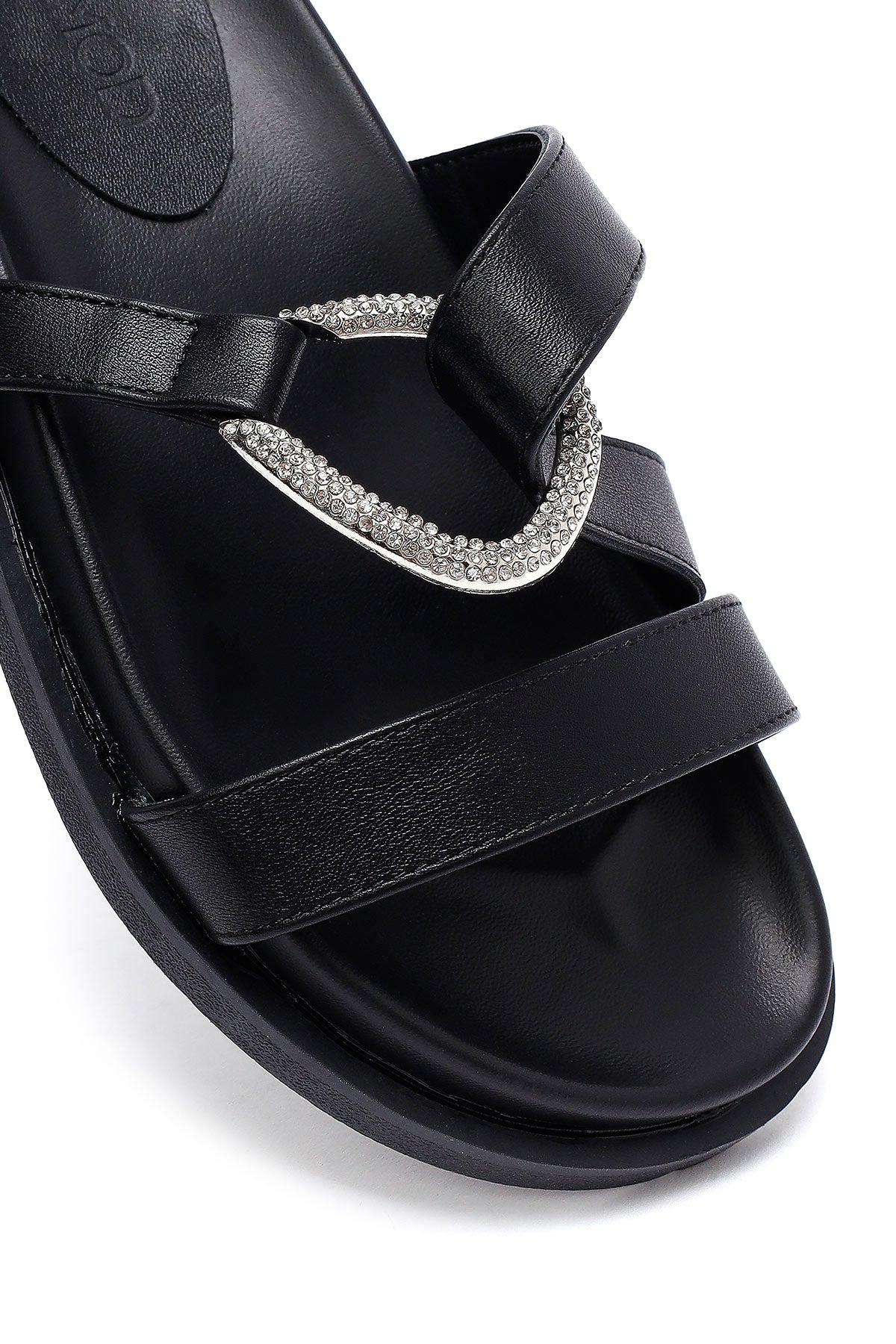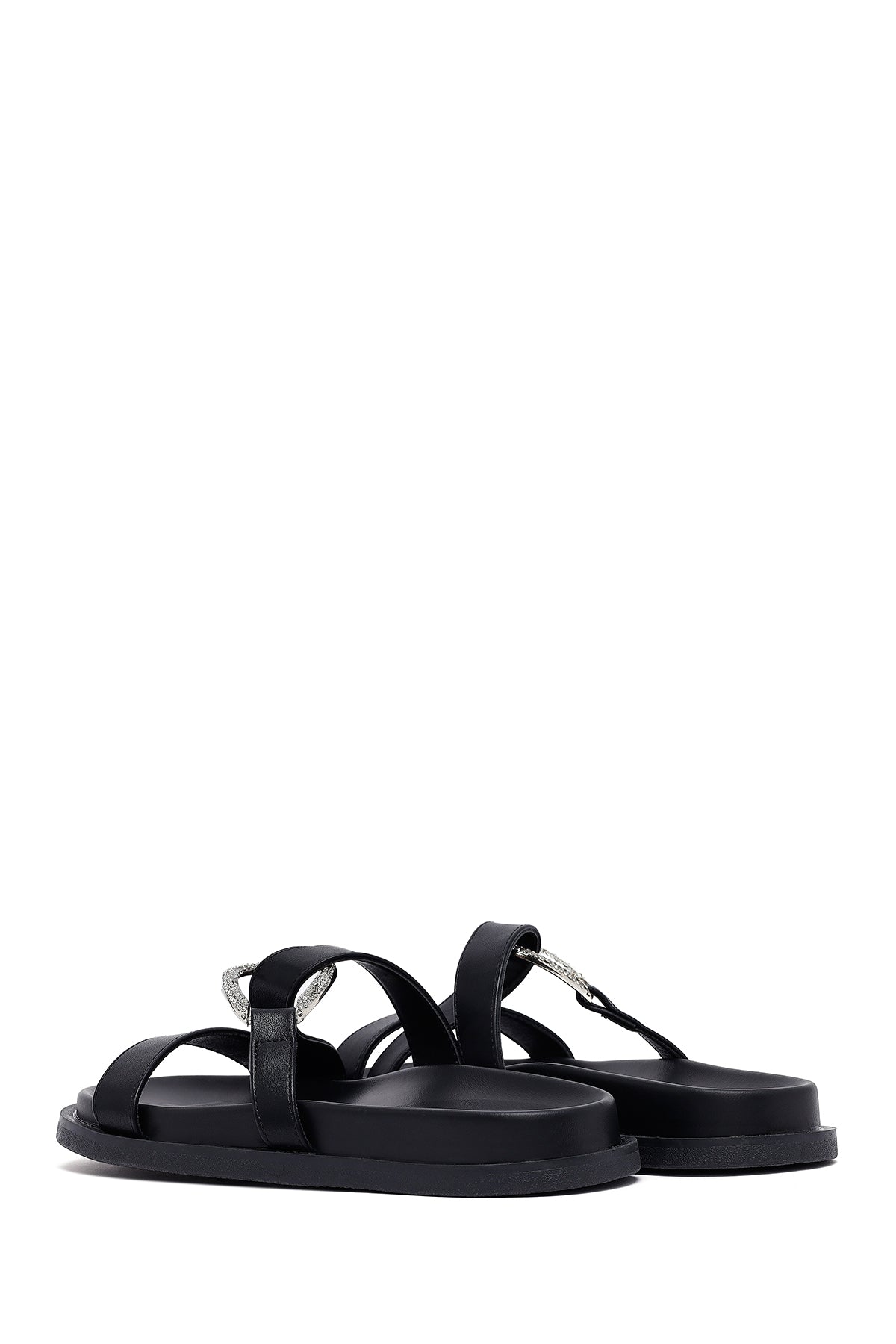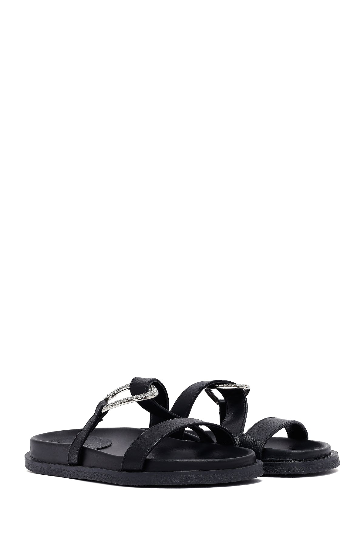 Express your style with the Women's Black Stone Slippers that combine Derimod's Elegance and Chic. Product code: 25SFE451218 11
