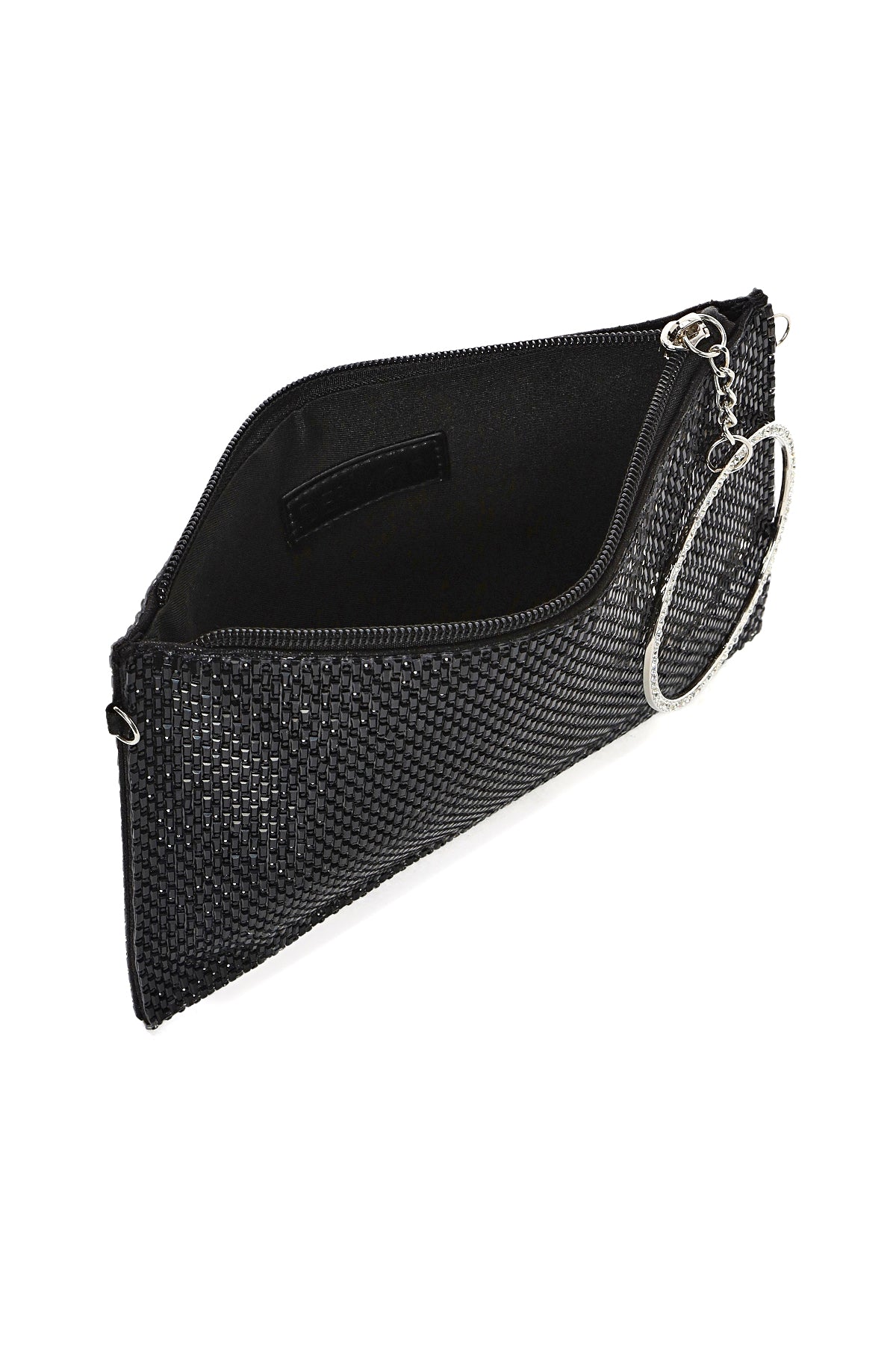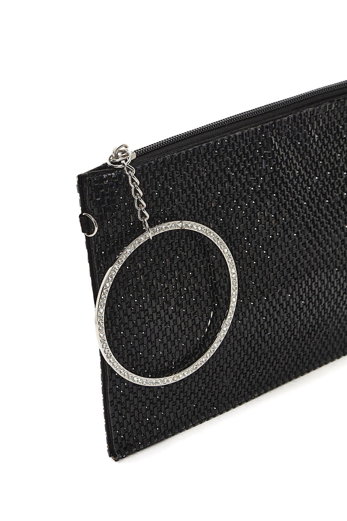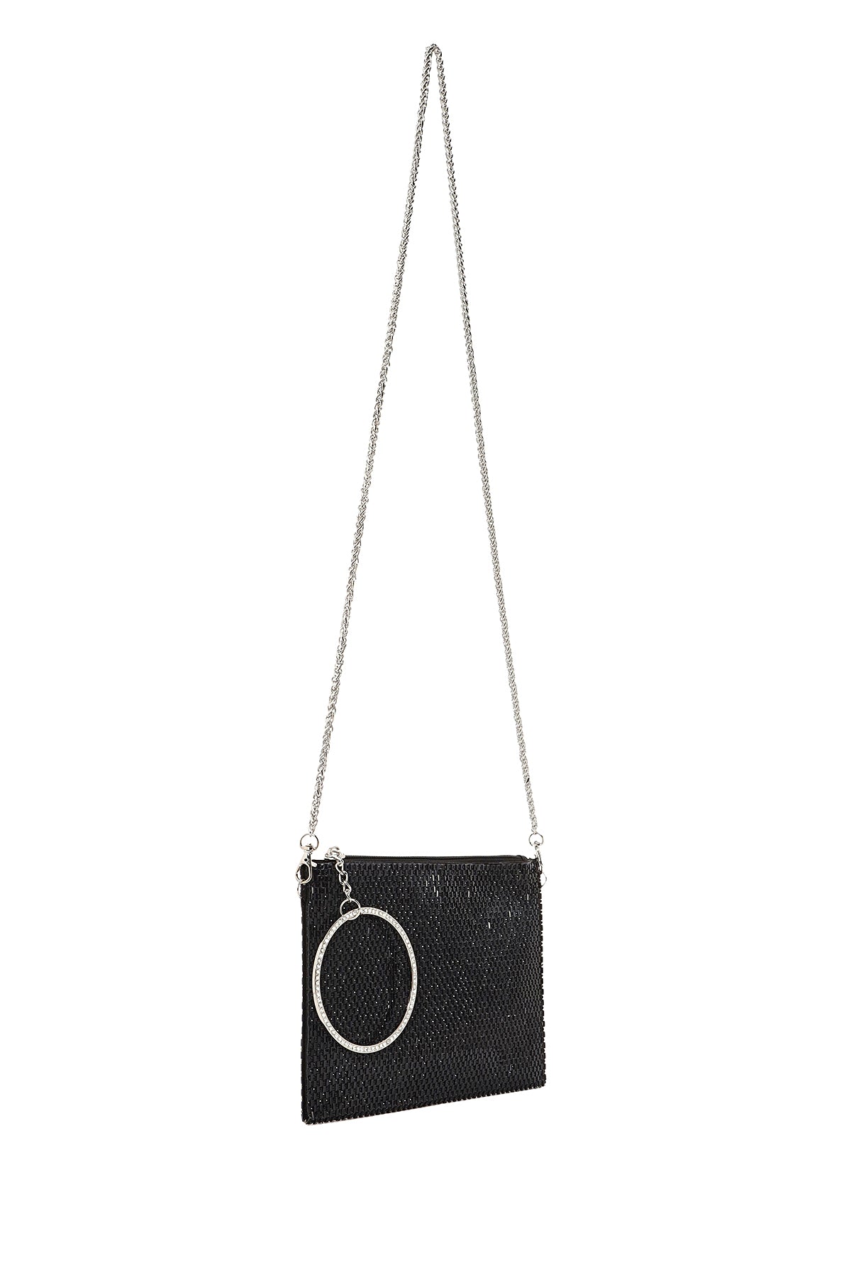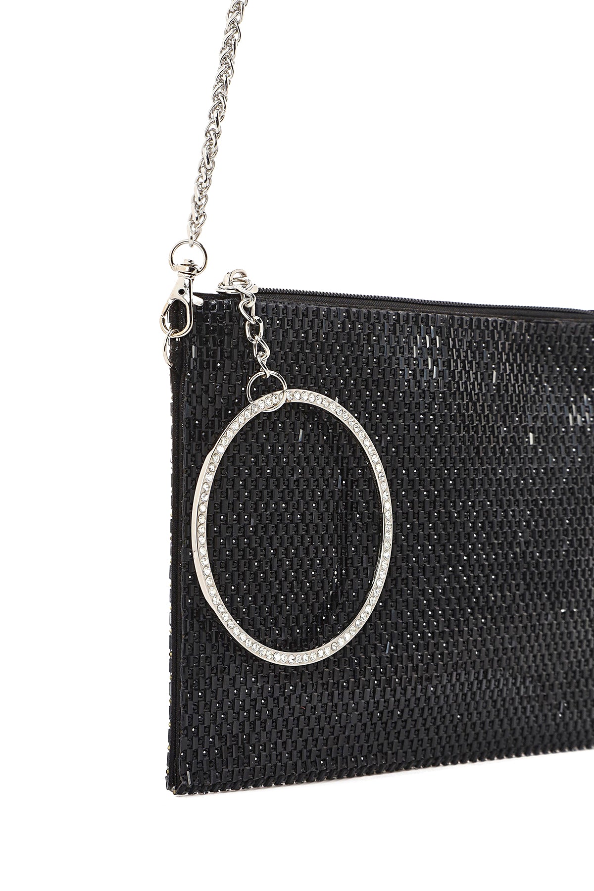 Women's Black Stone Long Chain Strap Evening Clutch Bag