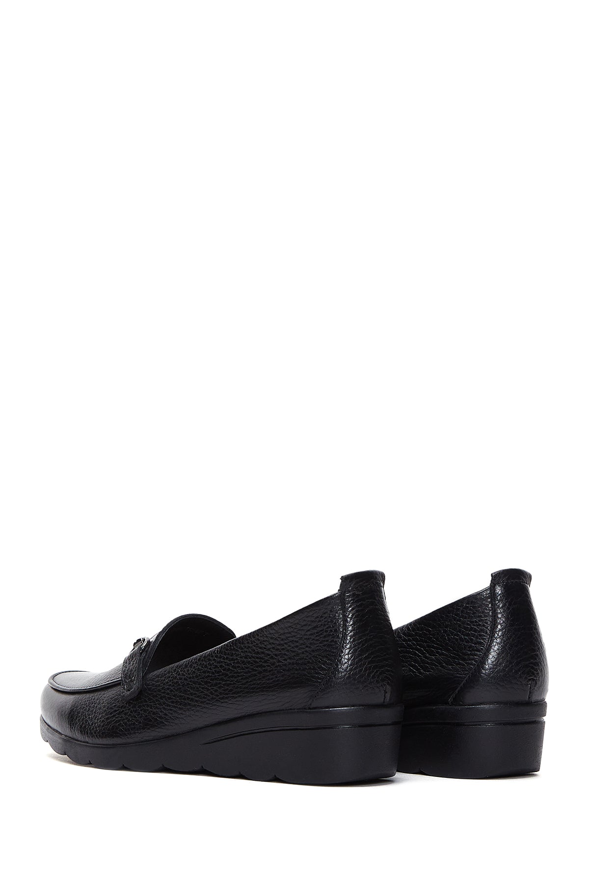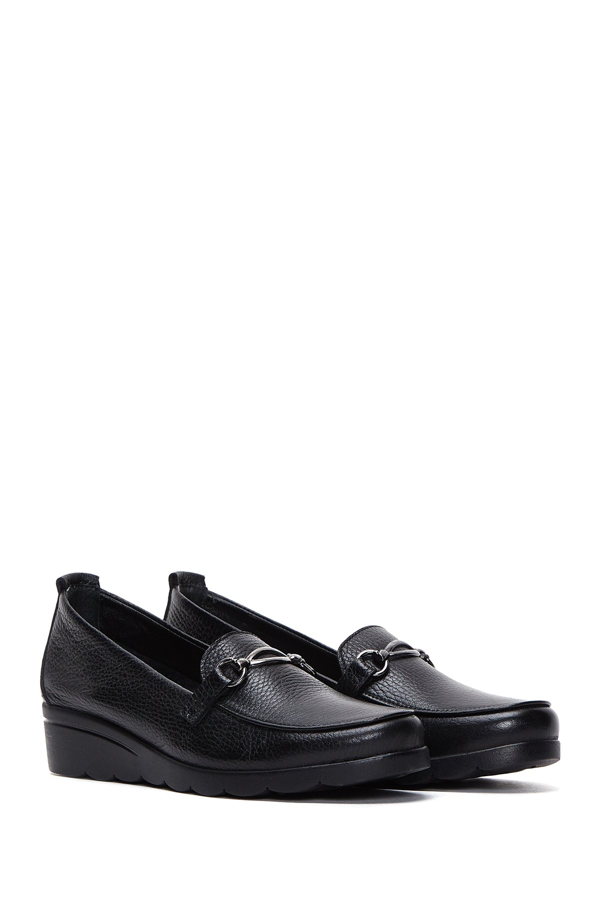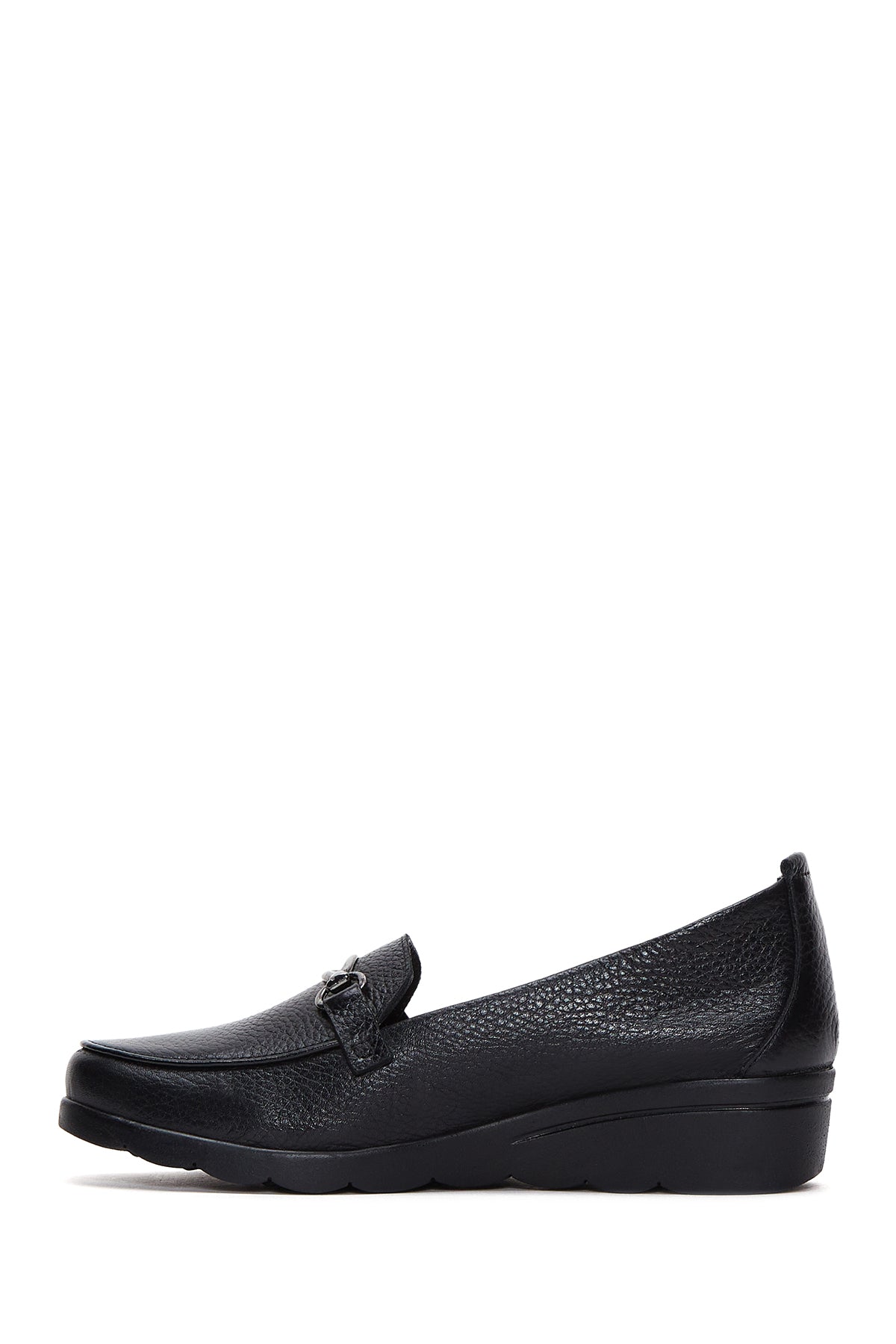 Express your style with the Women's Black Buckle Detailed Wedge Heel Leather Loafer that combines Derimod's Elegance and Sophistication. Product code: 25AFD4122FT 11