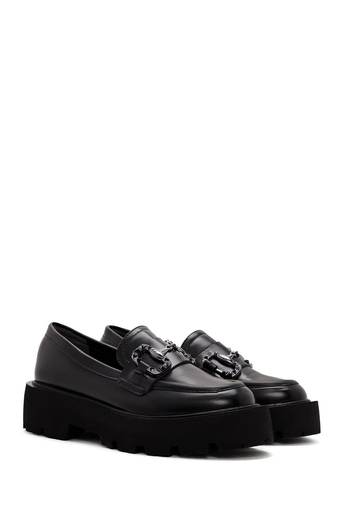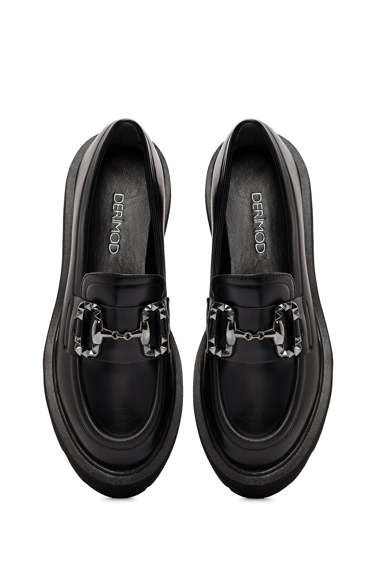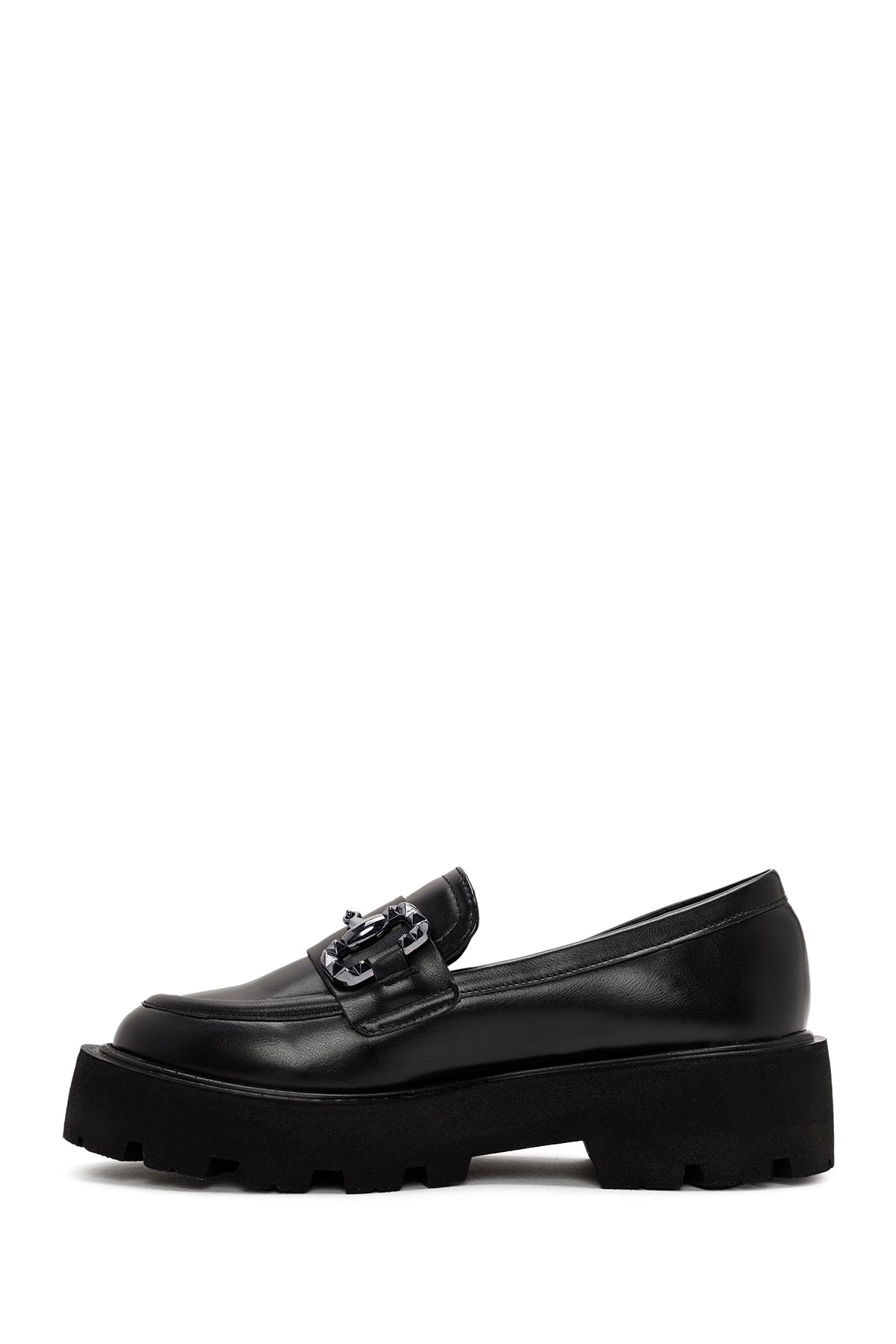 This masculine loafer, produced using Vidala faux leather, is one of the modern and stylish pieces of the winter season. The model, which adds a contemporary touch to the classic look with the buckle detail on it, provides a balanced stance with its 2.5 cm heel height. The design, which offers comfortable use with its synthetic inner lining, provides long-lasting use thanks to its durable outsole. The loafer, which adapts to both daily and stylish combinations with its black color and masculine design, can be preferred in autumn and winter. Areas of use: Ideal for office, daily life, city walks and casual style combinations. Product code: 24WFE400118