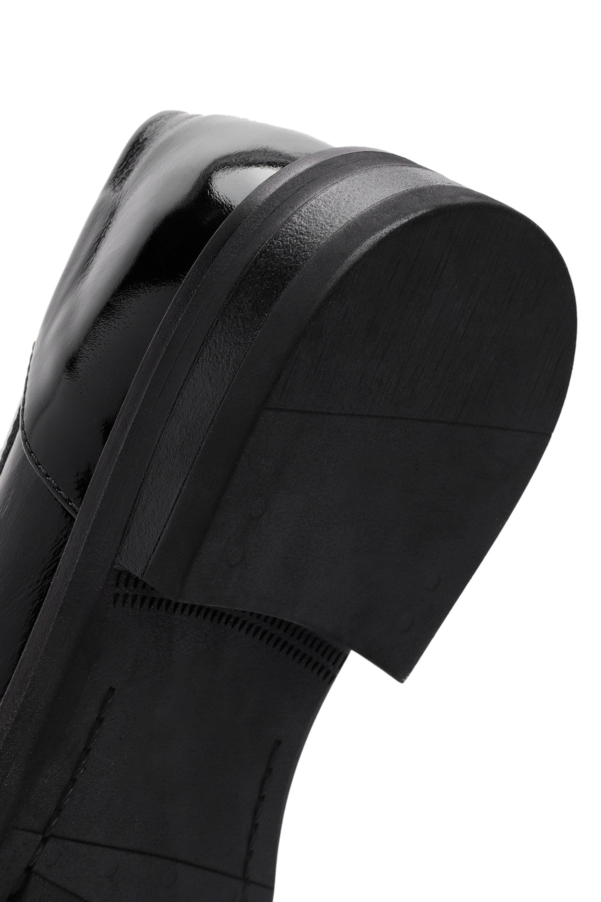 This masculine loafer, made of wrinkled patent leather, is one of the stylish and modern pieces of the winter season. The model, which adds an elegant touch to the classic look with the buckle detail on it, provides a balanced stance with its 2.5 cm heel height. The design, which protects foot health with its leather inner lining, offers long-lasting use thanks to its durable outsole. The loafer, which adapts to both formal and daily combinations with its black color and masculine design, can be preferred in autumn and winter. Areas of use: Ideal for office, business meetings, daily life and stylish invitations. Product code: 24WFD511716