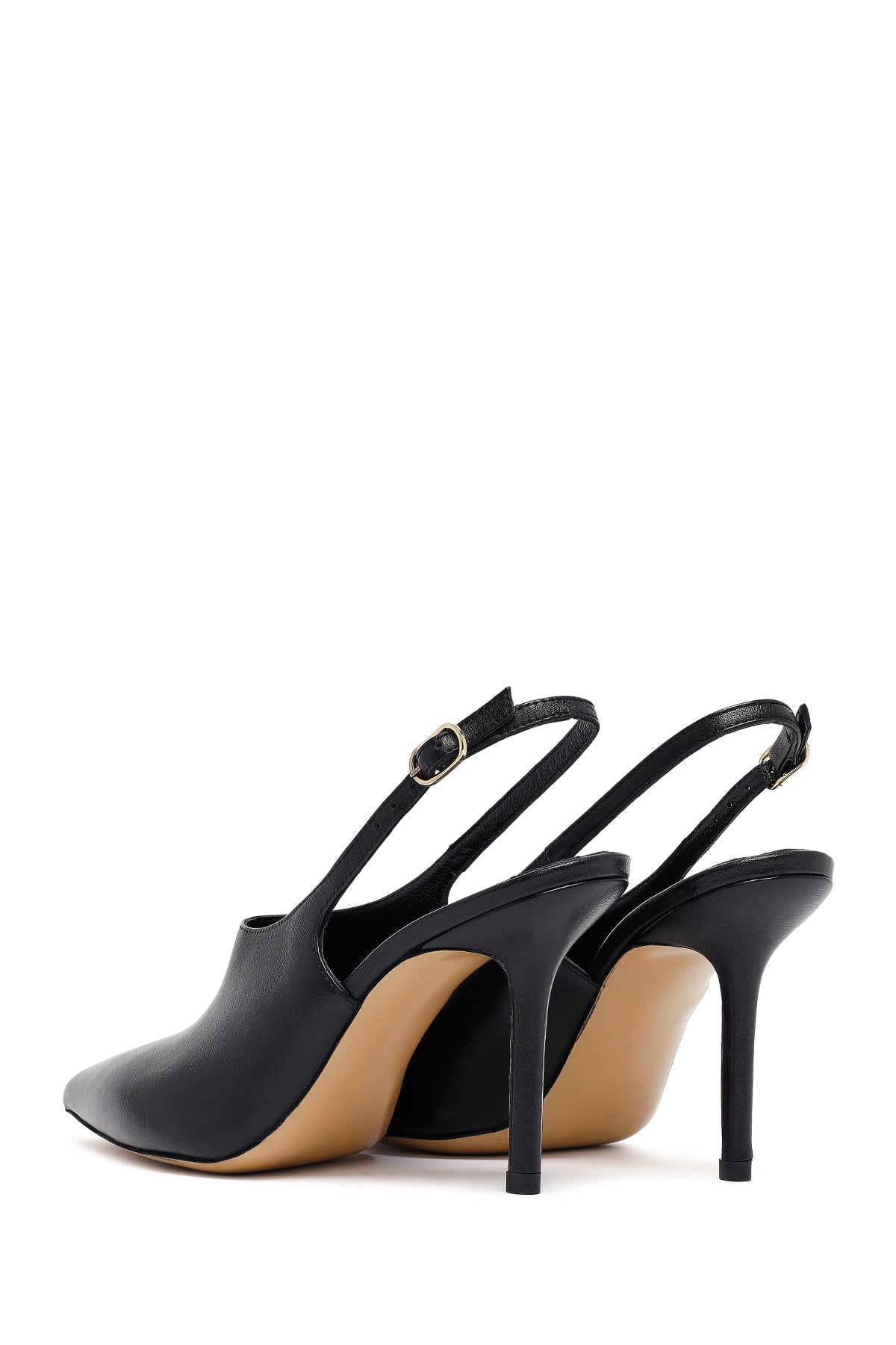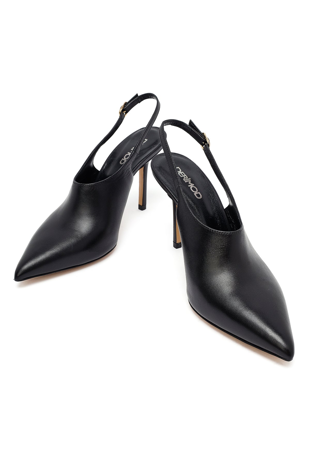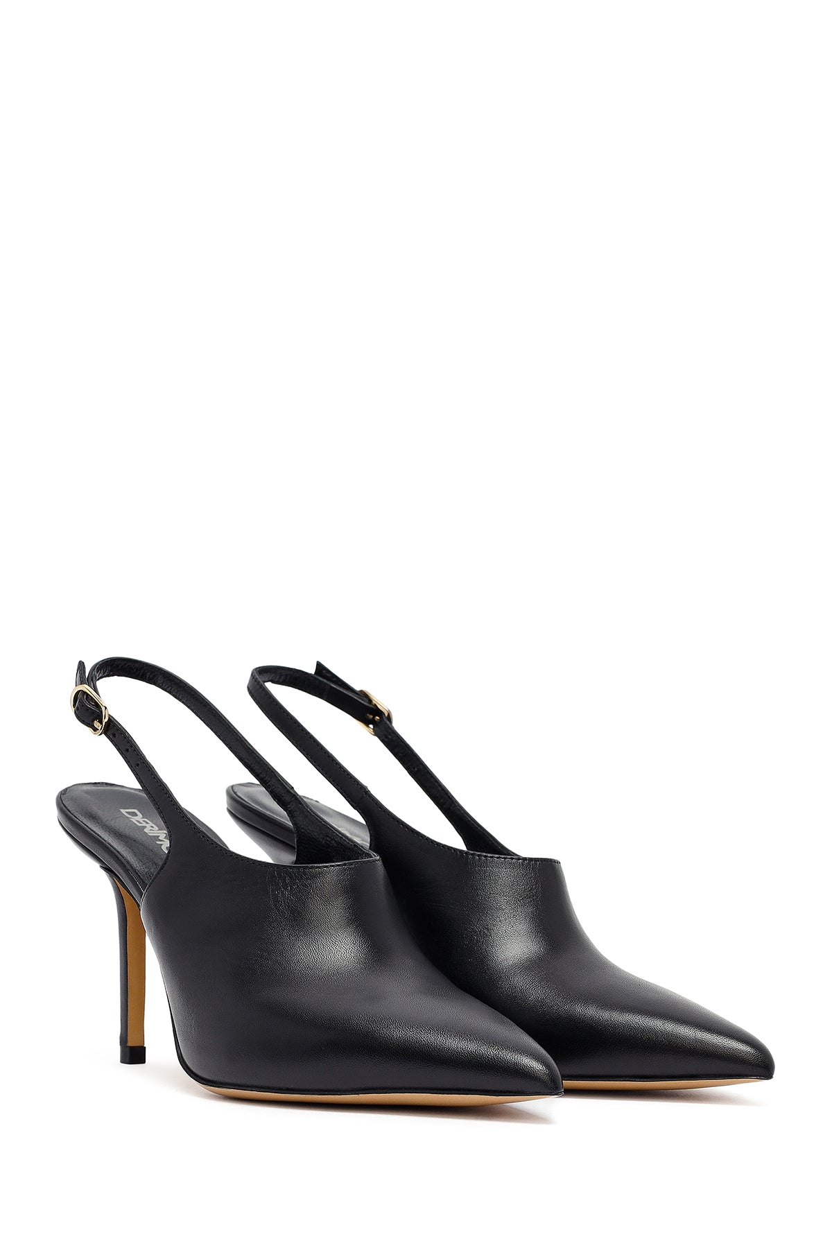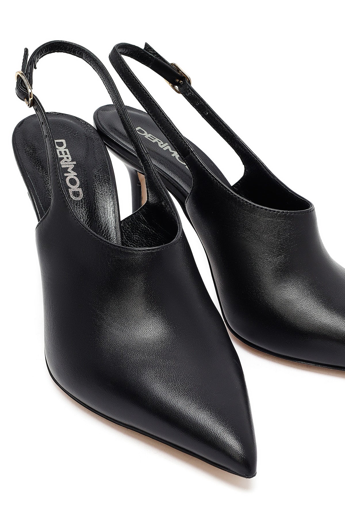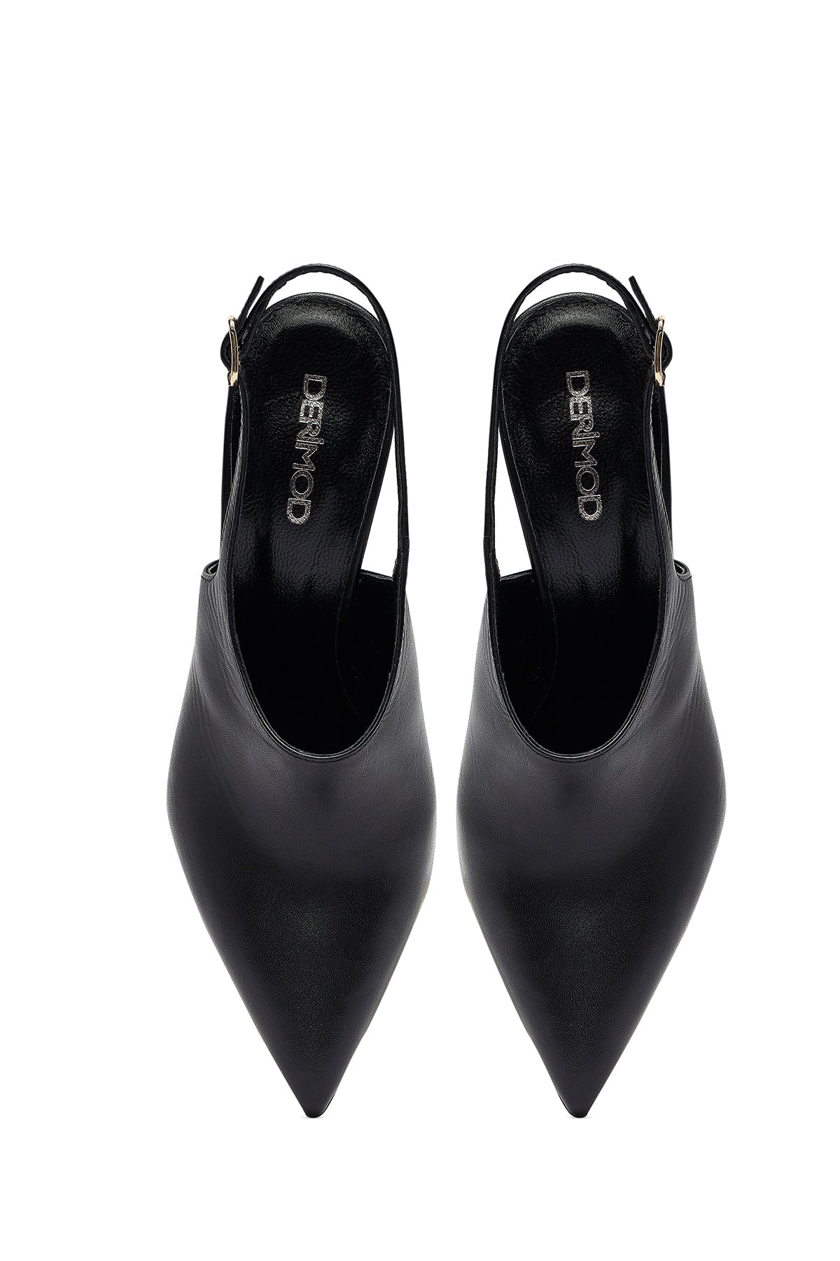 Express your style with the Women's Black Buckled Open Back High Thin Heel Leather Shoe that combines Derimod's Elegance and Sophistication. Product code: 25AFD121418 11
