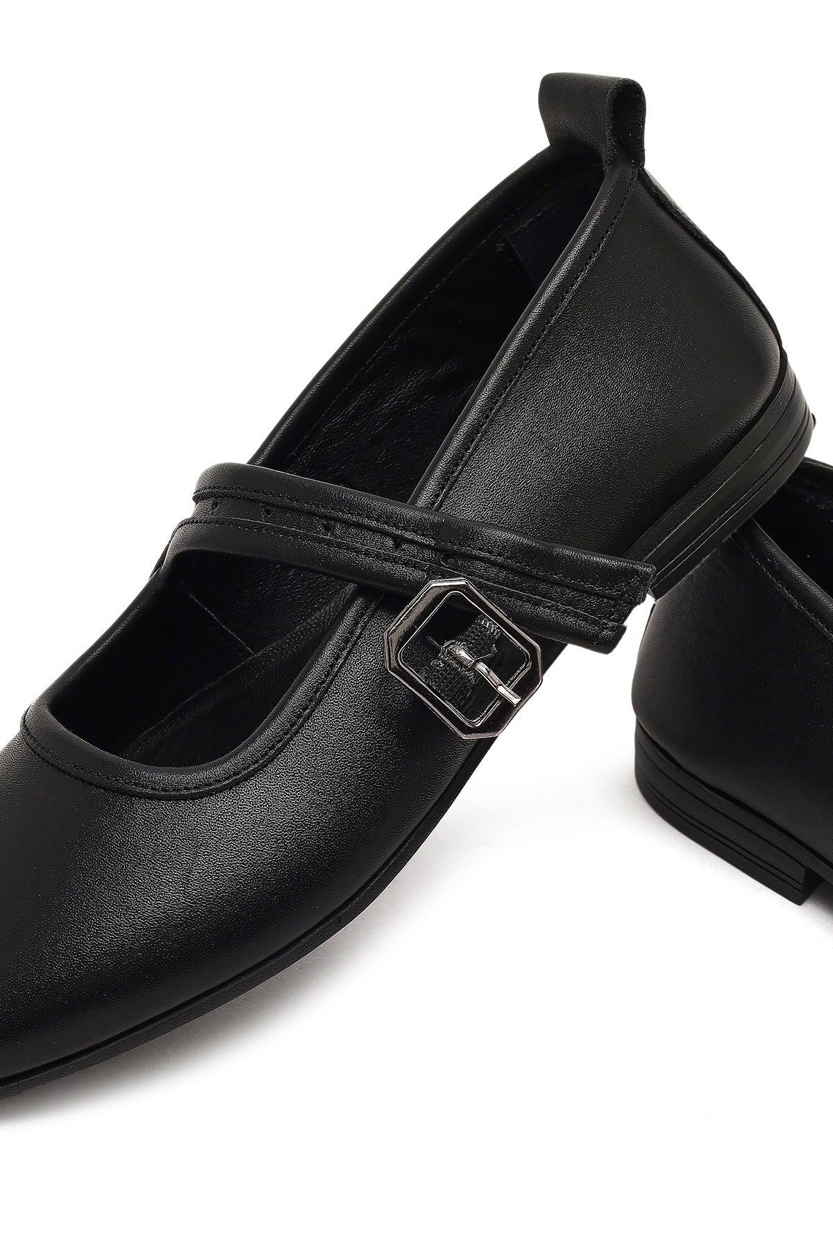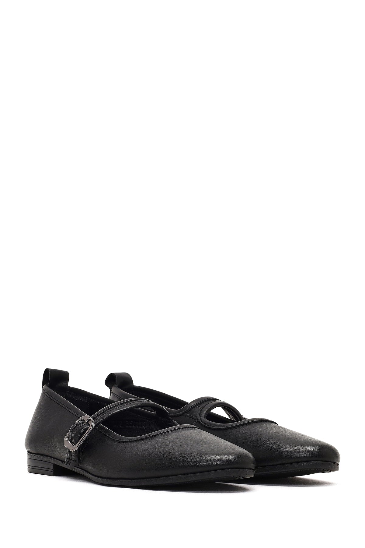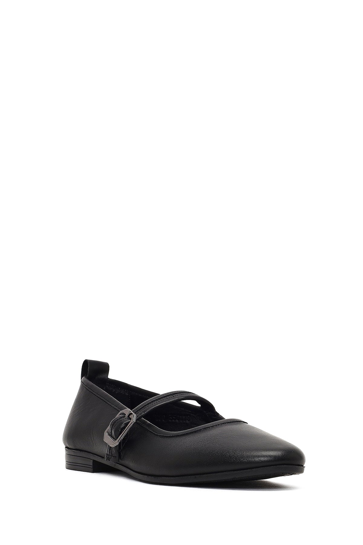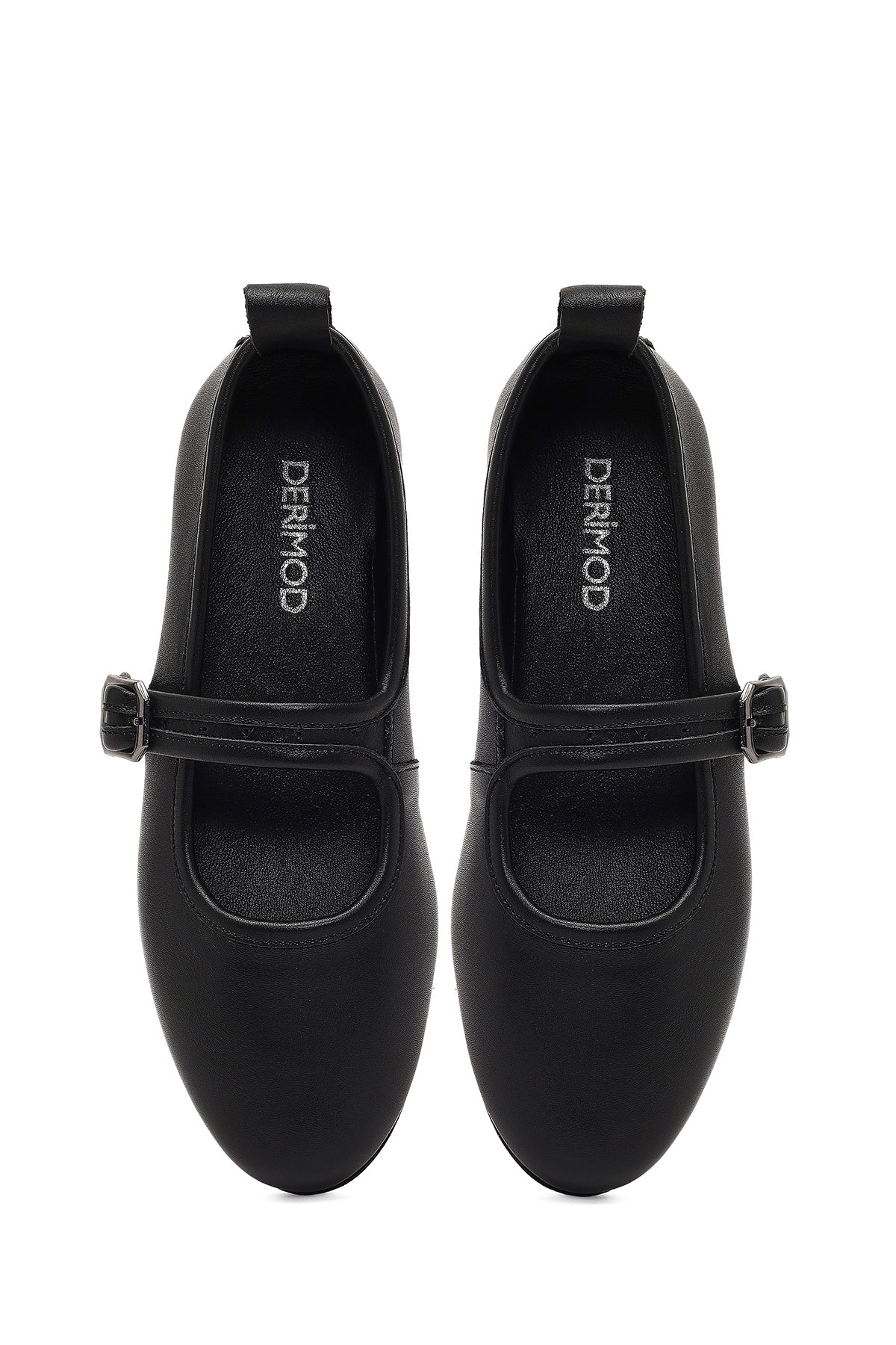 Express your style with the Women's Black Buckled Leather Ballet Flat that combines Derimod's Elegance and Sophistication. Product code: 25WFD350118 11