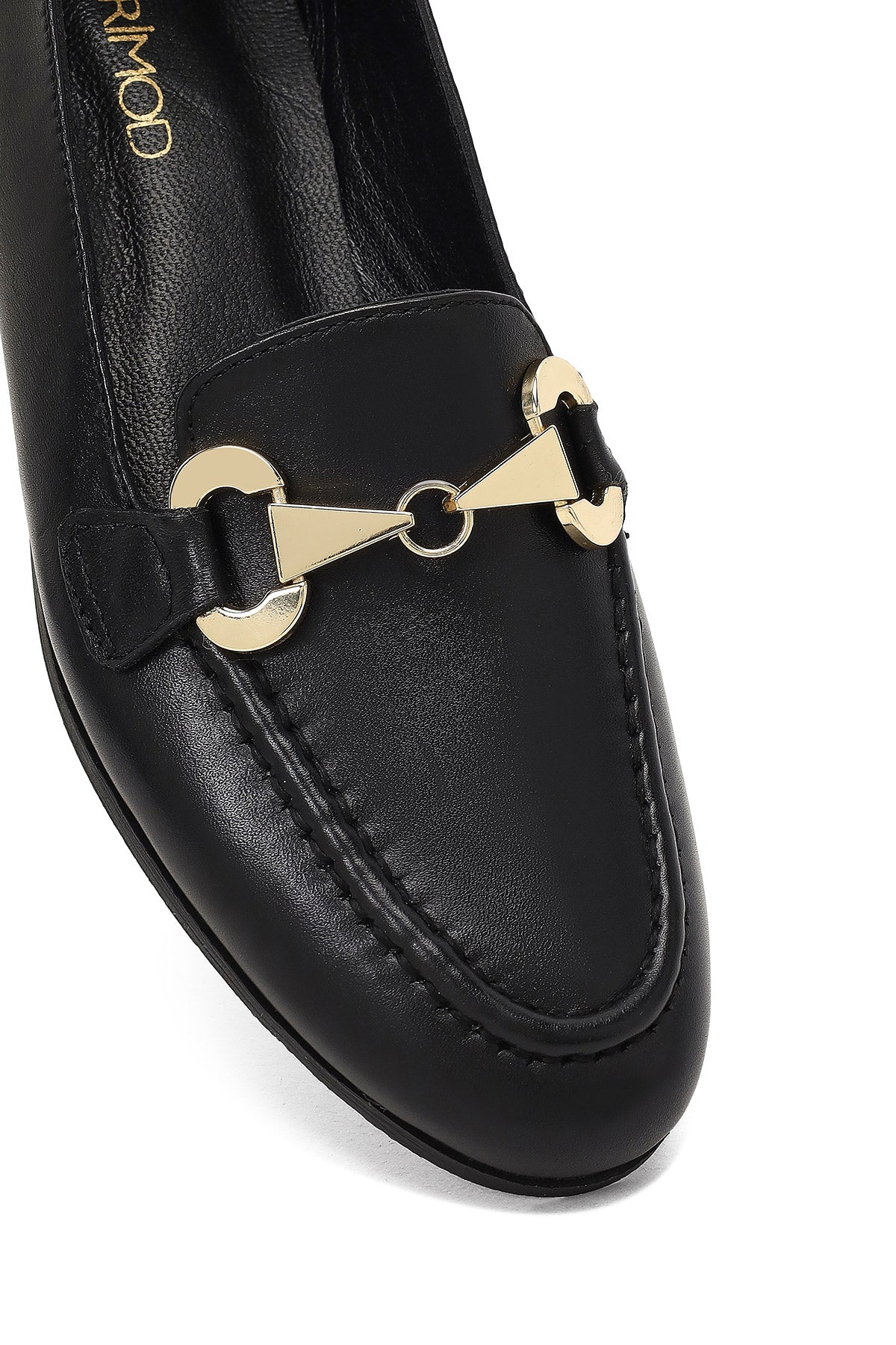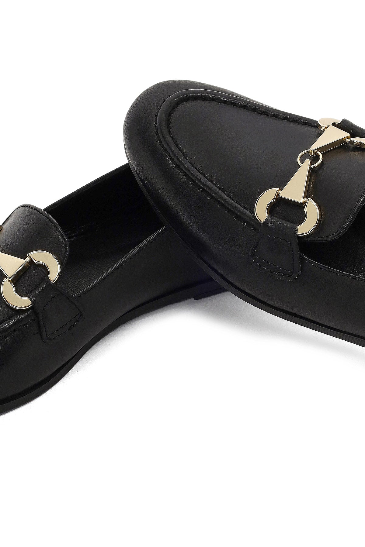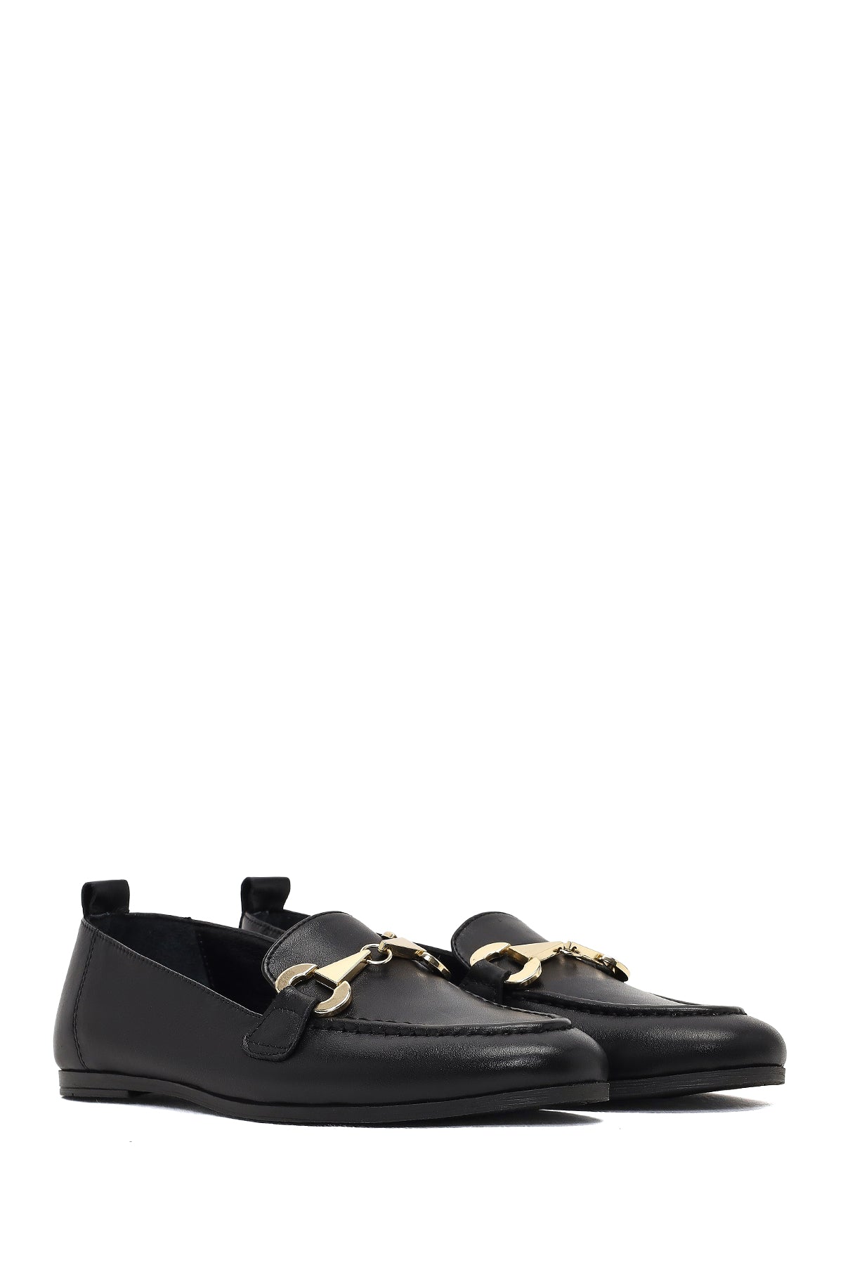 The elegant loafer model of the autumn collection draws attention with its black studded leather upper and gold-colored horsebit buckle detail. The use of textile lining allows the foot to breathe, while the 3 cm high sole offers a stylish appearance. Suitable for daily use with its modern lines and timeless design. Especially in autumn months, it perfectly matches both casual and elegant clothing combinations. Usage areas: Ideal for office environment, daily activities, and city tours. Product code: 25AFD204418
