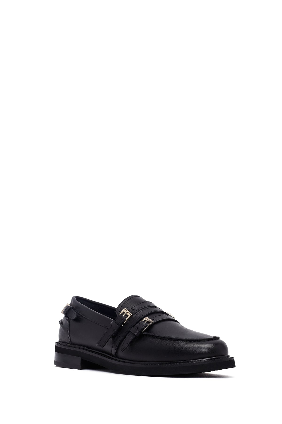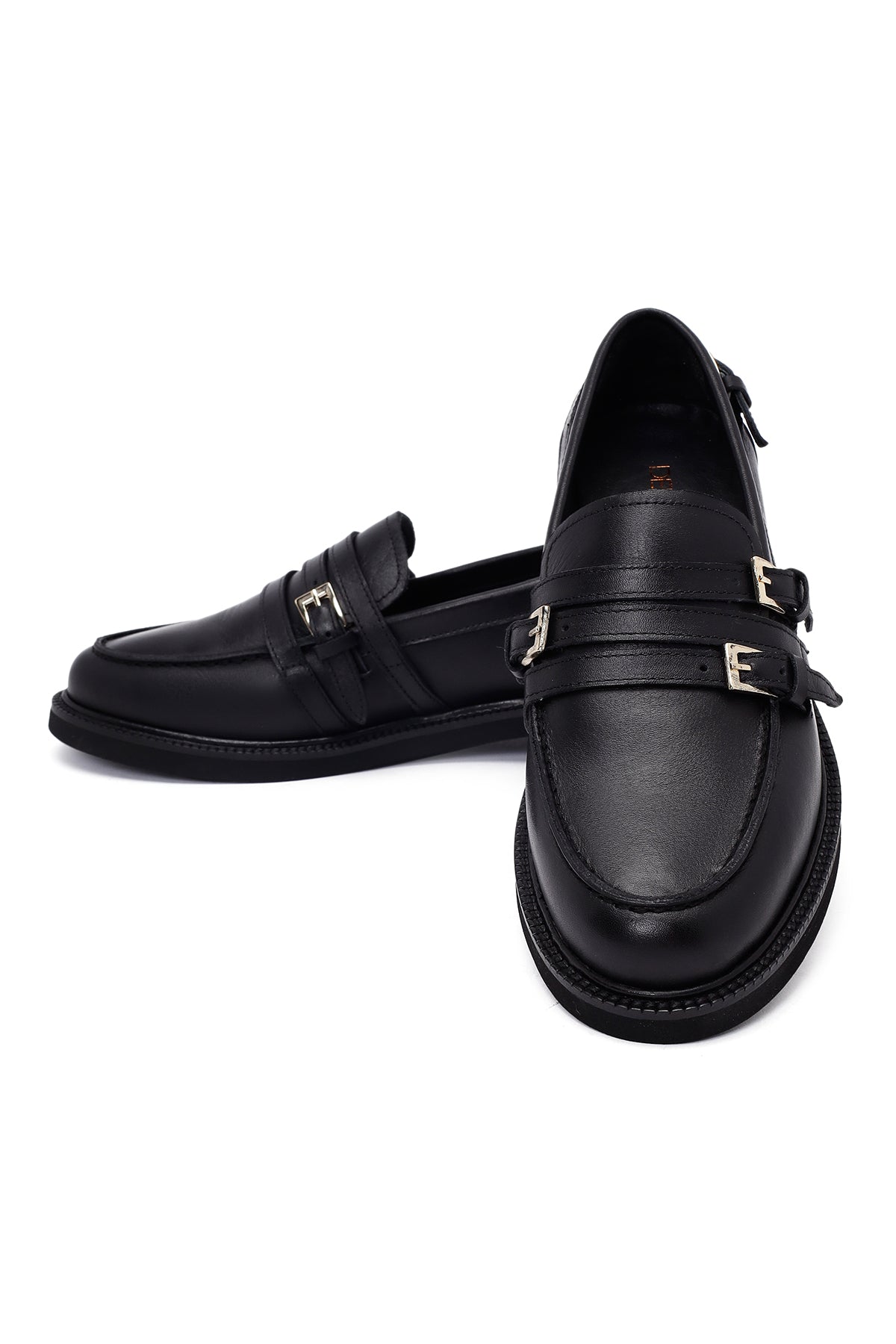 From Derimod's autumn collection, the black masculine loafer model designed using stitched leather offers a design suitable for daily use with its 1.5 cm high sole. The model, which attracts attention with its metal buckle detail and masculine lines, keeps your foot comfortable thanks to its leather inner lining. With its classic and timeless design, it offers a wide range of use from office outfits to daily wear. It can be used at any time of the day in spring and autumn seasons. Product code: 25AFD260118