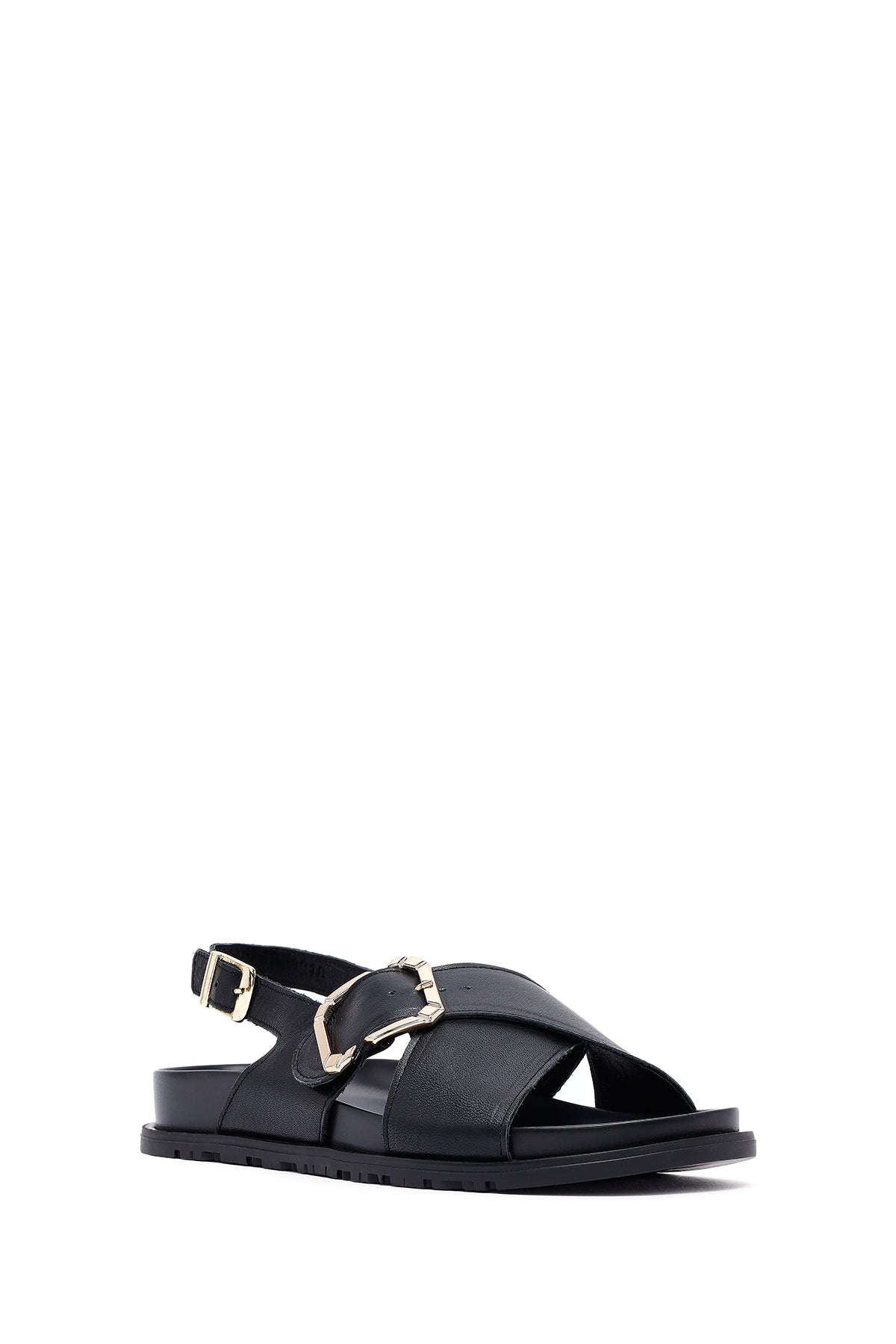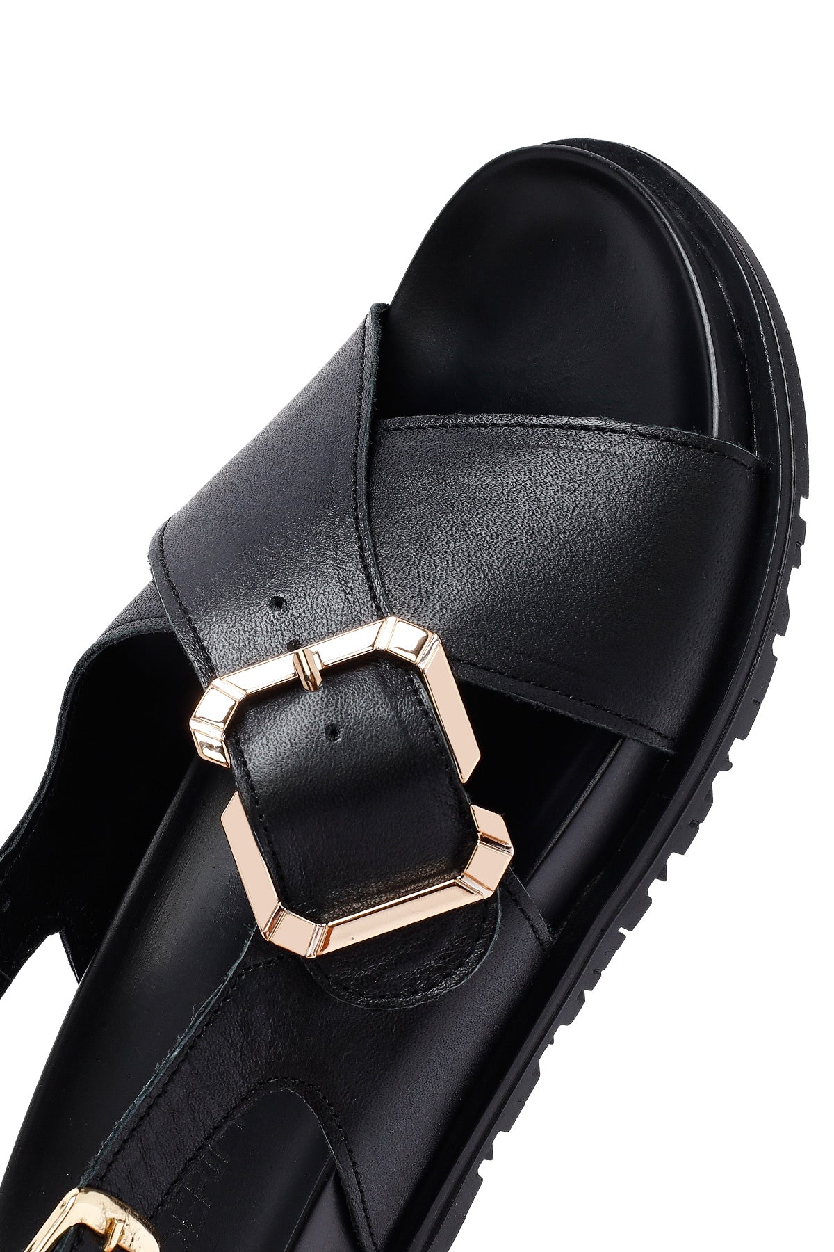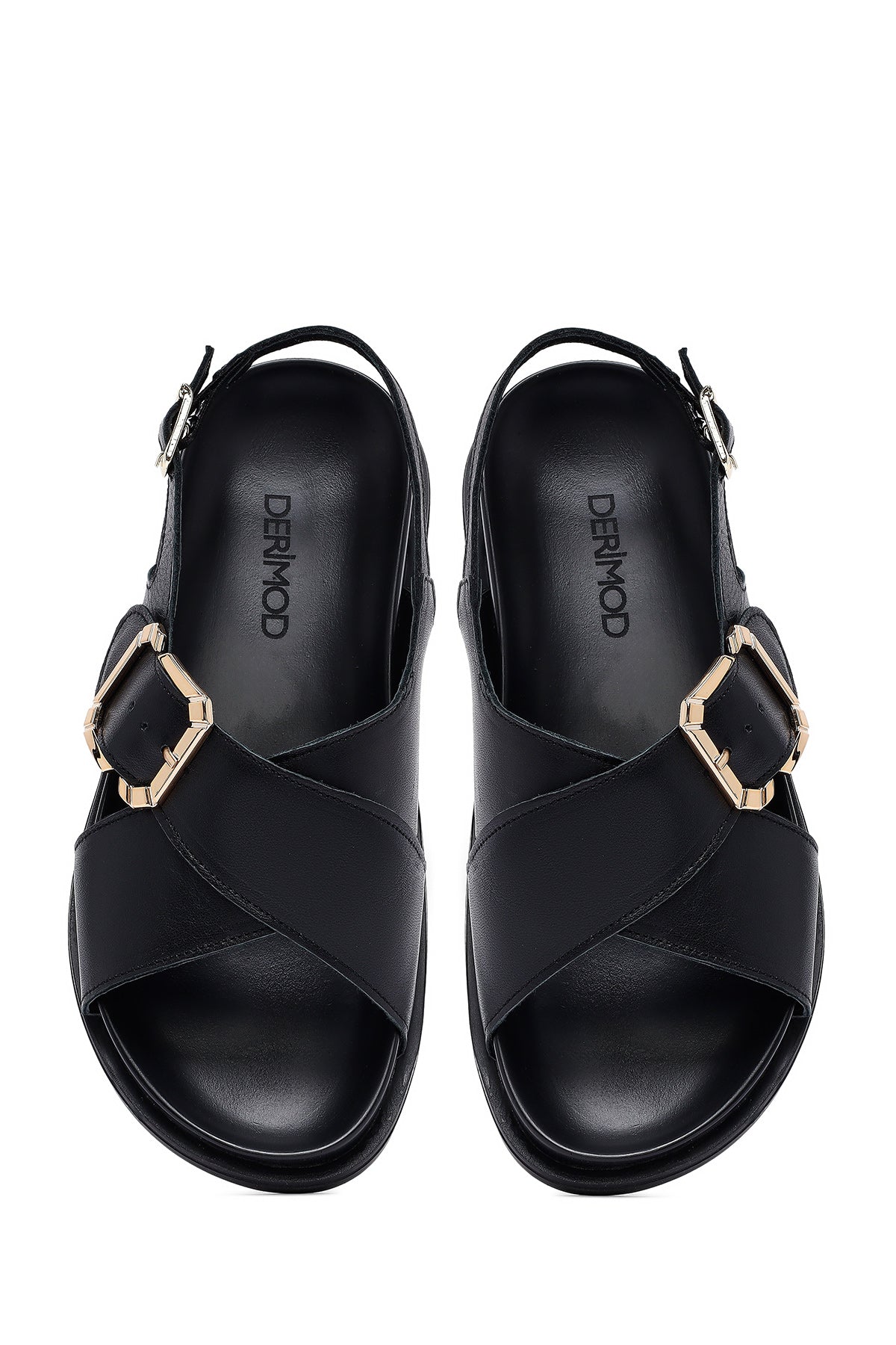 Derimod's elegance and style together Woman Black Buckle Leather Show off your style with sandals. Product code: 25SFD350918 11