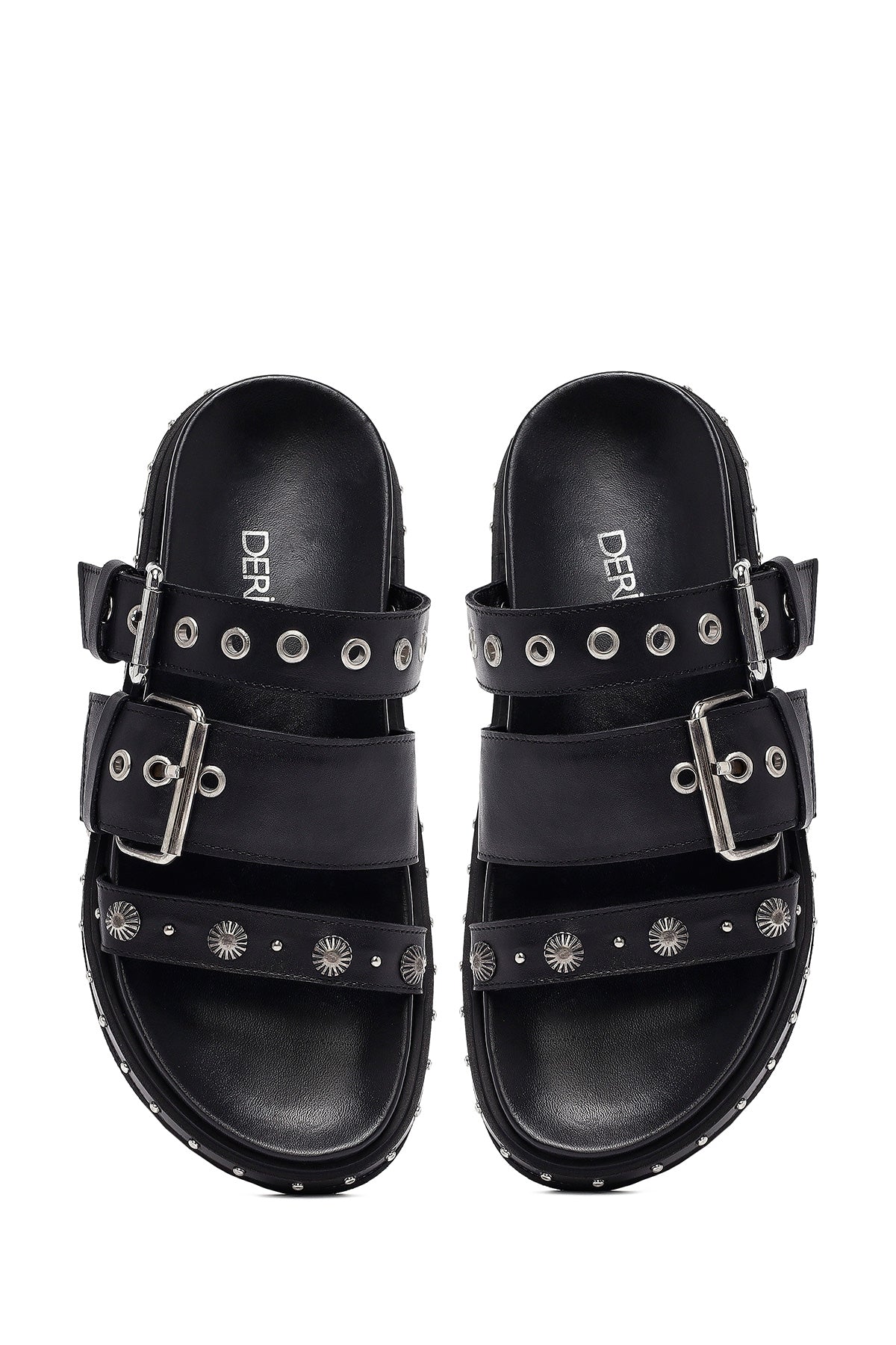 Express your style with the Women's Black Buckled Leather Slippers that combine Derimod's Elegance and Sophistication. Product code: 25SFD270018 11