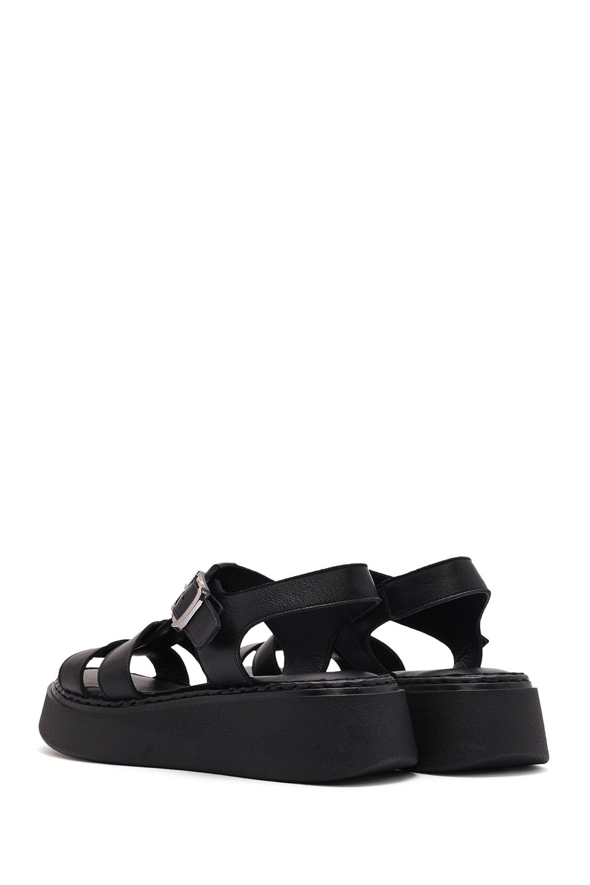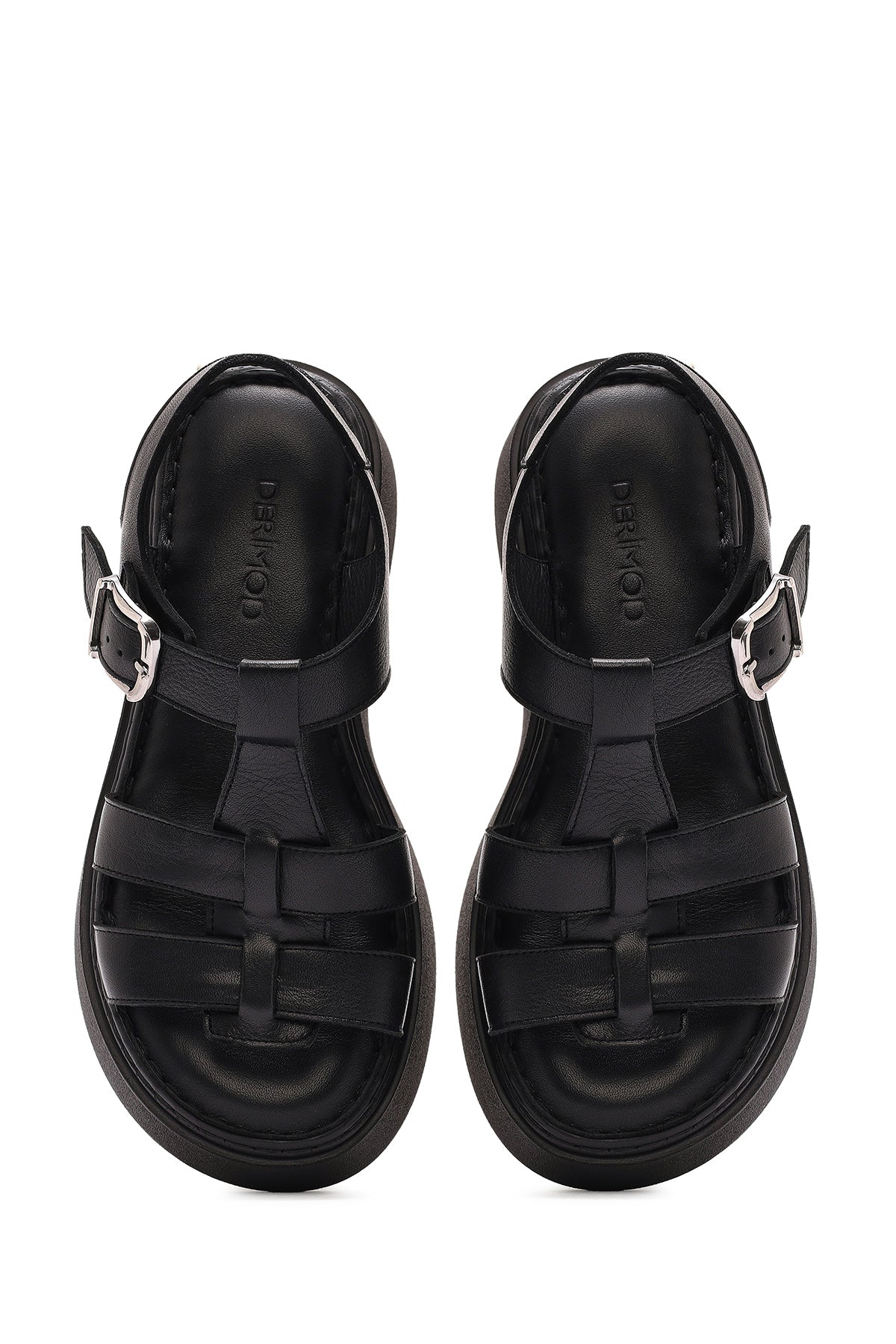 Show off your style with Derimod's Women's Black Buckled Thick-Soled Leather Comfort Sandals, which offer elegance and style together. Product code: 25SFD343018 11