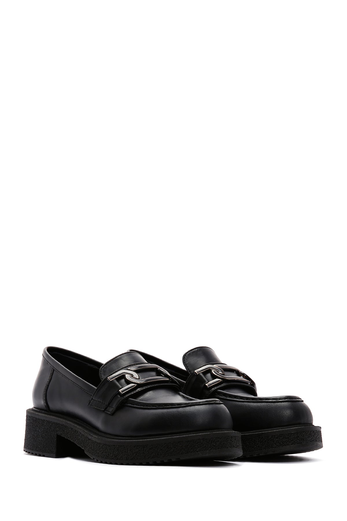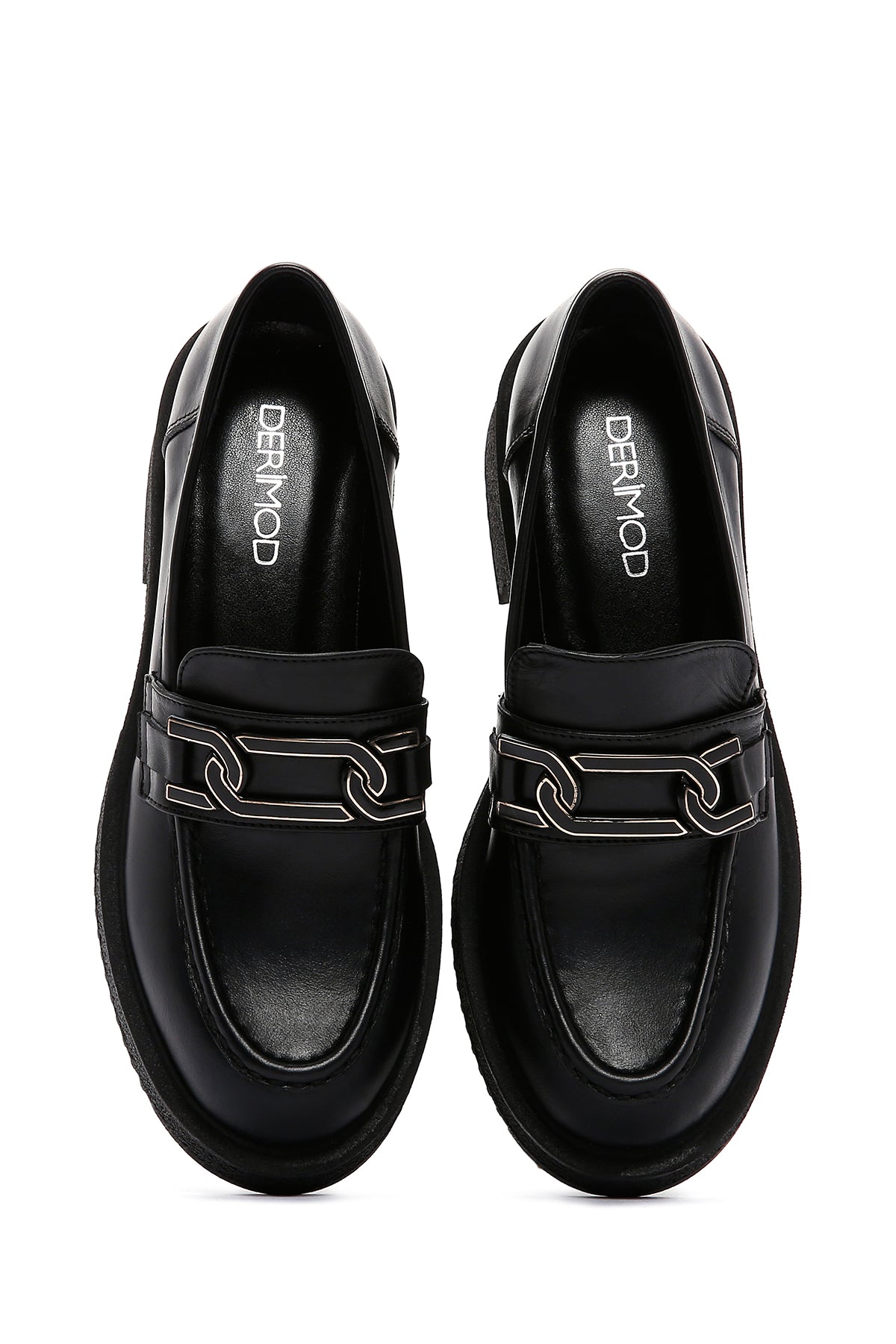 Express your style with the Women's Black Buckled Thick-Soled Leather Masculine Loafer that combines Derimod's elegance and sophistication. Product code: 25AFD183918 11