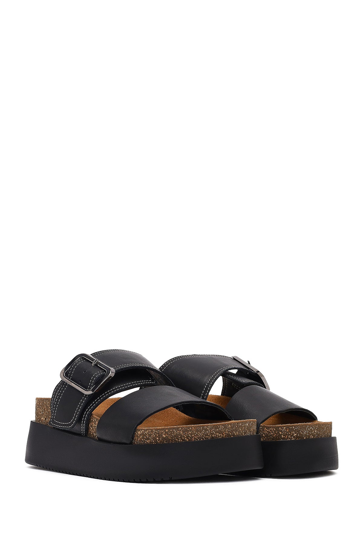Express your style with the Women's Black Buckled Thick-Soled Leather Slippers that combine Derimod's Elegance and Sophistication. Product code: 25SFD132918 11