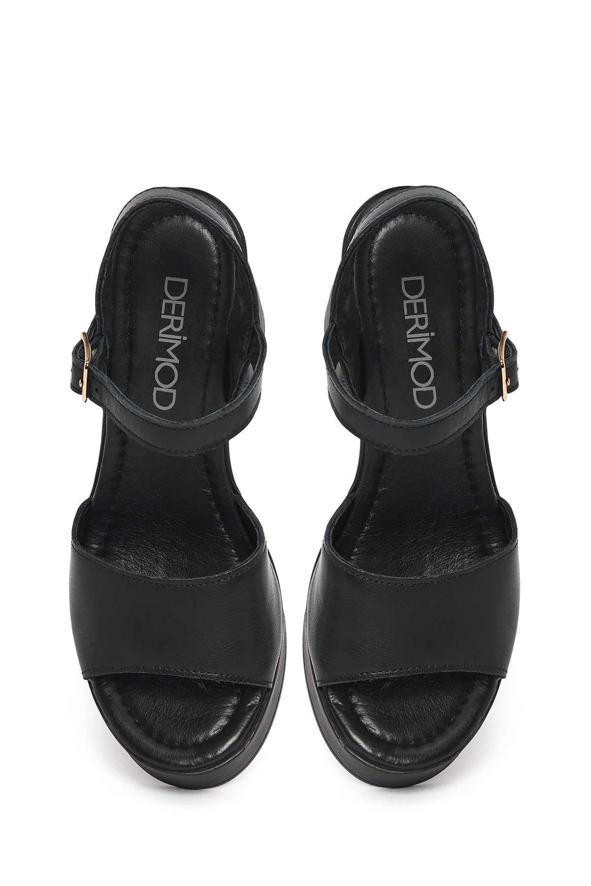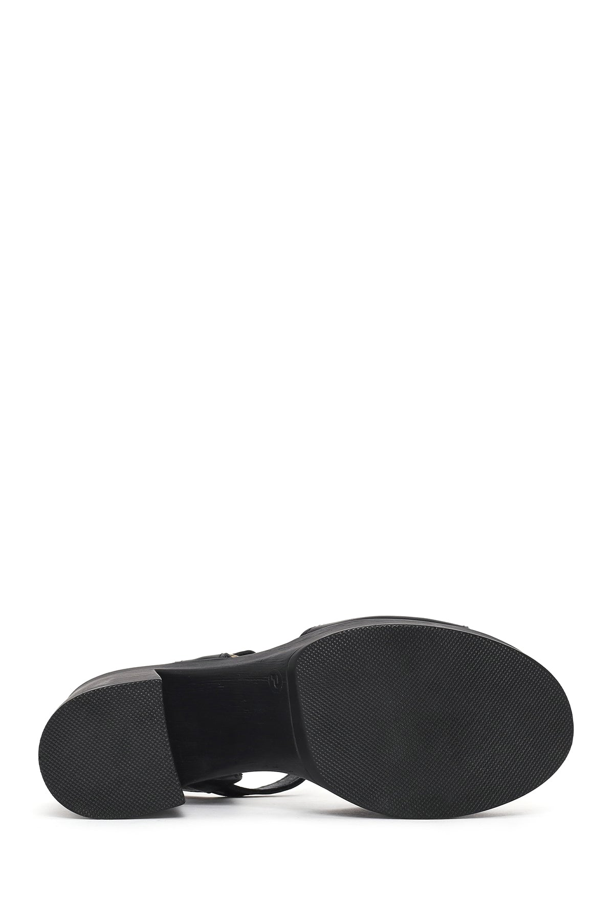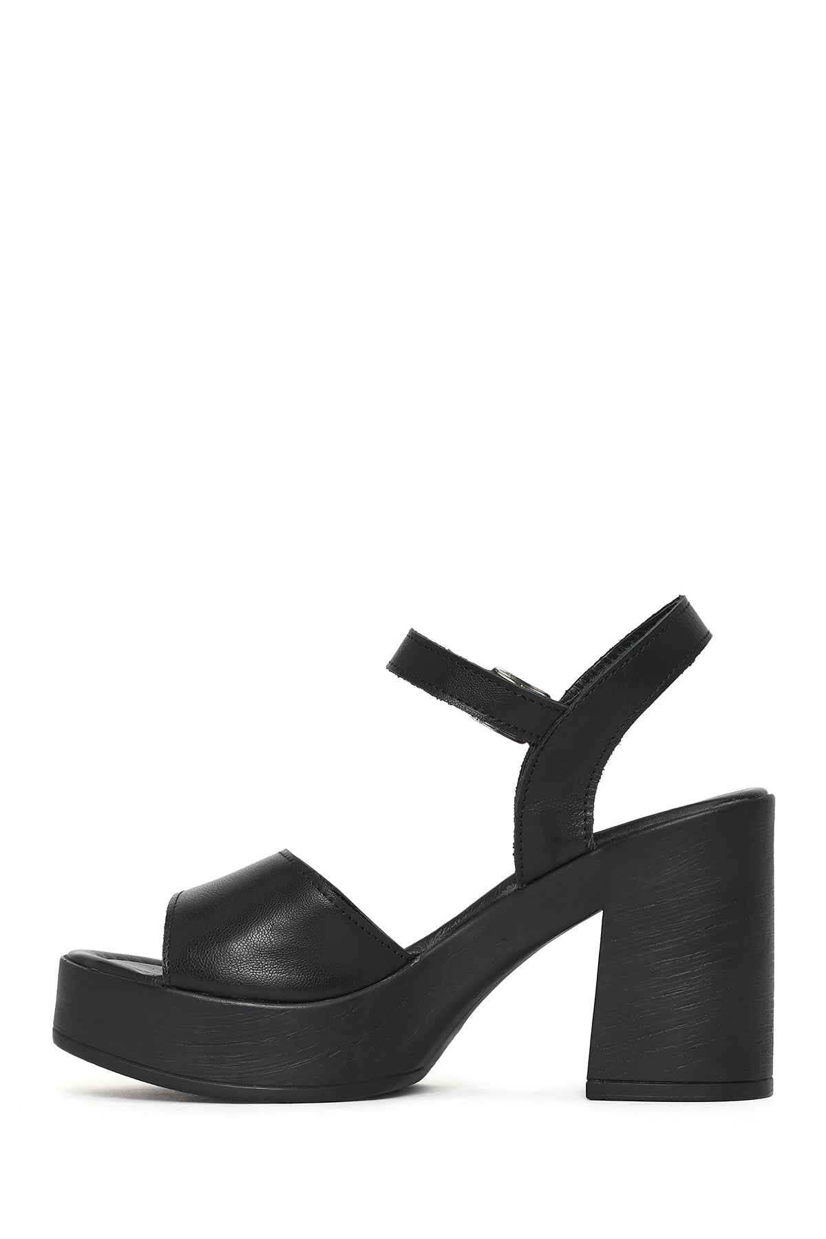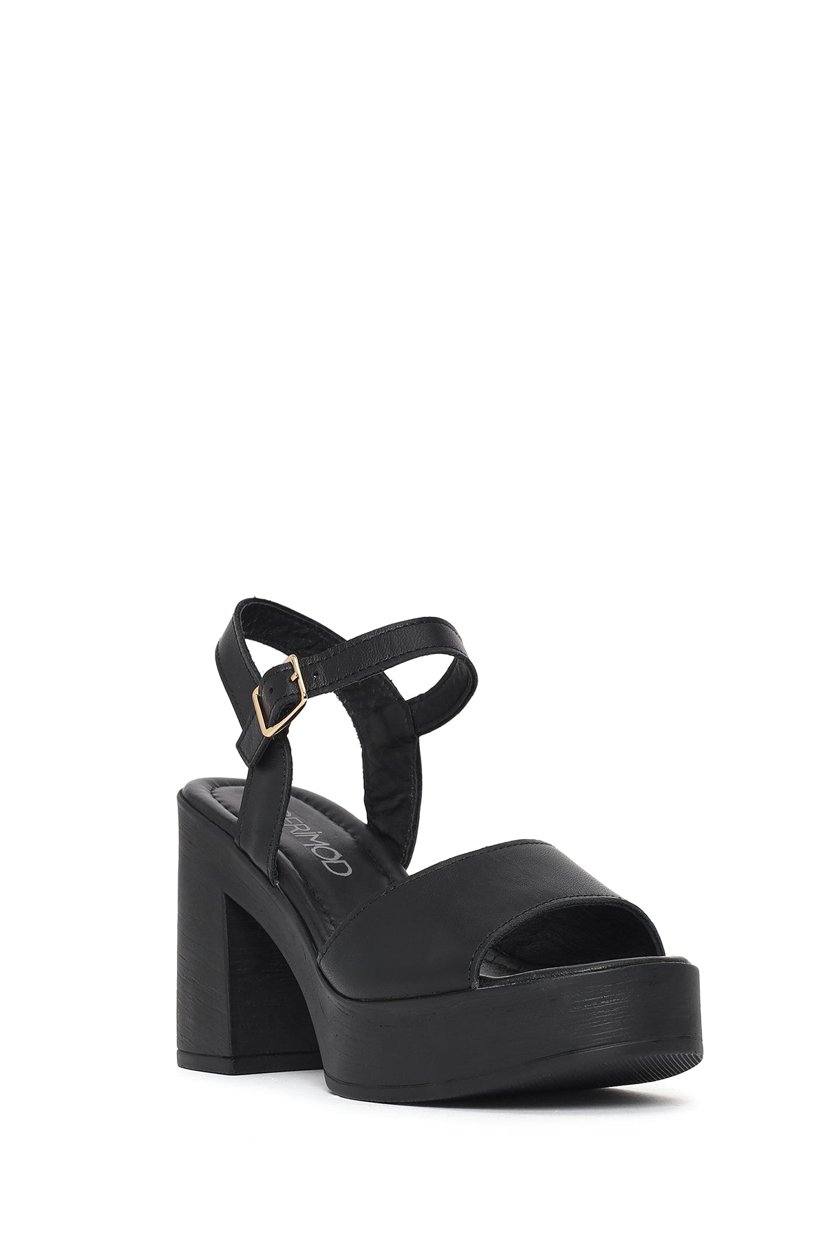 Woman Black Buckled Platform Block-Heel Leather Sandals