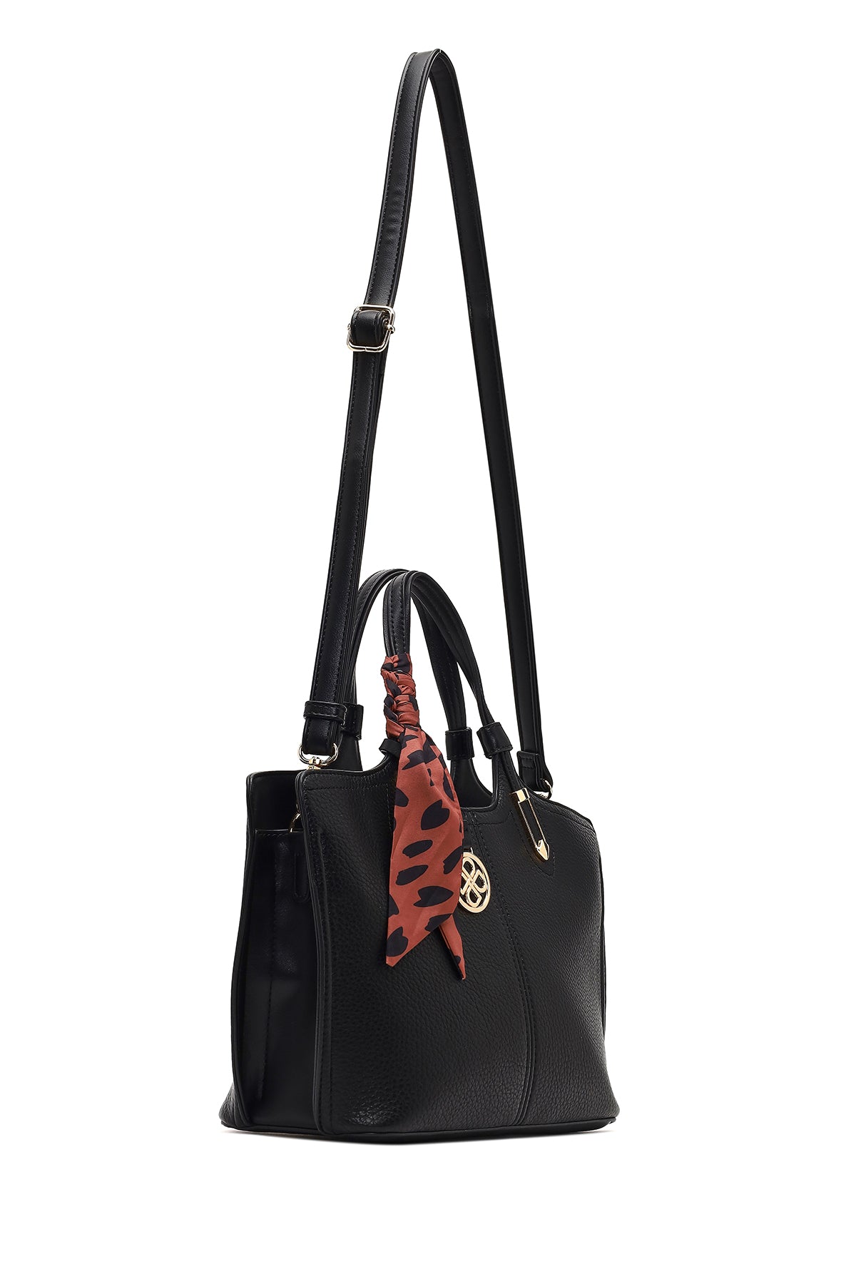 Women's Black Long Strapped Accessorized Shoulder Bag