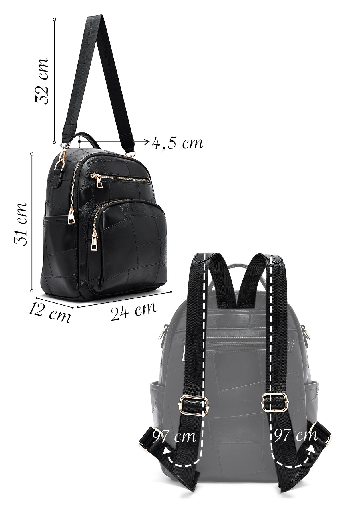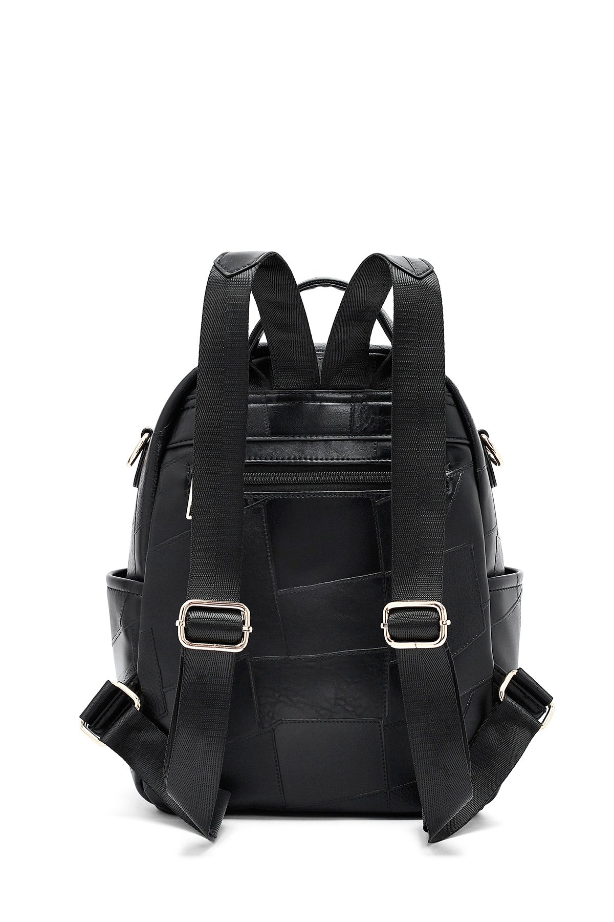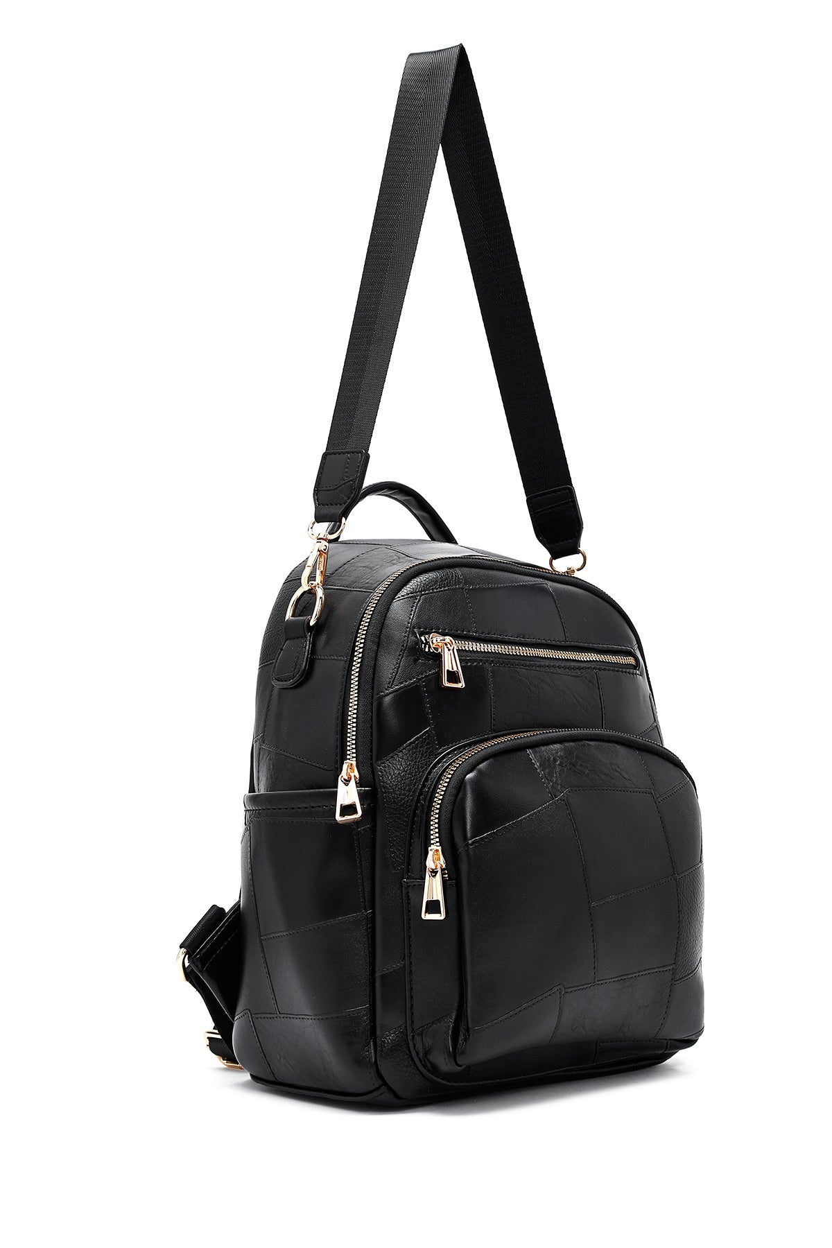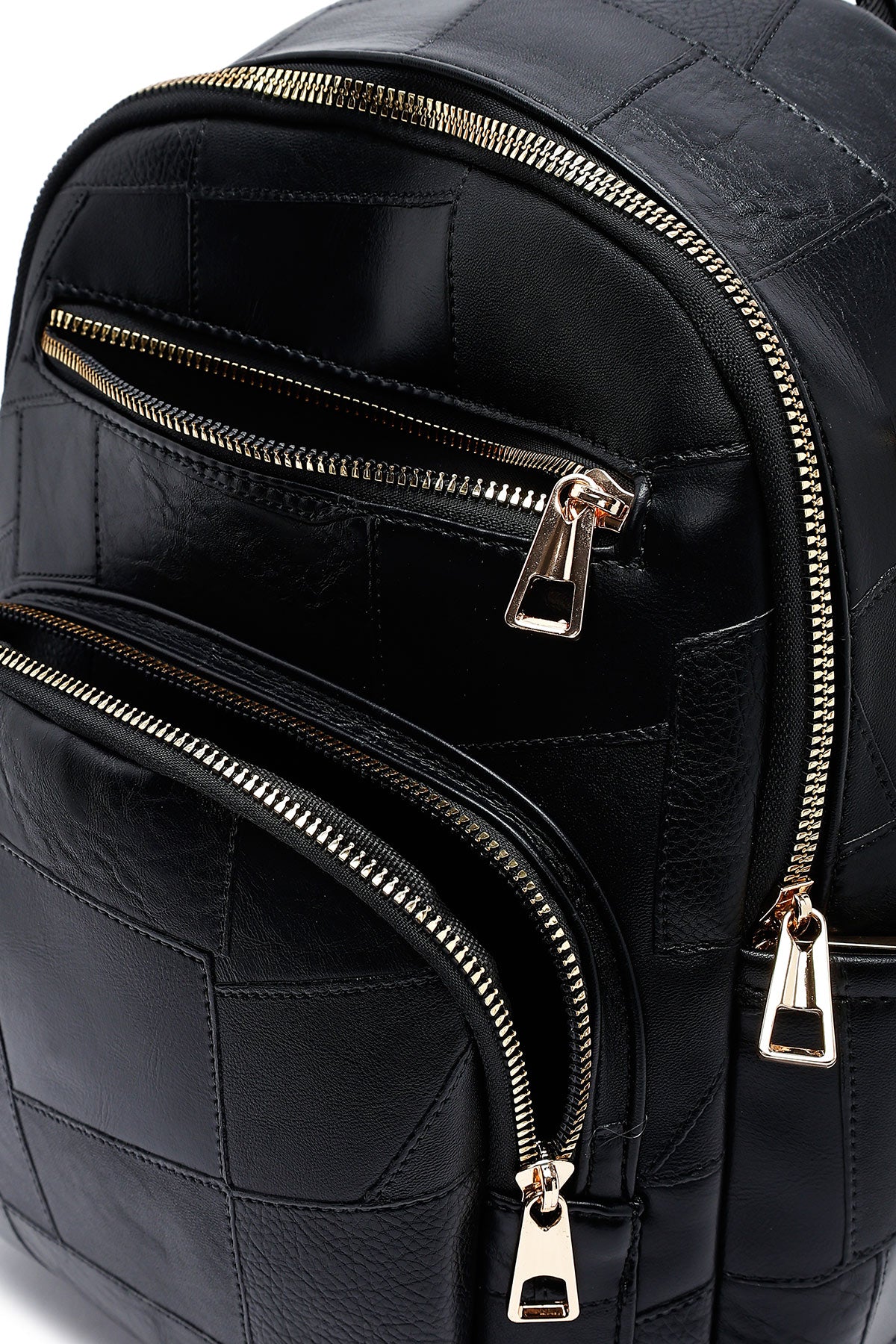 Woman Black Long Strap Printed Backpack