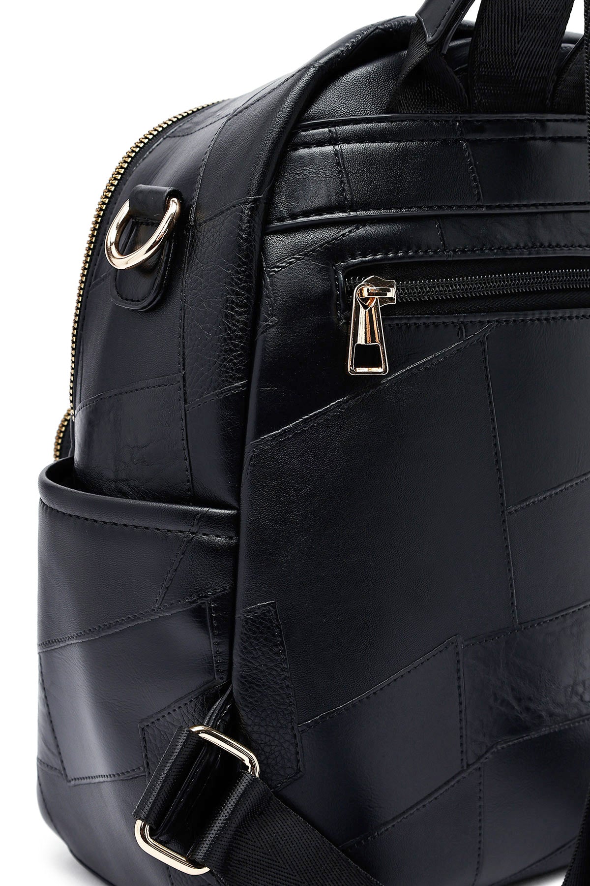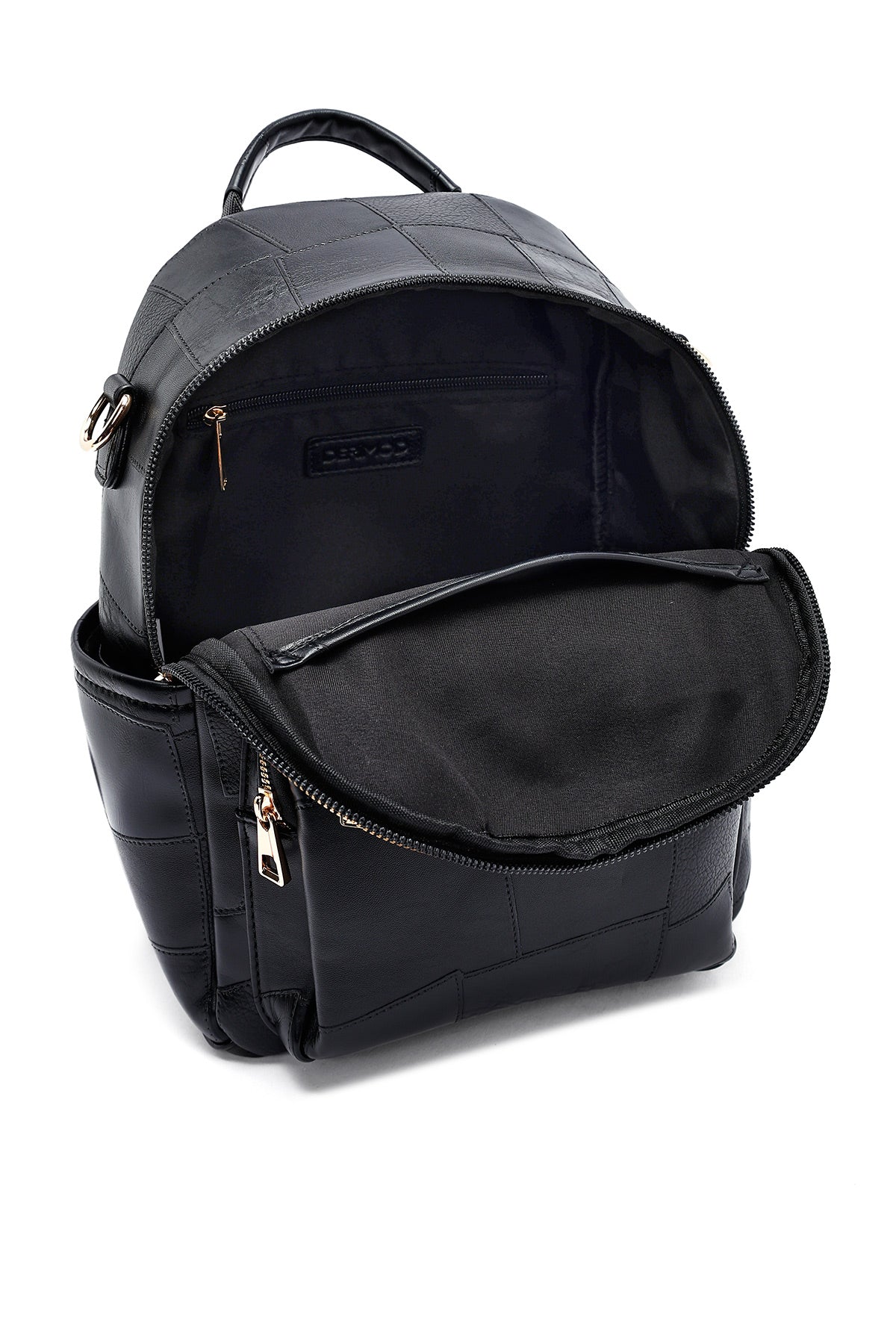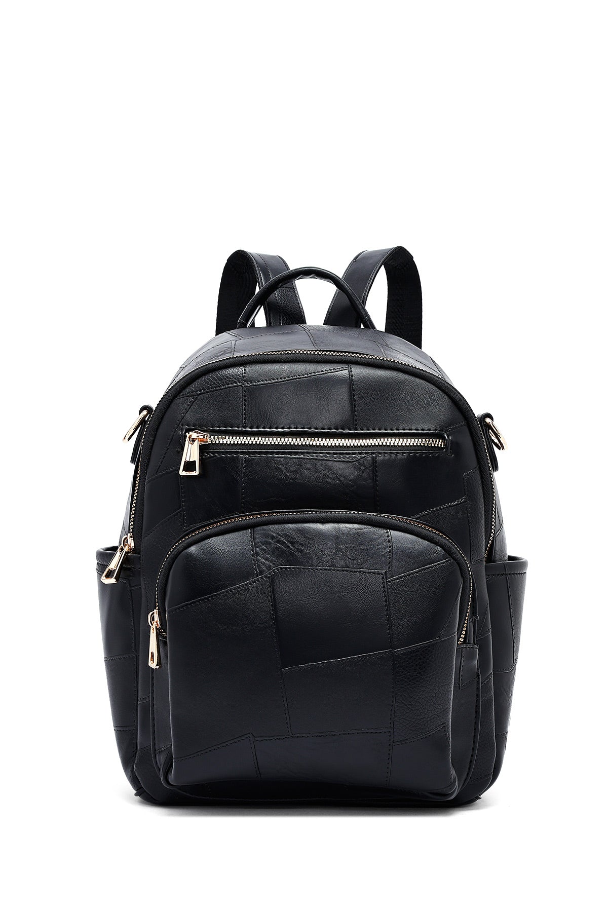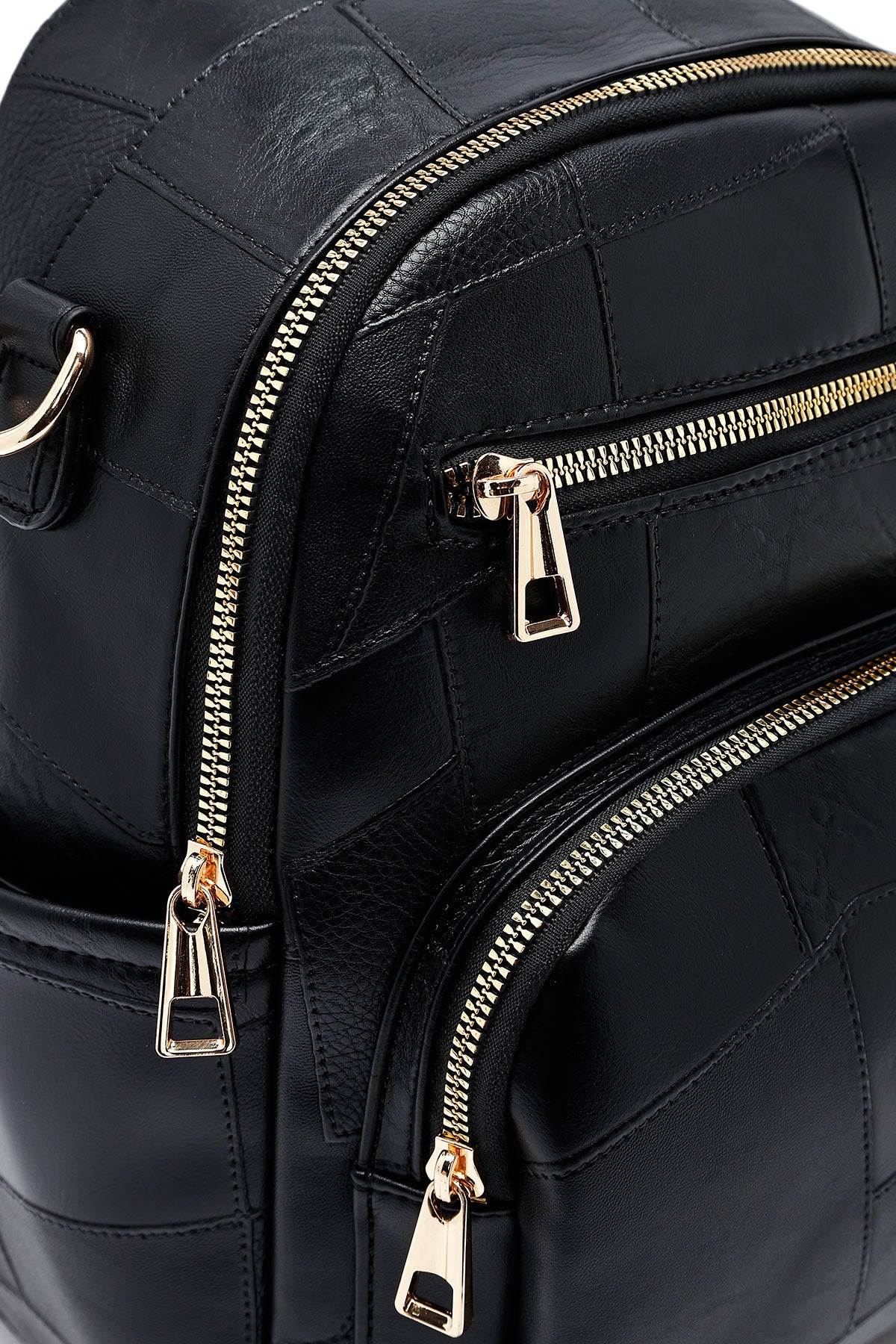 Woman Black Long Strap Printed Backpack