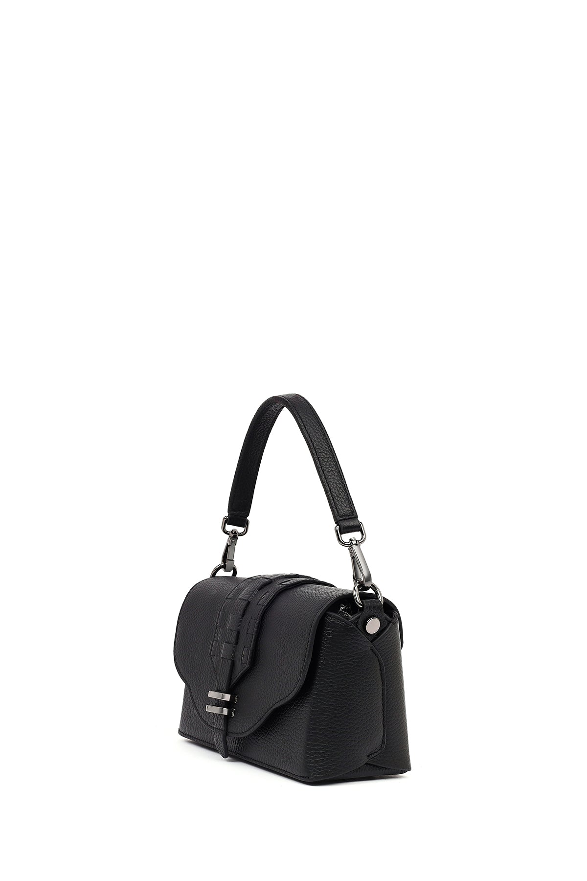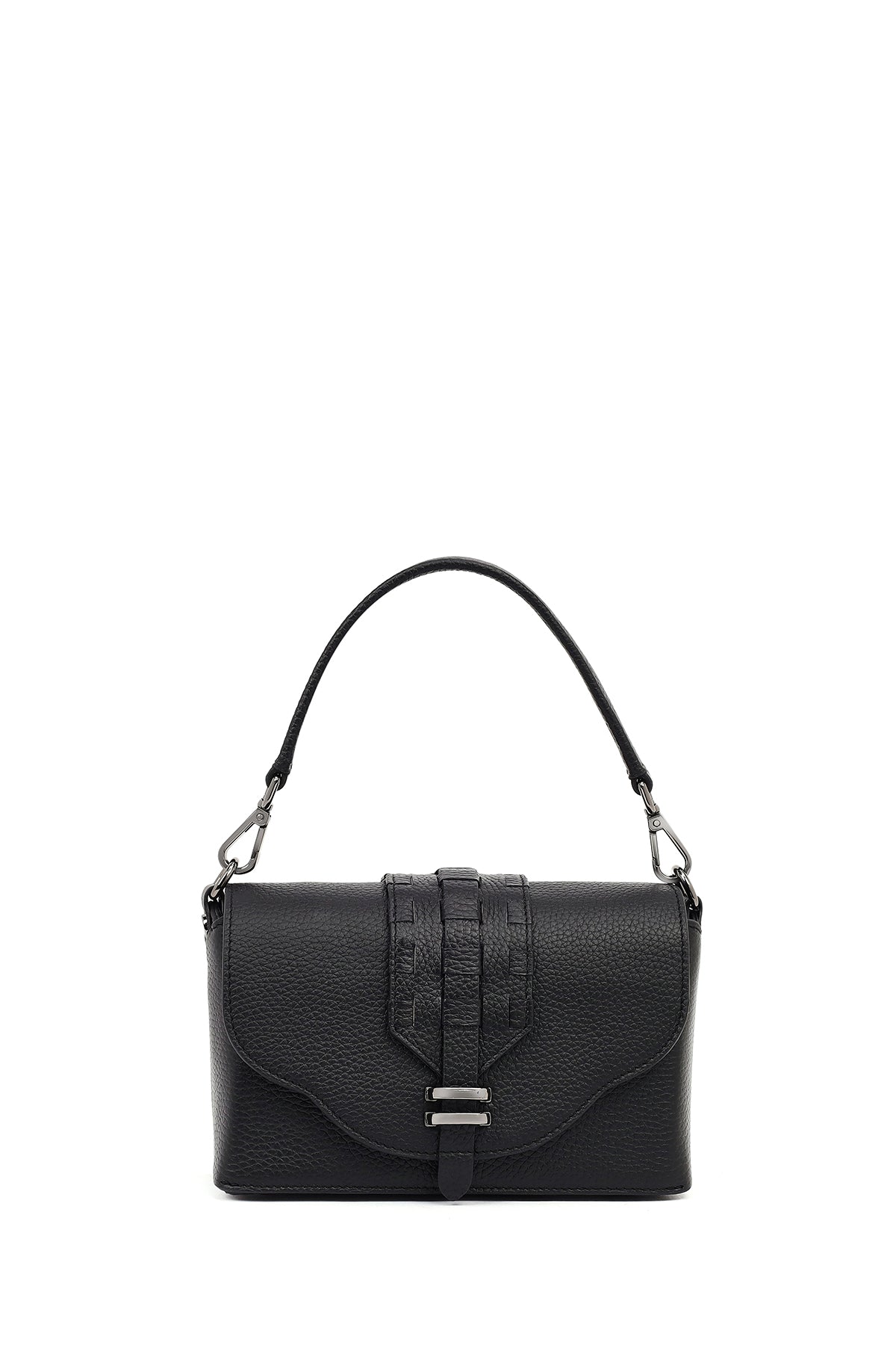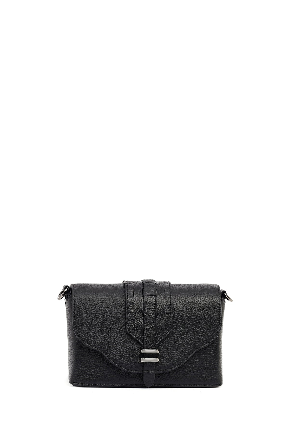 Kadın Siyah Uzun Askılı Deri Çapraz Çanta