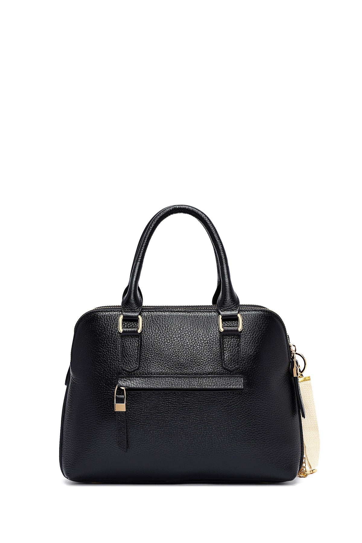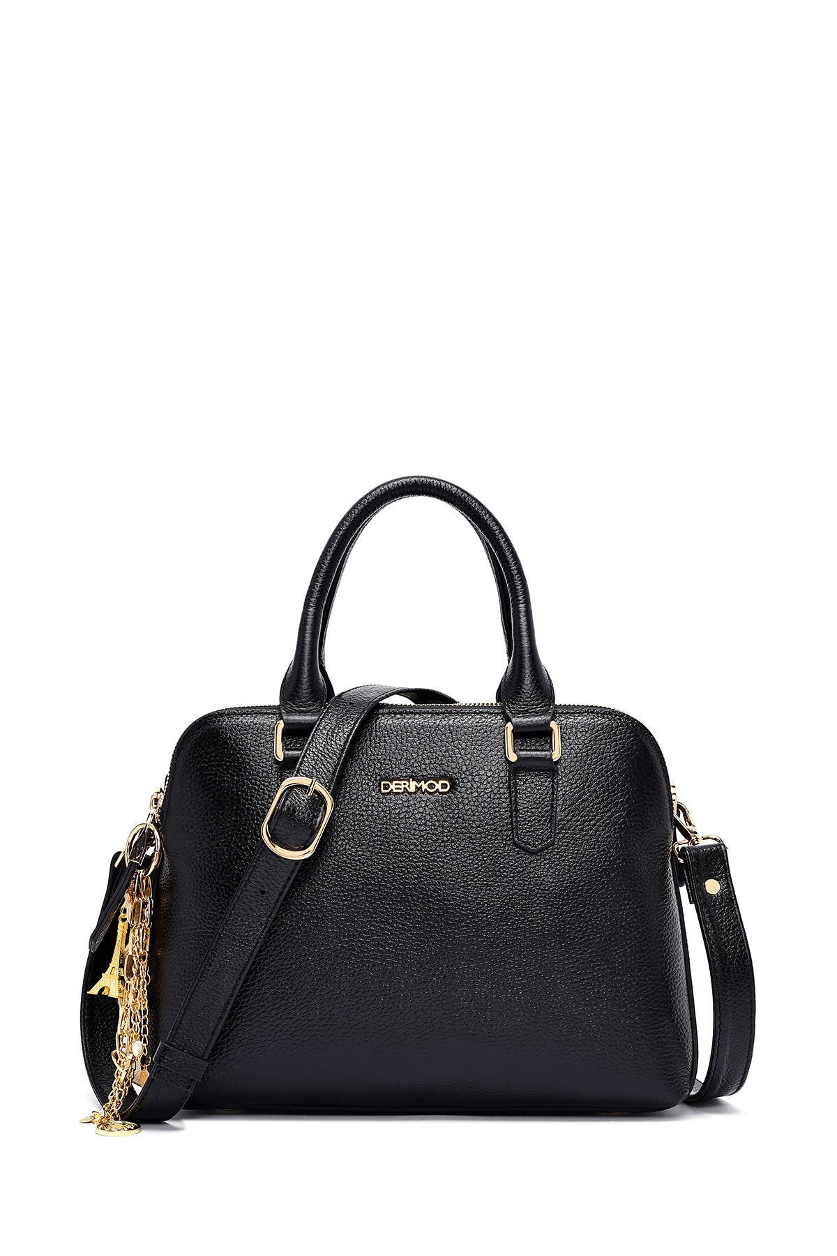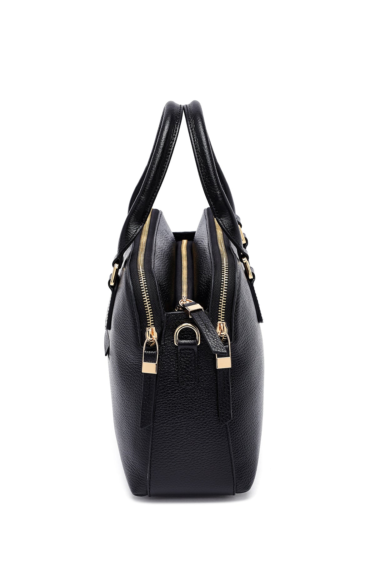 Woman Black Long Strap Leather Classic Handbag