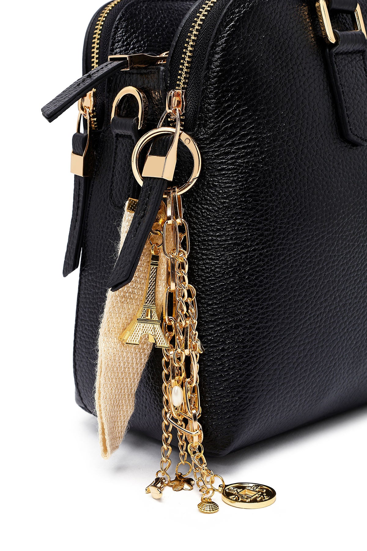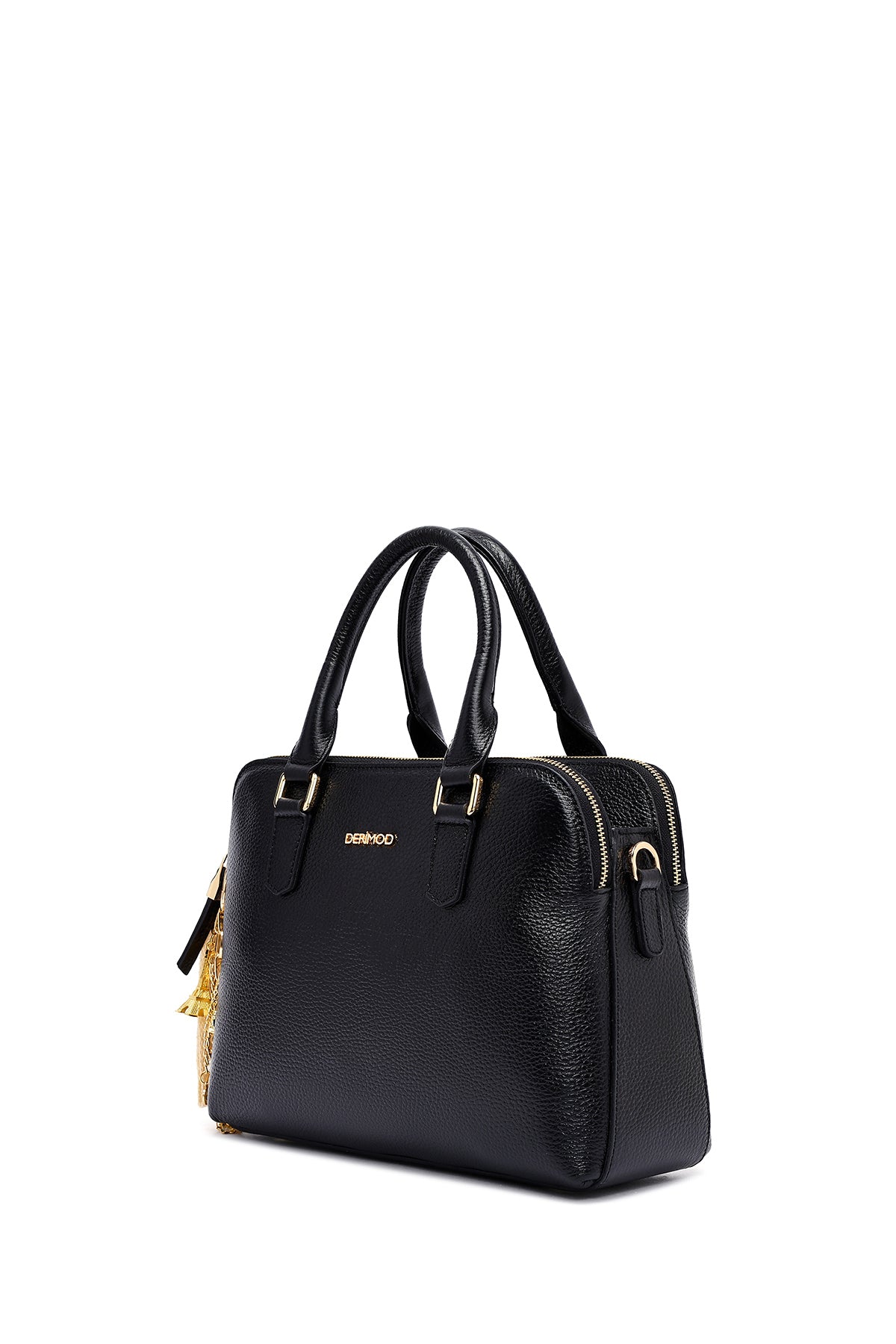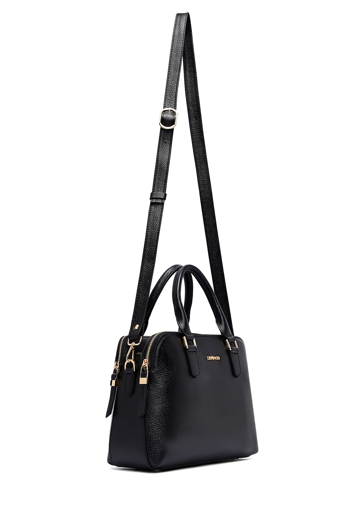 Woman Black Long Strap Leather Classic Handbag