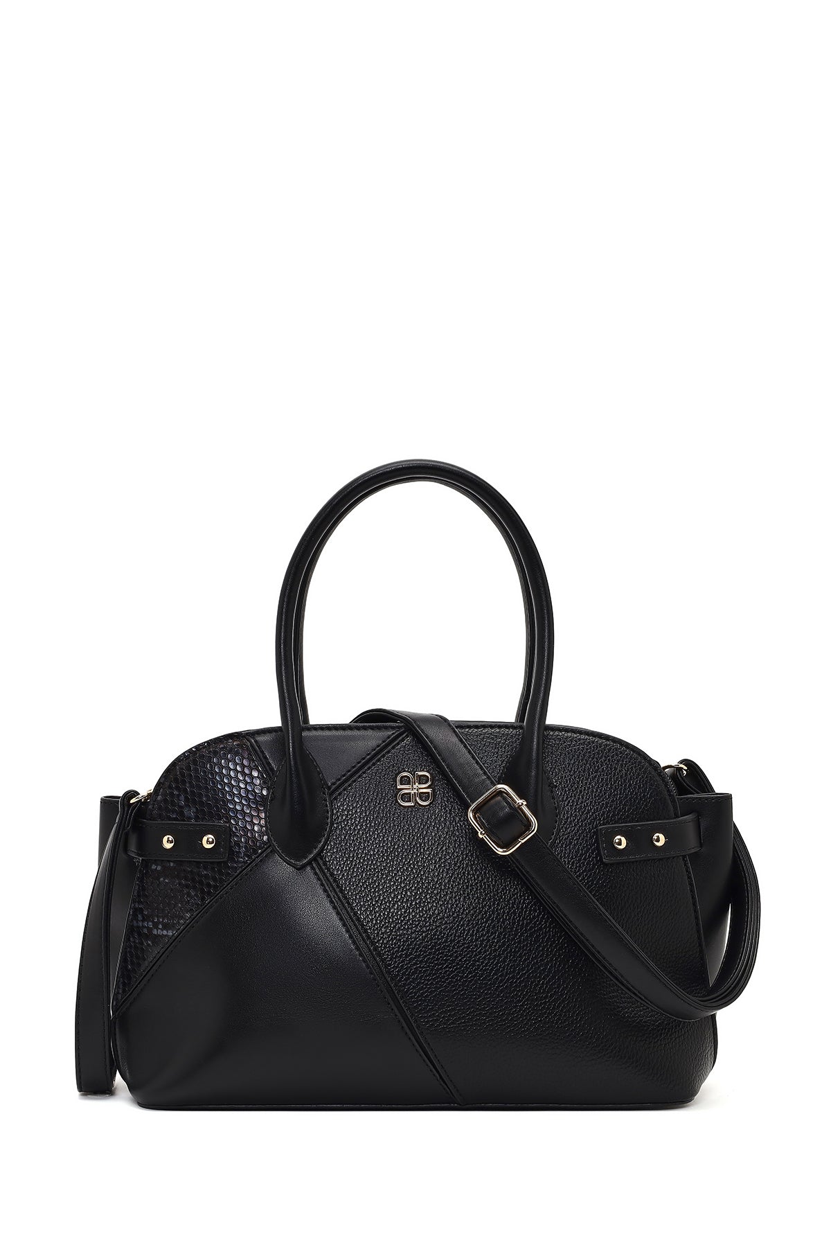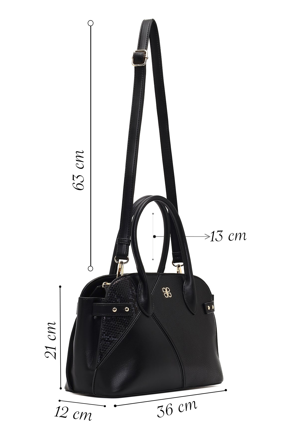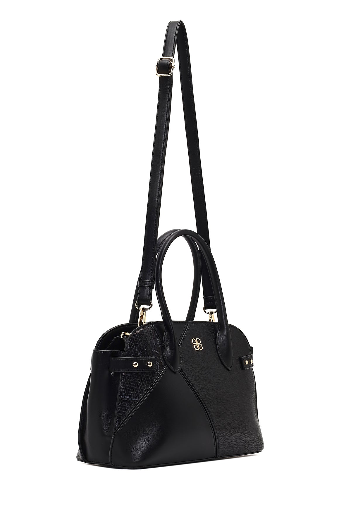 Women's Black Long Strapped Patterned Shoulder Bag