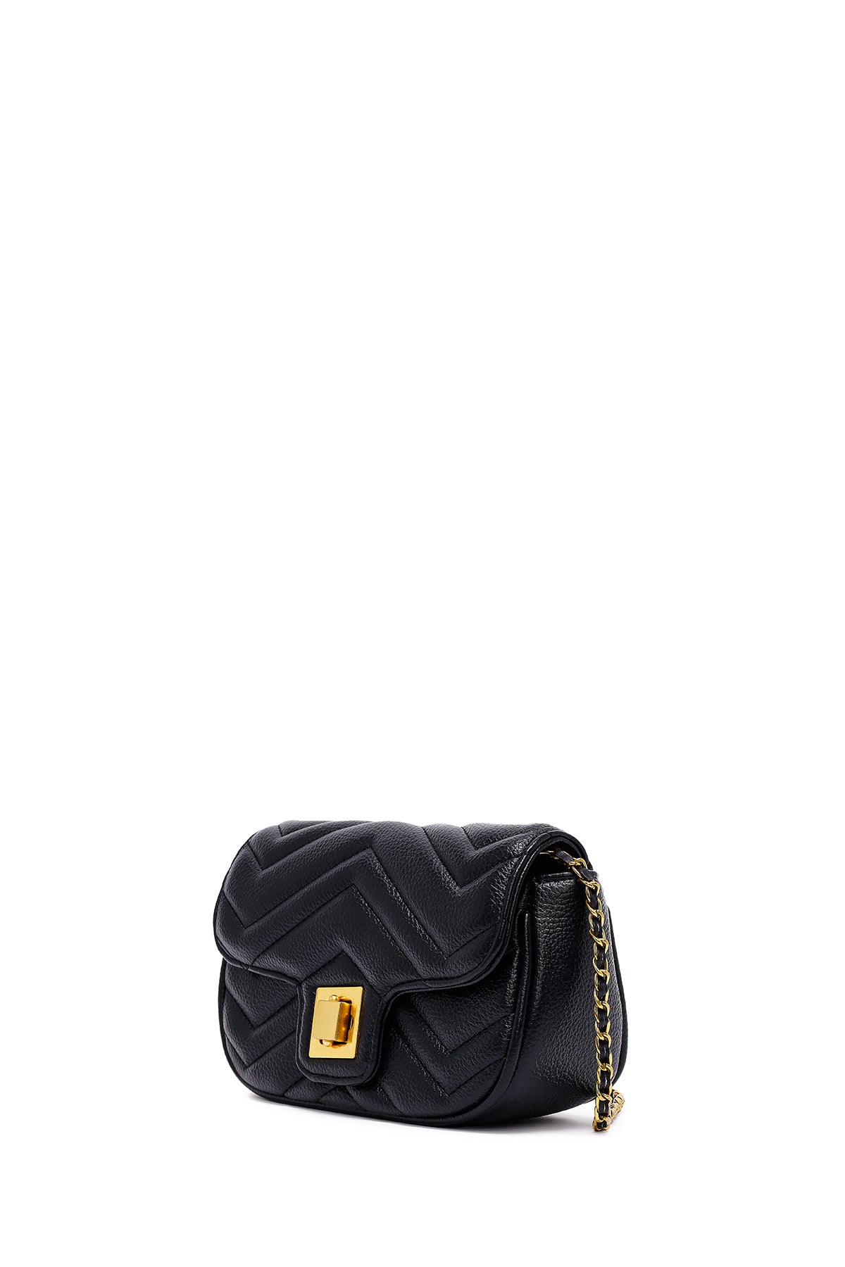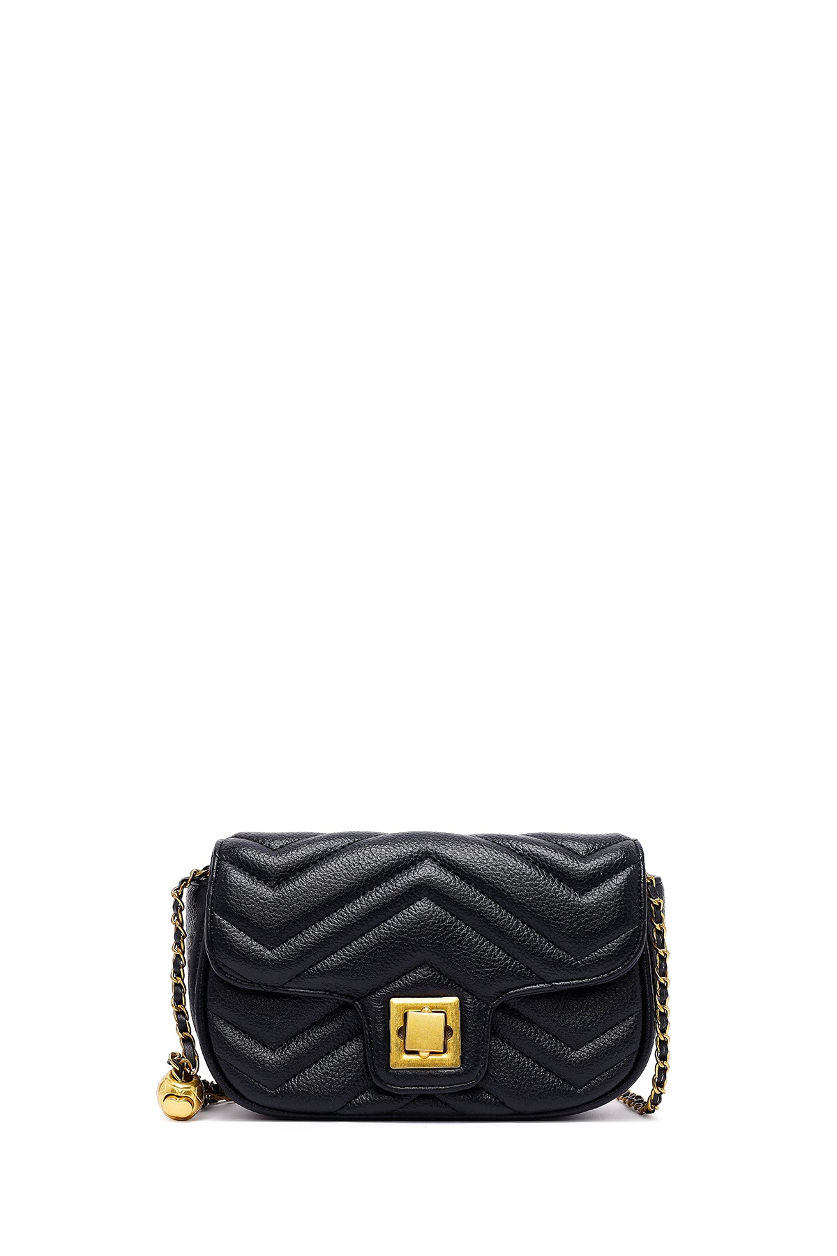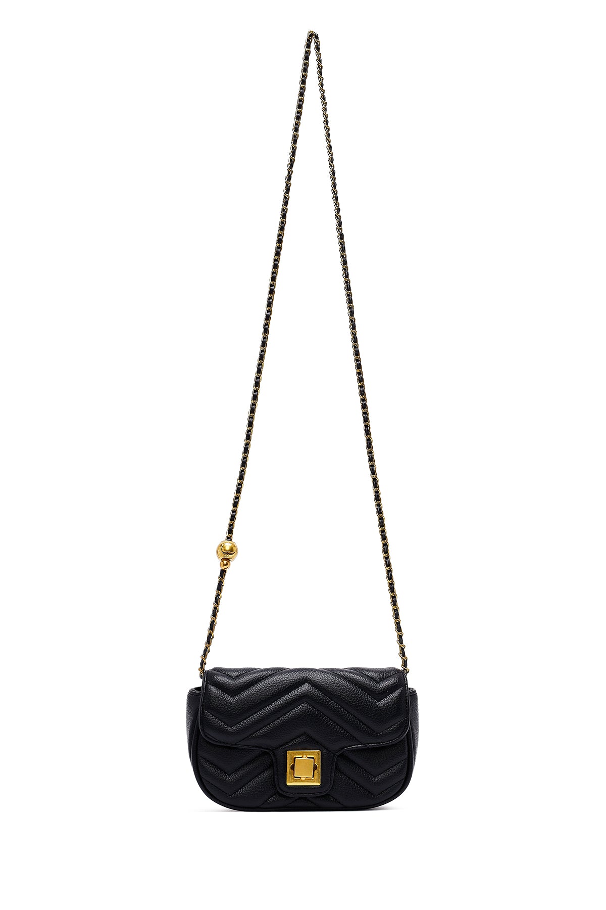 Woman Black Long Strap Quilted Mini Crossbody Bag