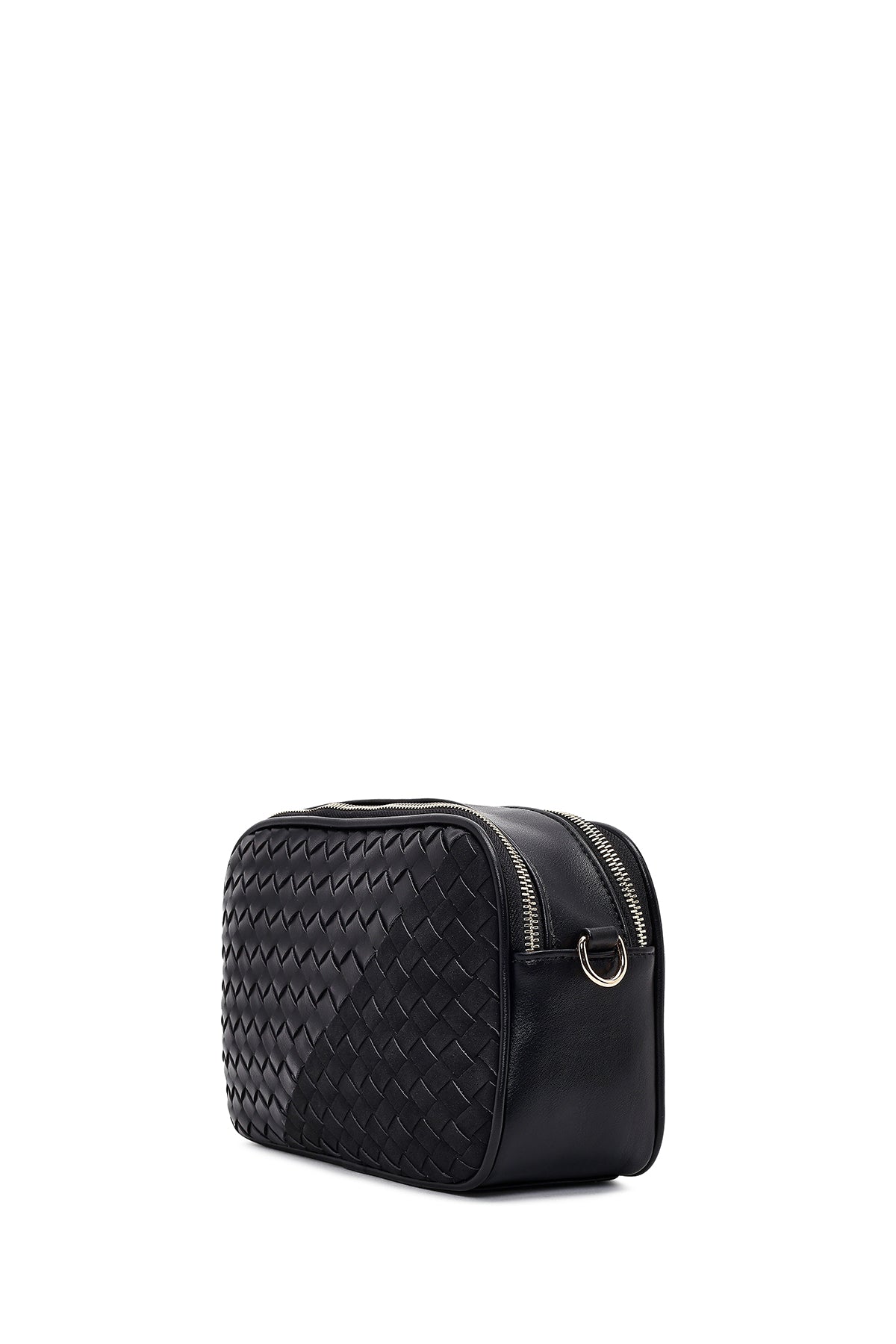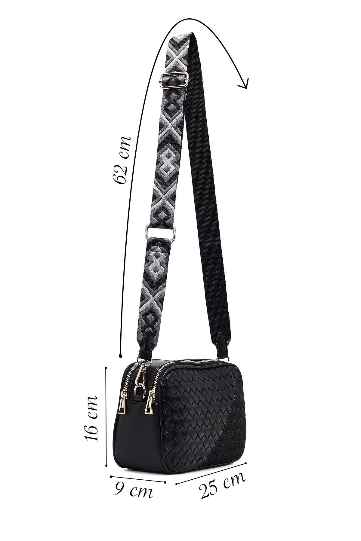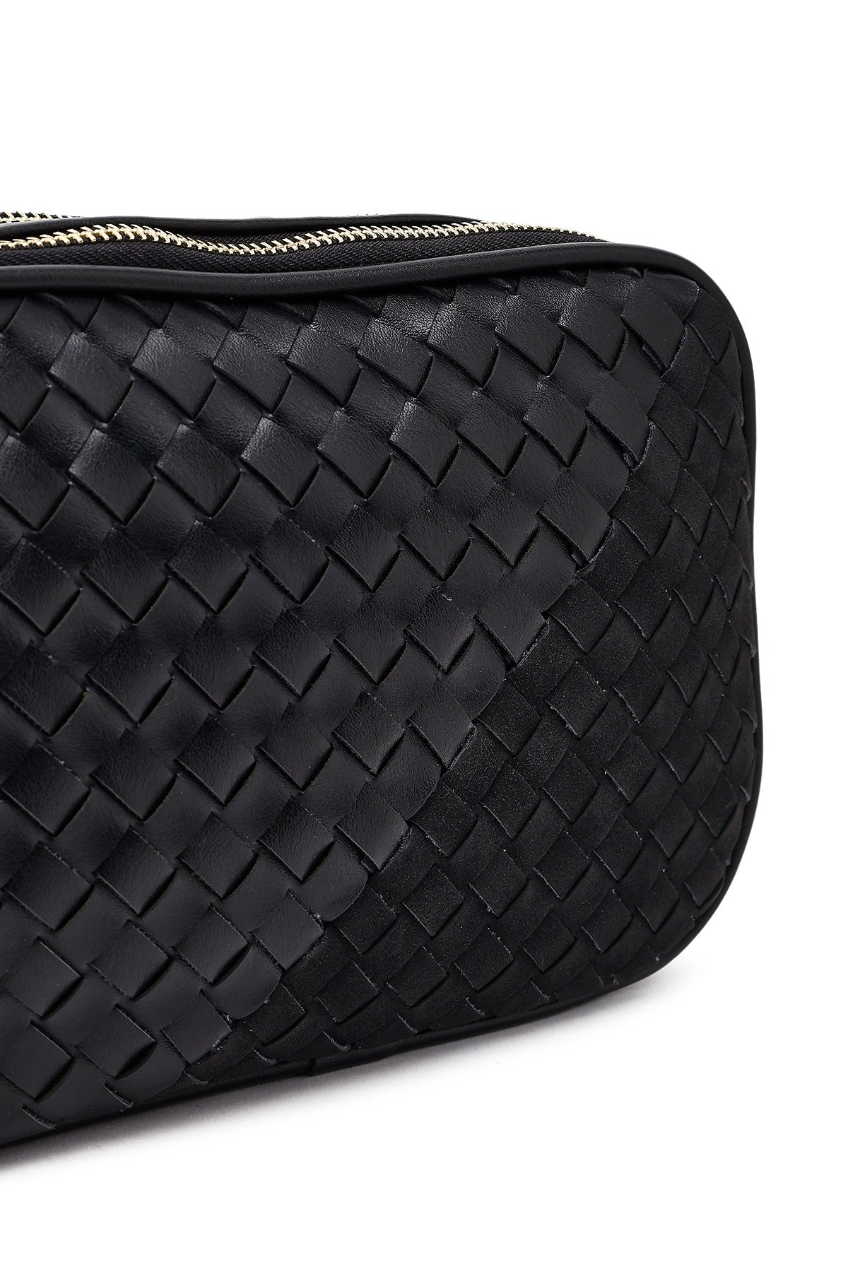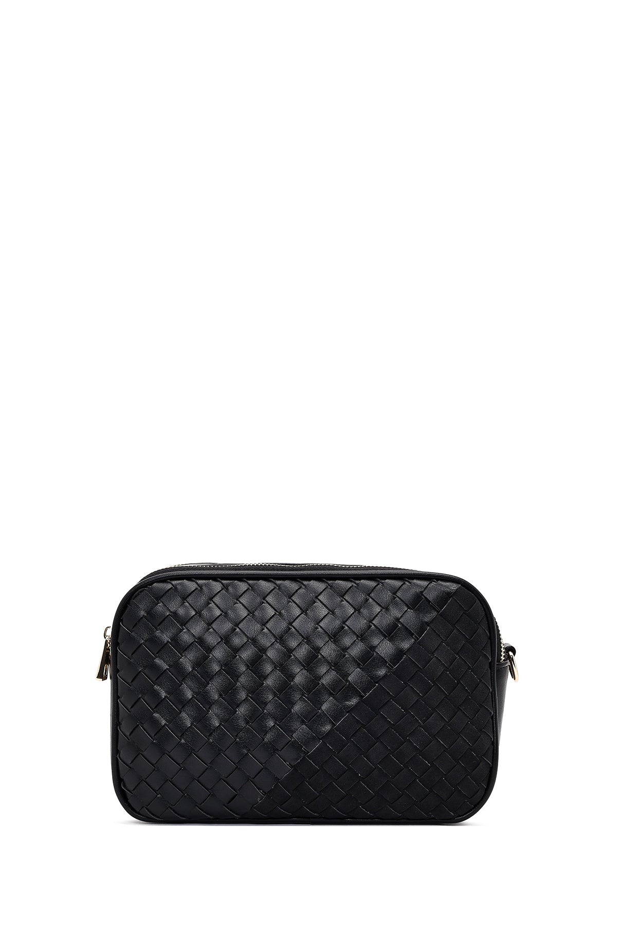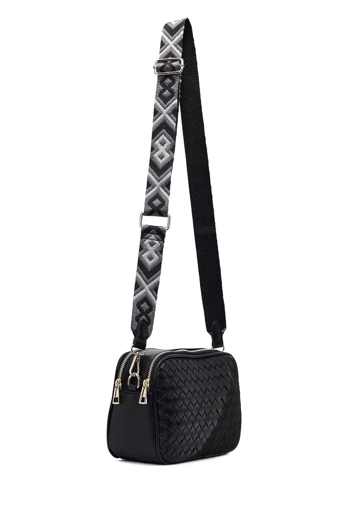 Women's Black Long Strapped Woven Crossbody Bag