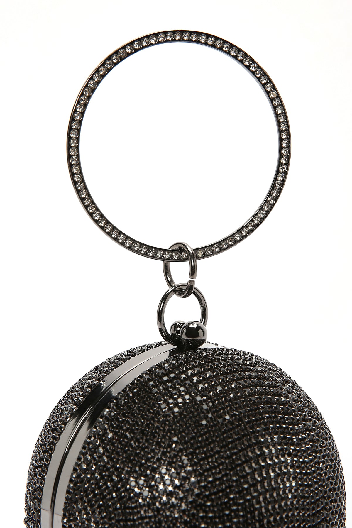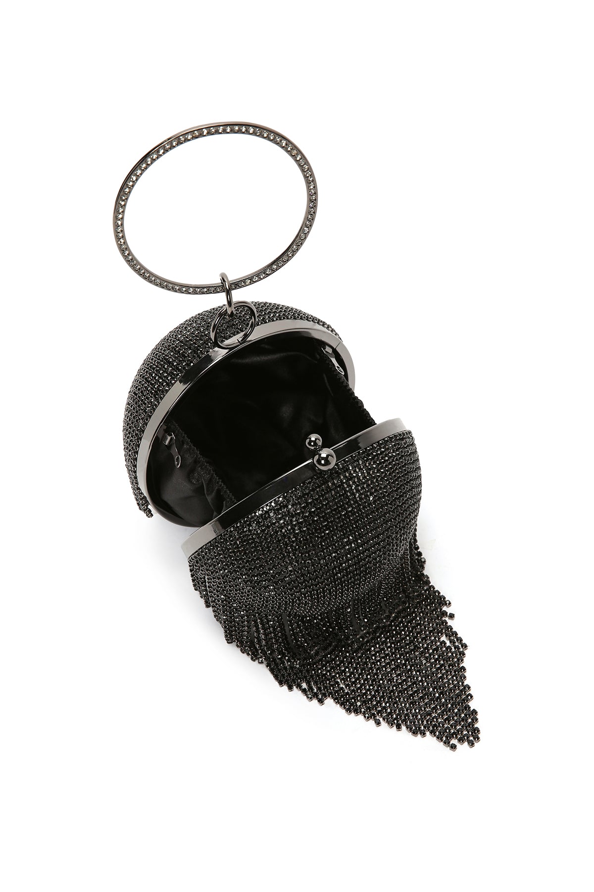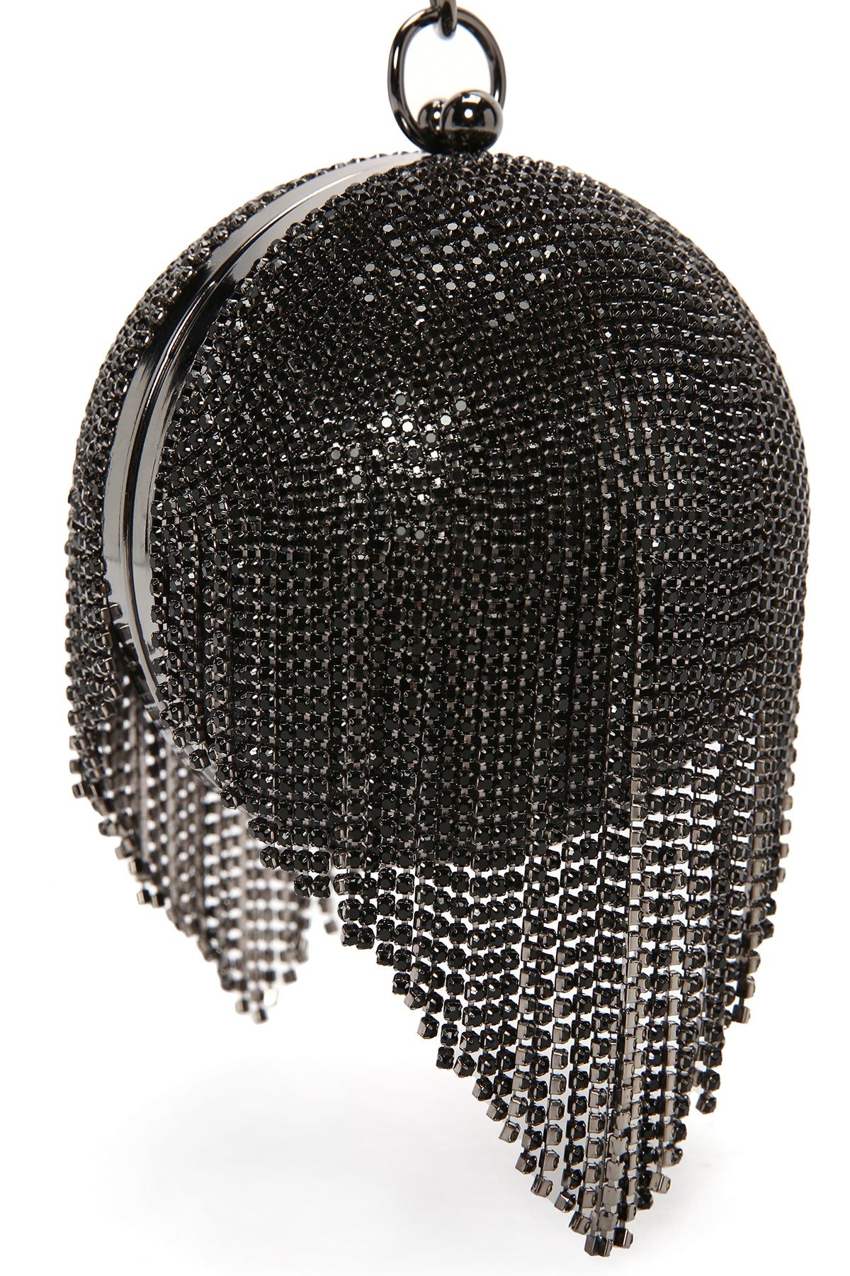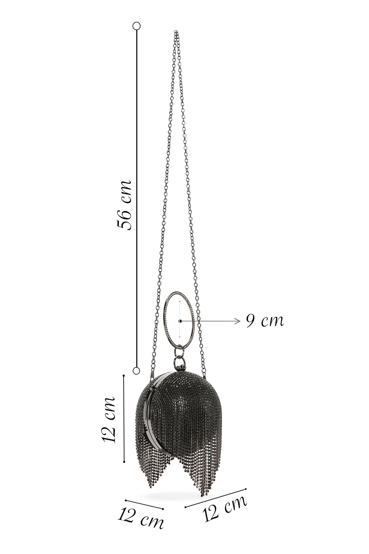 Women's Black Long Strap Chain Detailed Stone Handbag