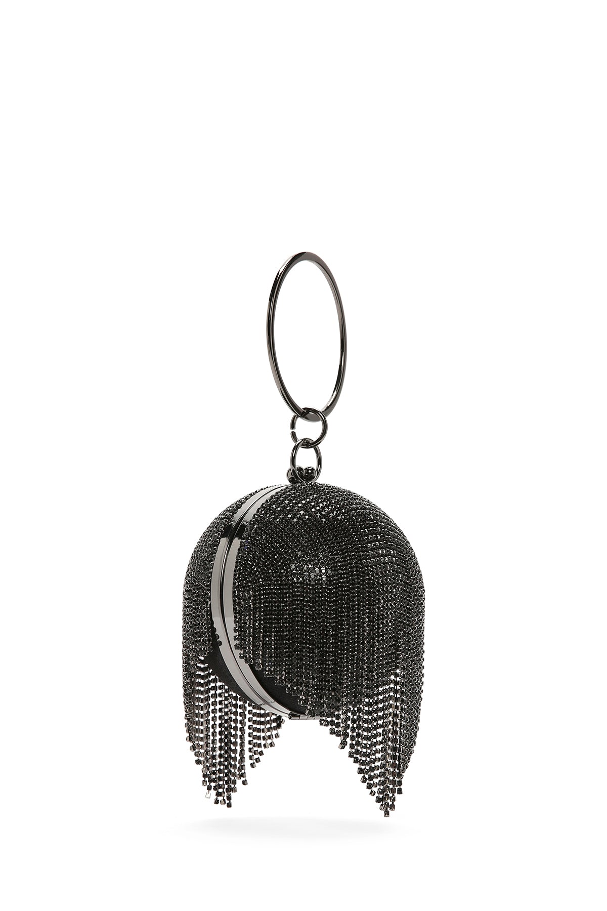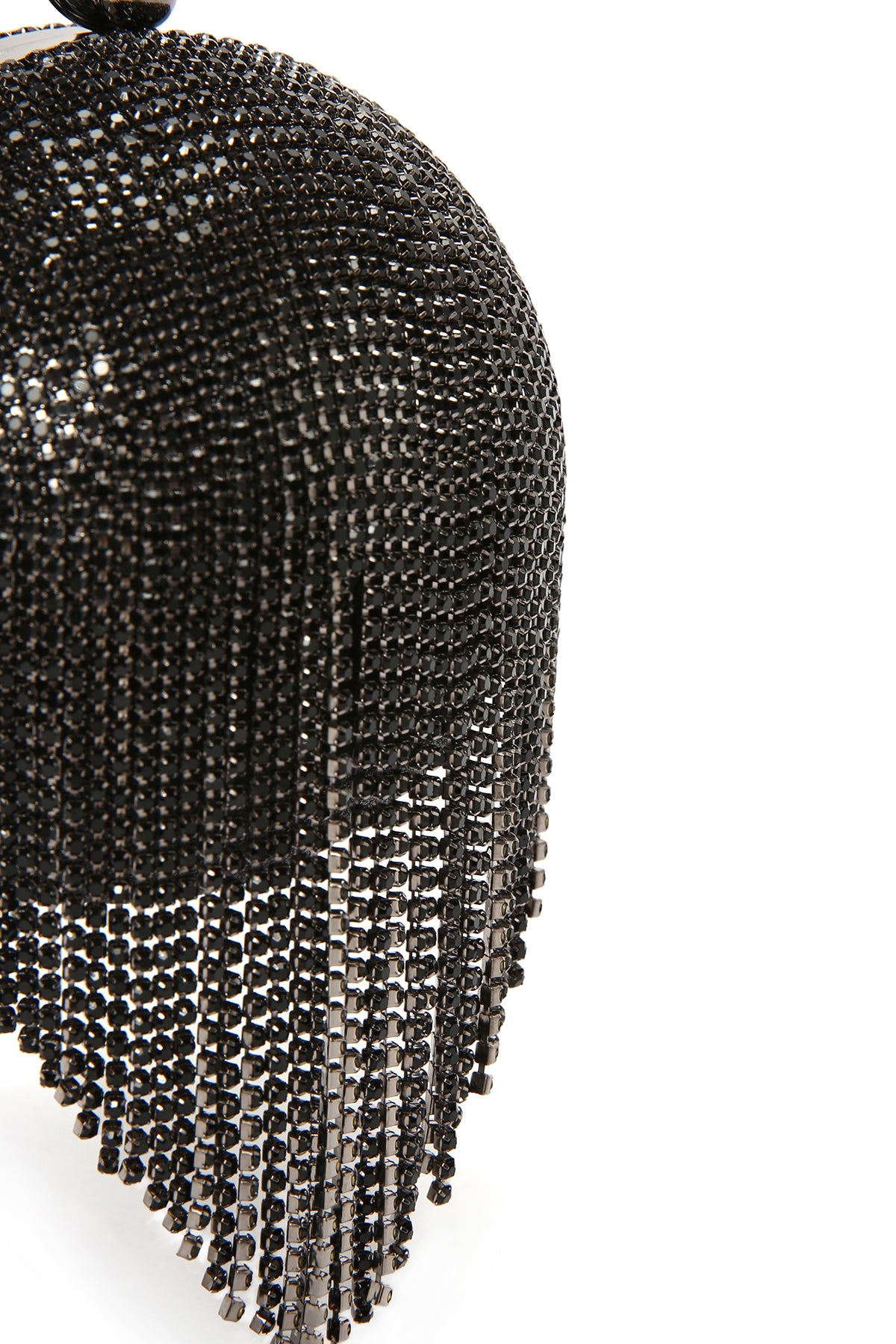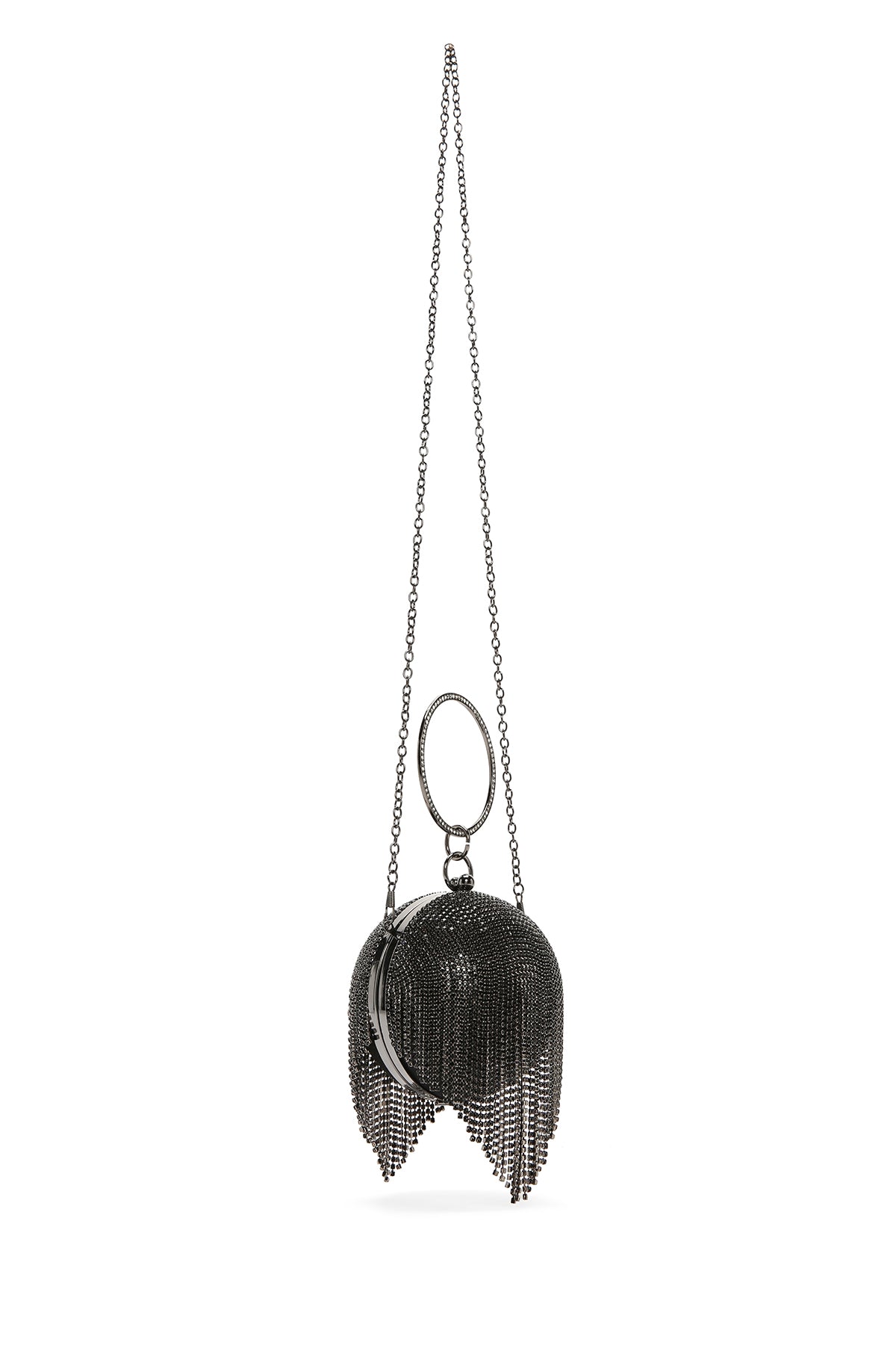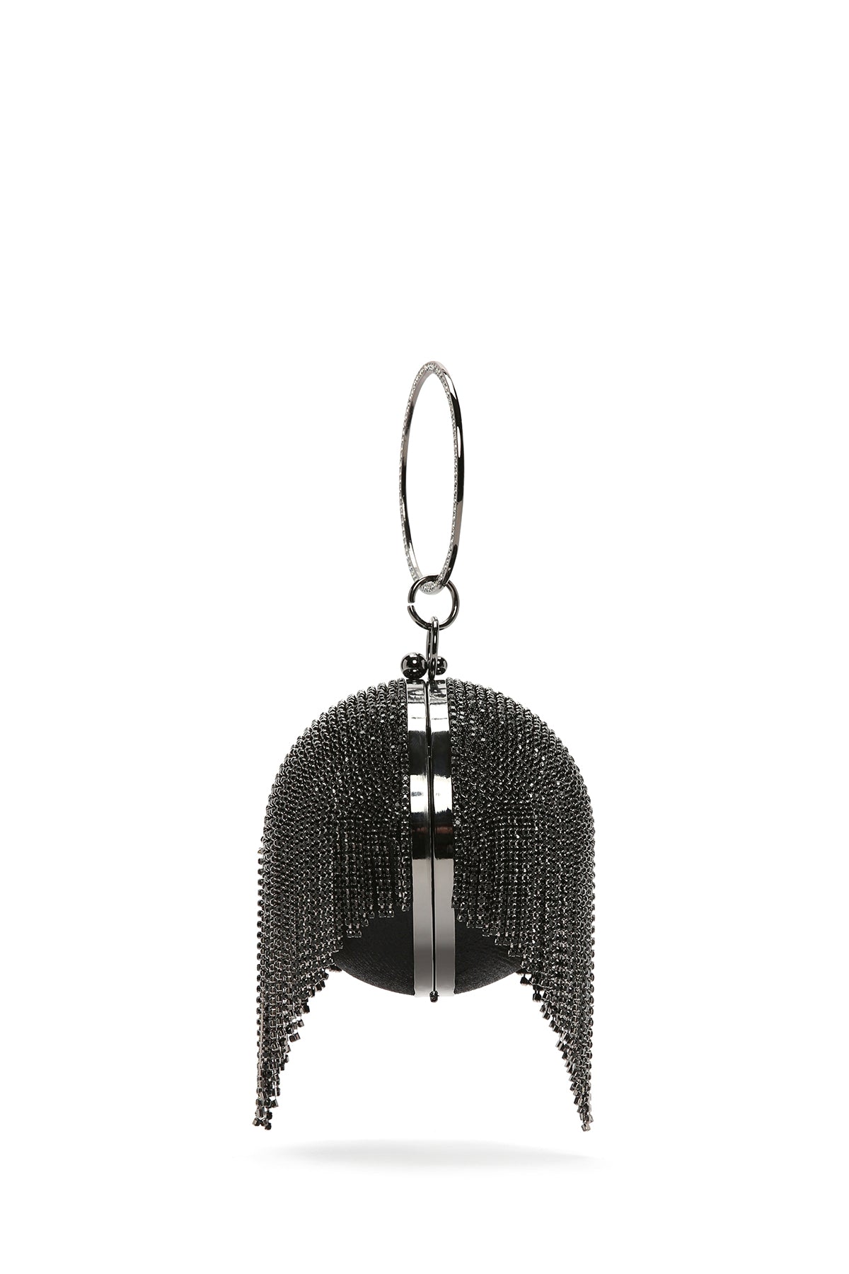 Women's Black Long Strap Chain Detailed Stone Handbag